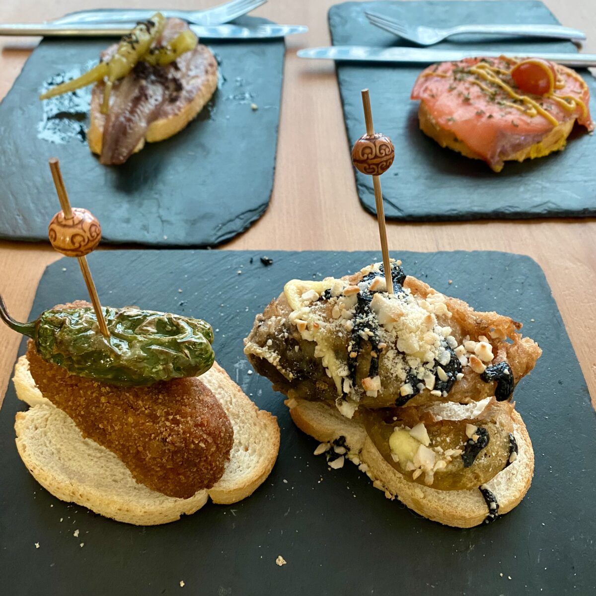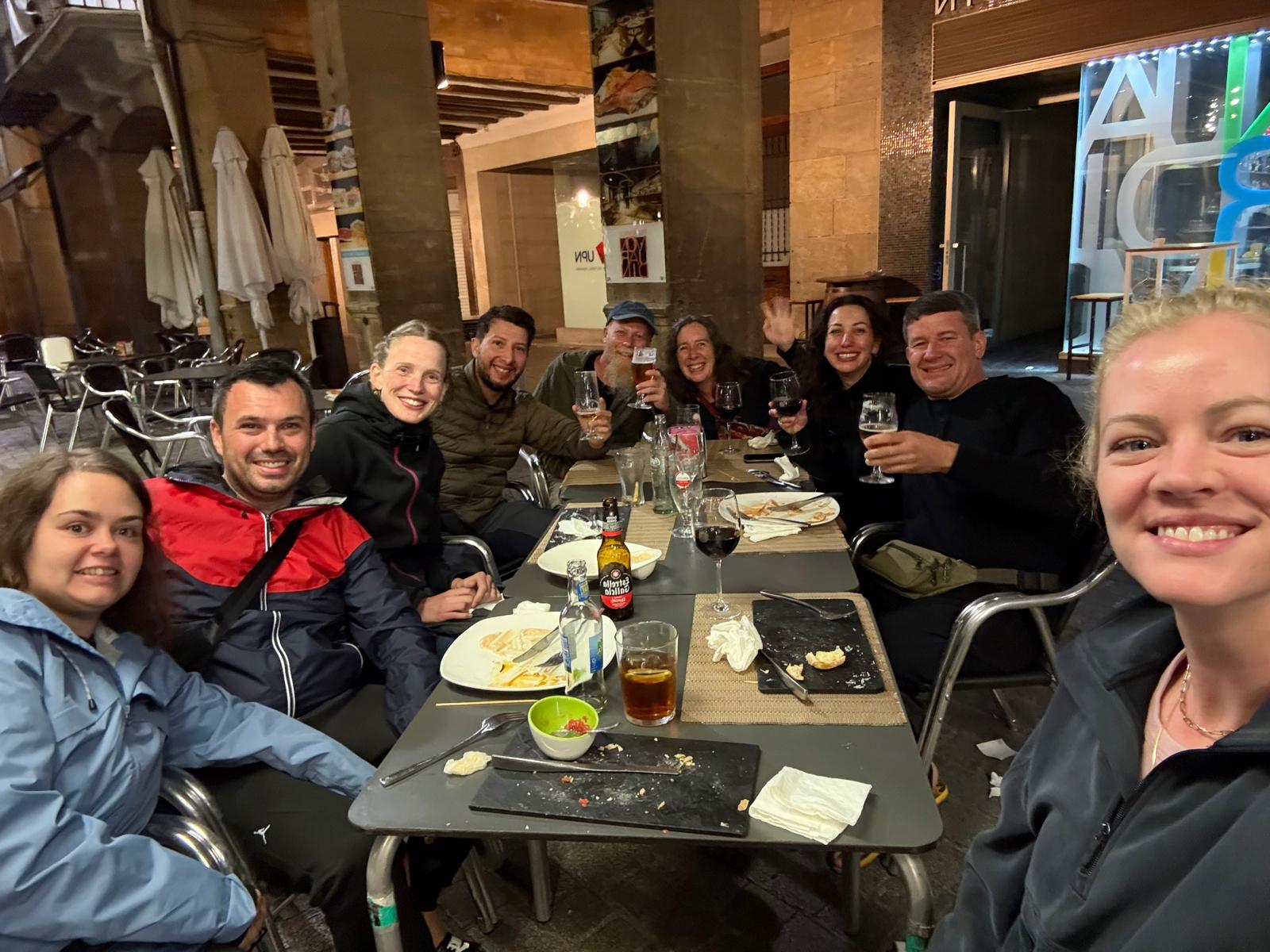 I can feel us getting stronger. Hills don’t feel as daunting anymore. But my shoulders ache, I feel pain in my right hip, and Aron feels it in his heel. Not debilitating but we thought a rest day could be useful, so tomorrow we are spending an extra day in Logroño, which is also known for wine! It will be nice to sleep in a little, do the laundry, and have a reset for the next stage, which is supposed to be a long one. Still, it feels strange to think we won’t be walking tomorrow, which has become habit. Plus, some of our new friends will be moving on ahead of us. It was inevitable, but hopefully when we reach Santiago it will be with at least a few familiar faces.