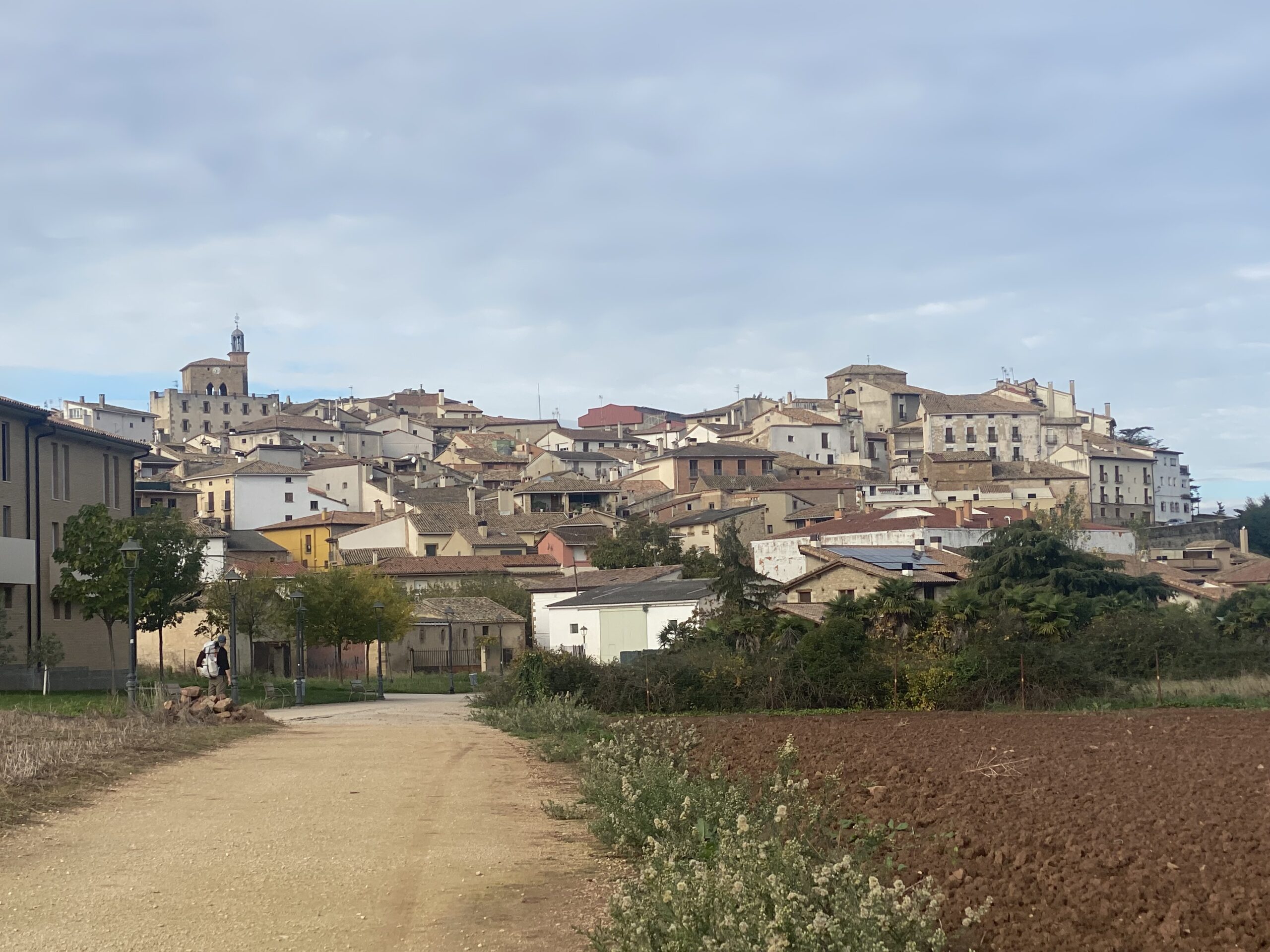 The first section was forest with all kinds of mushrooms. Aron was ecstatic We eventually reached the village of Liquin, but now we were walking through treeless farmland. It was a bit monotonous and we could see for miles and miles in the distance. But eventually we reached Los Arcos where we reunited with several of our crew. After coffees and snacks, we started the final stretch to Sansol. Just 7 km away; we could see it perched on the hillside. But it never felt like it was getting any closer. We kept going and going and finally, at last, we were there…..