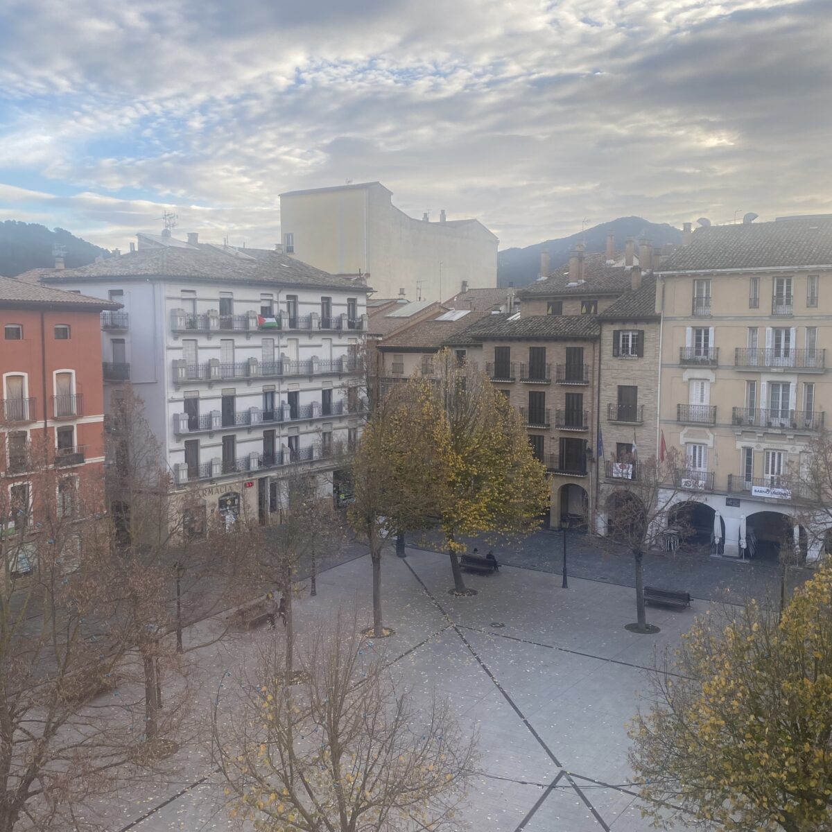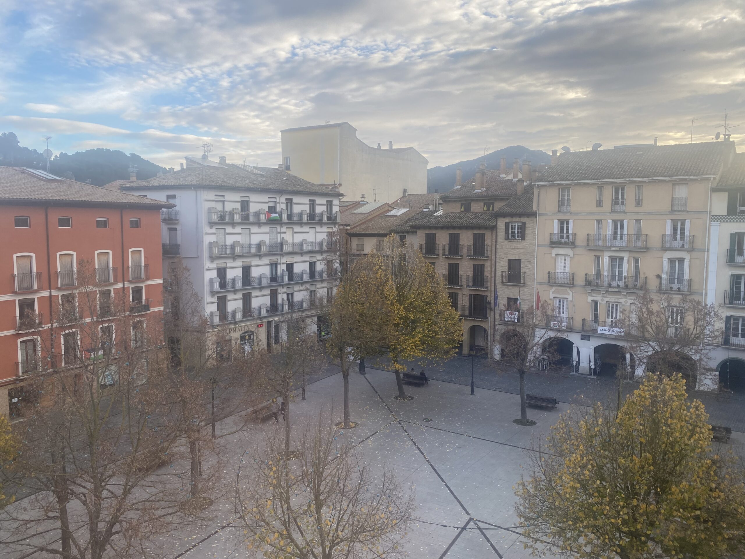 We ended up with a deluxe room with a discount and a refund (and a view overlooking the plaza). Later we had paella and met up with Camino friends. It was overall a good day.