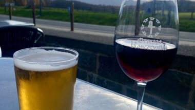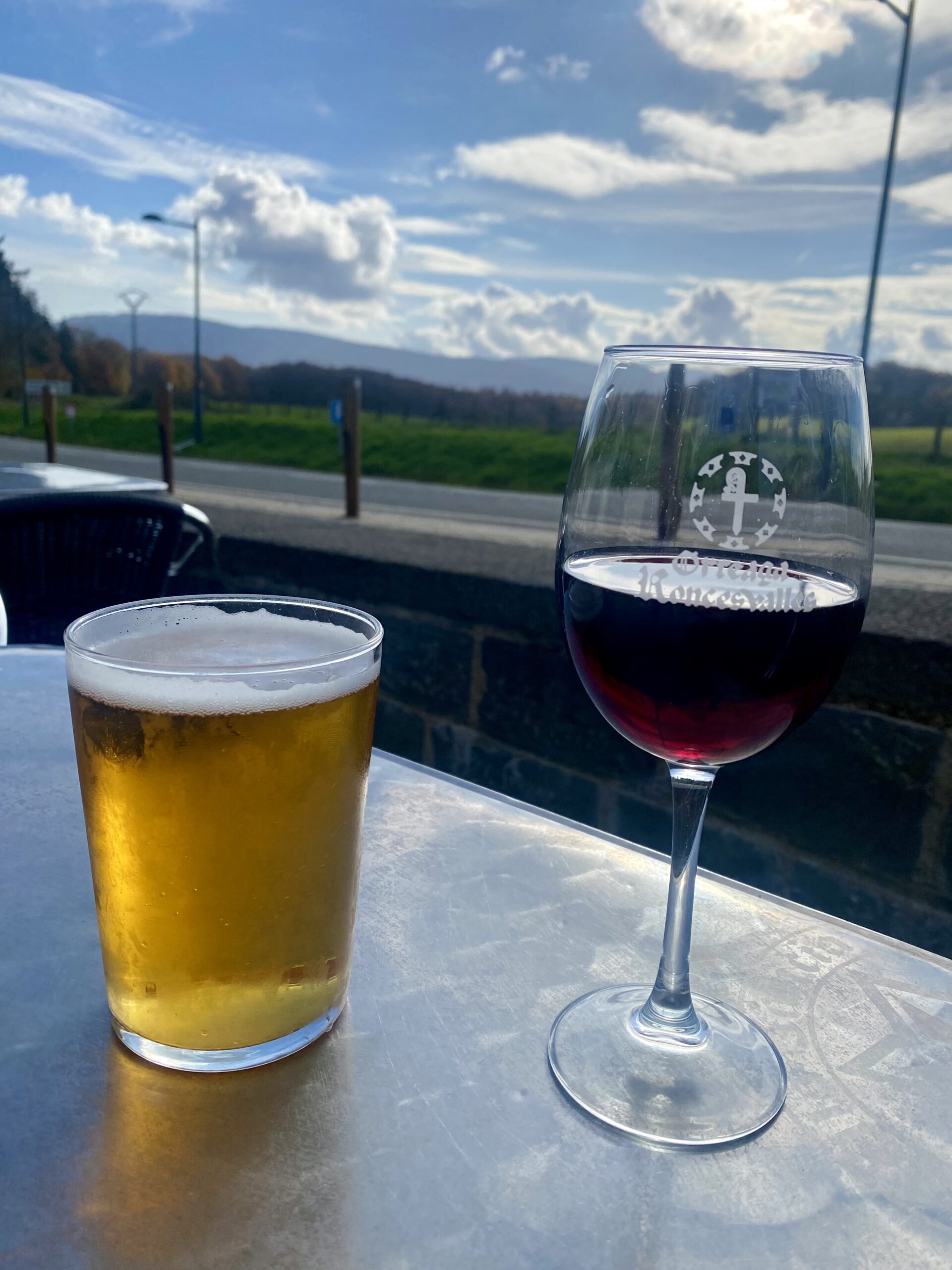 I sent off a couple of very panicky WhatsApp messages, because other than walking or hitchhiking there really wasn’t another way to get there. And we really wanted to start from SJPDP. Luckily, the taxi driver messaged and agreed to still pick us up. We had an hour to wait and the temperature was about 65°F, so we sat out in the sun and drank the inexpensive, local red wine. It was so relaxing.