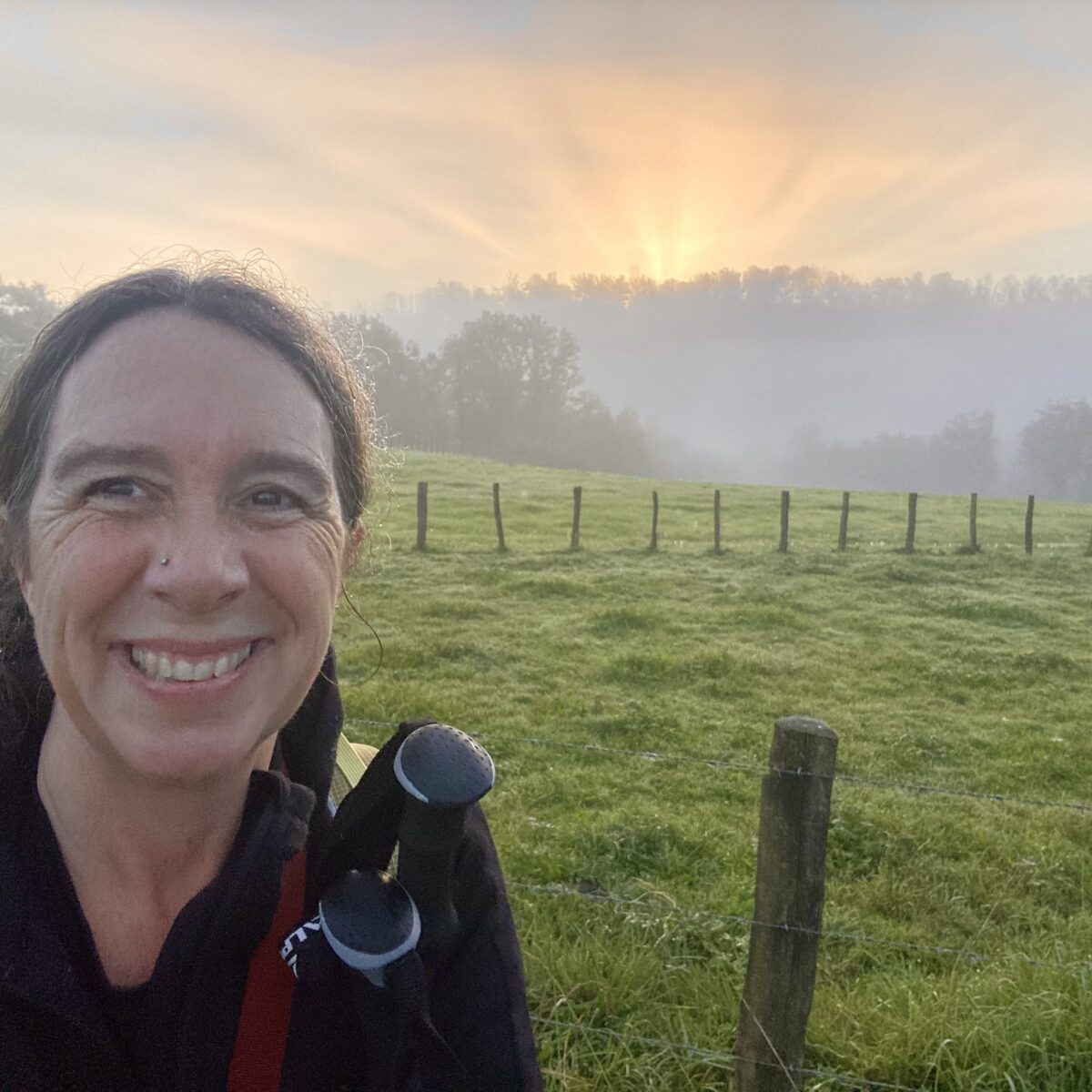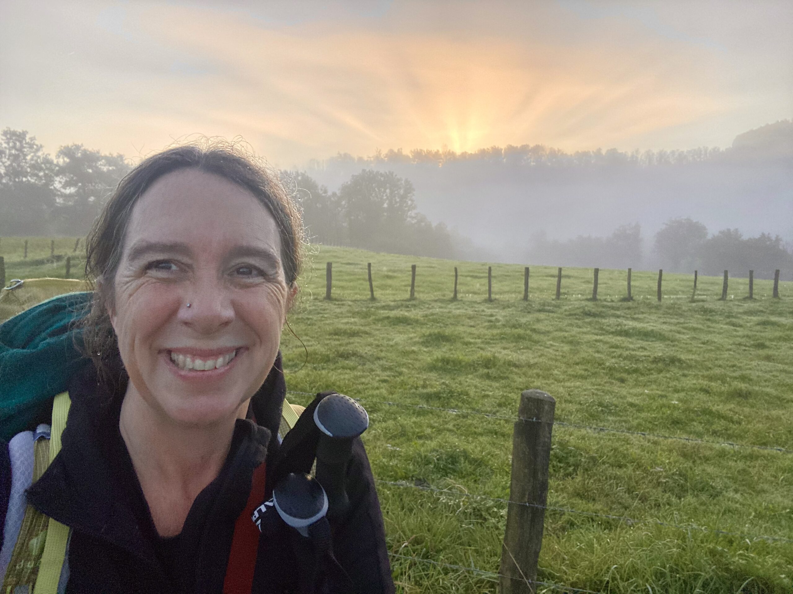The weather was foggy and misty. For most of the day we couldn’t see more than a 1/4 mile down the road. While it was definitely atmospheric, it started to weigh on me after awhile. Everything felt heavier. My bag, my feet, my shoulders. Everything started to ache with weariness. I kept telling myself, at least it isn’t raining.