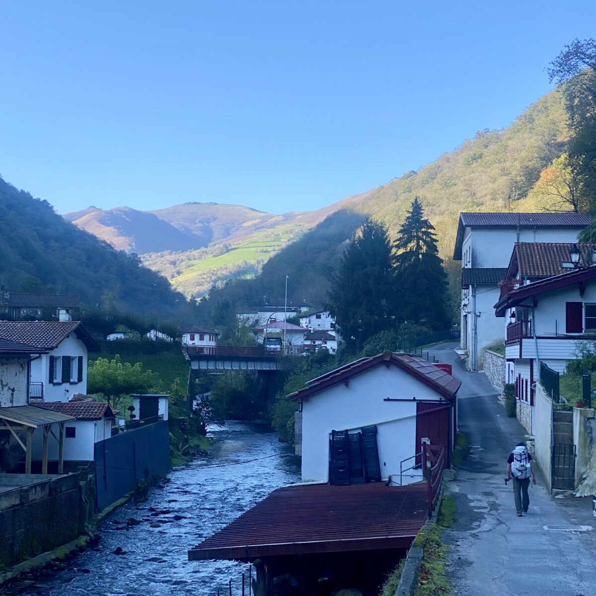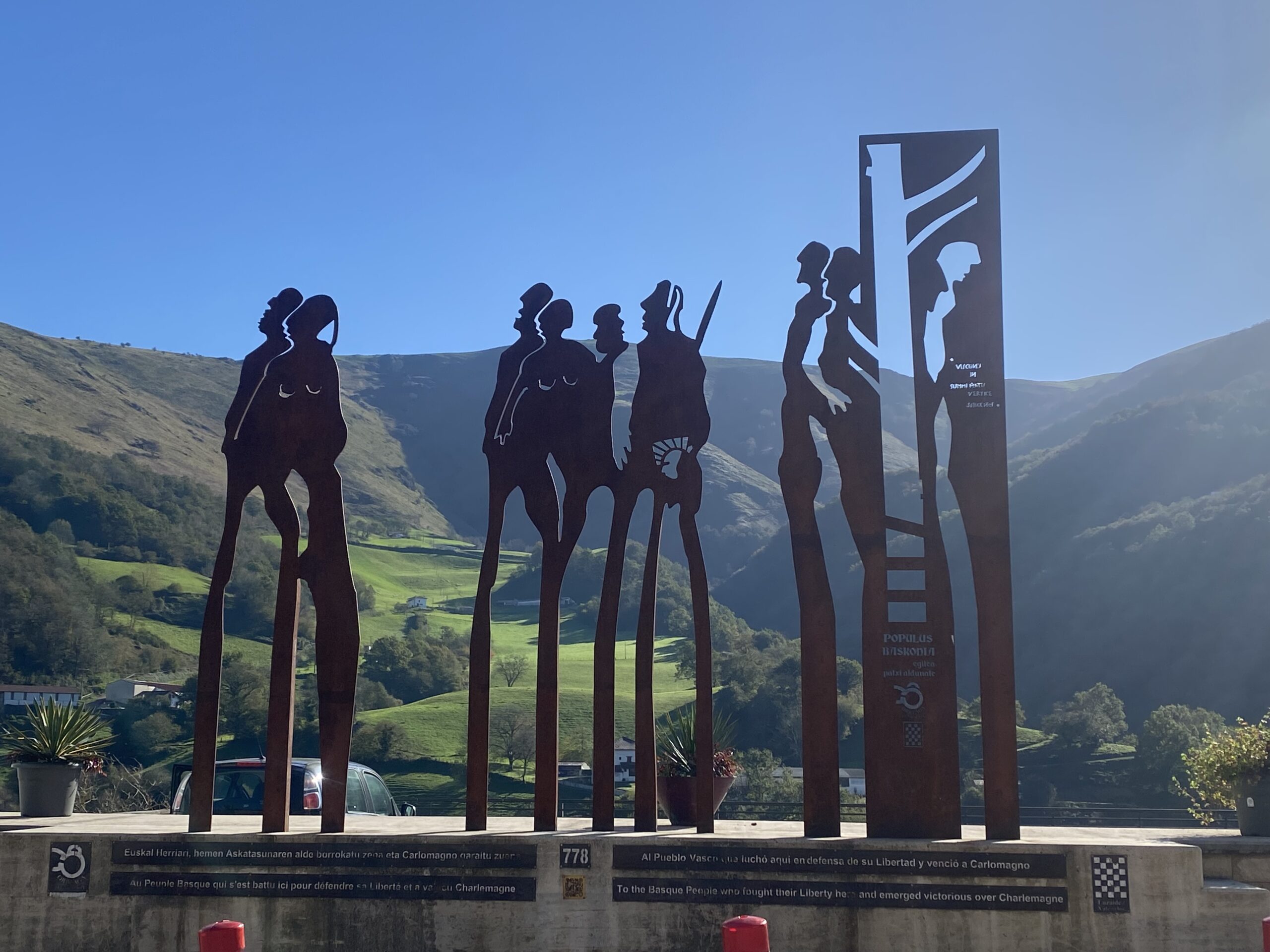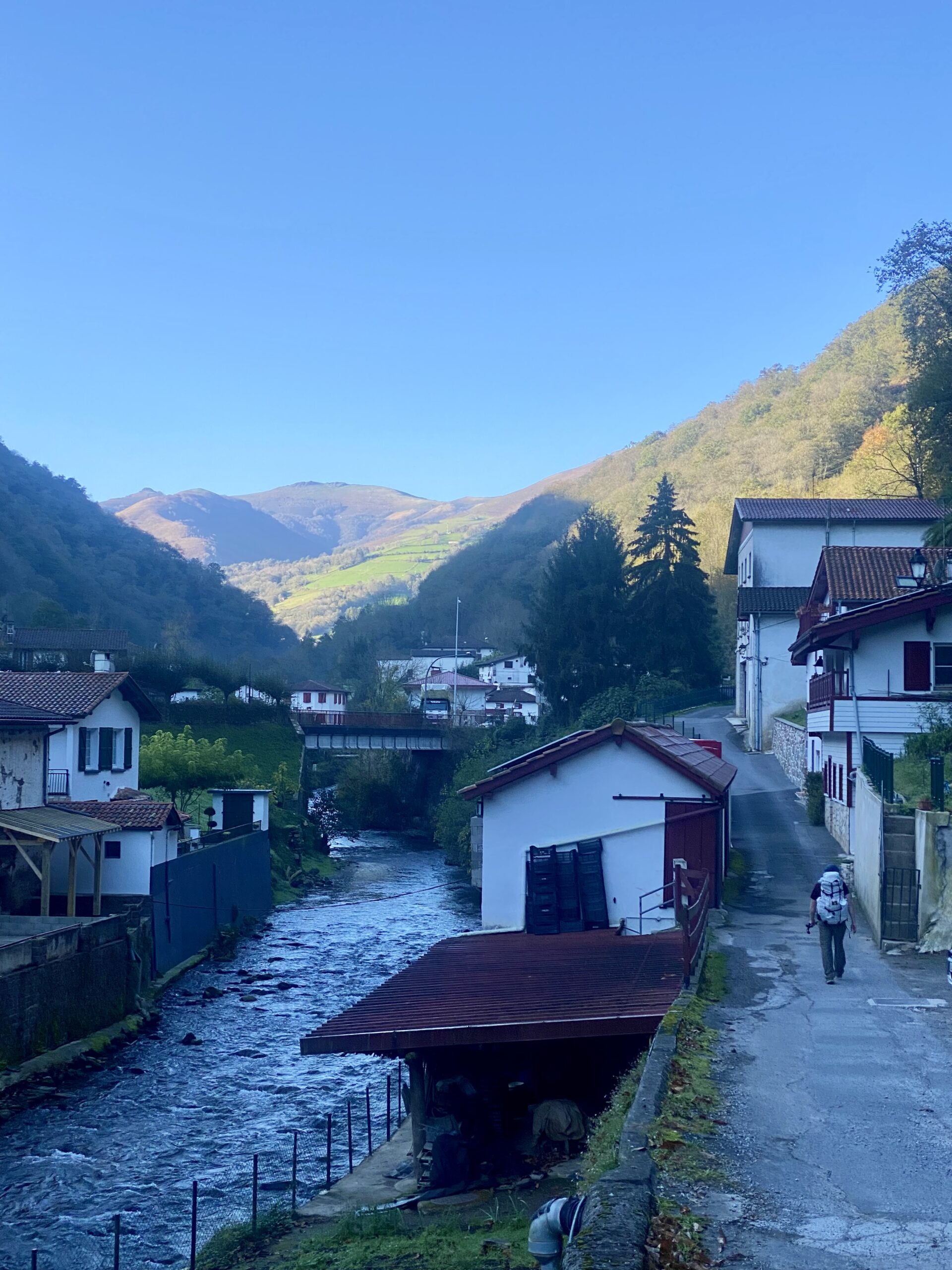 My heart hurts today as we walked our first day of the Camino. People ask why we are here. To escape the election we say. But you can’t escape it. It’s everywhere. But we walk, and we walk and walk, always thinking. We walked 27 km today with a 1200 meter elevation climb. It was challenging. It was grueling. Everything aches. The last 8 km was basically straight up through the Pyrenees. It was not easy. This is where Charlamagne battled the Saracens and lost Roland. This is where Napoleon’s armies crossed into the Basque country and were repelled.