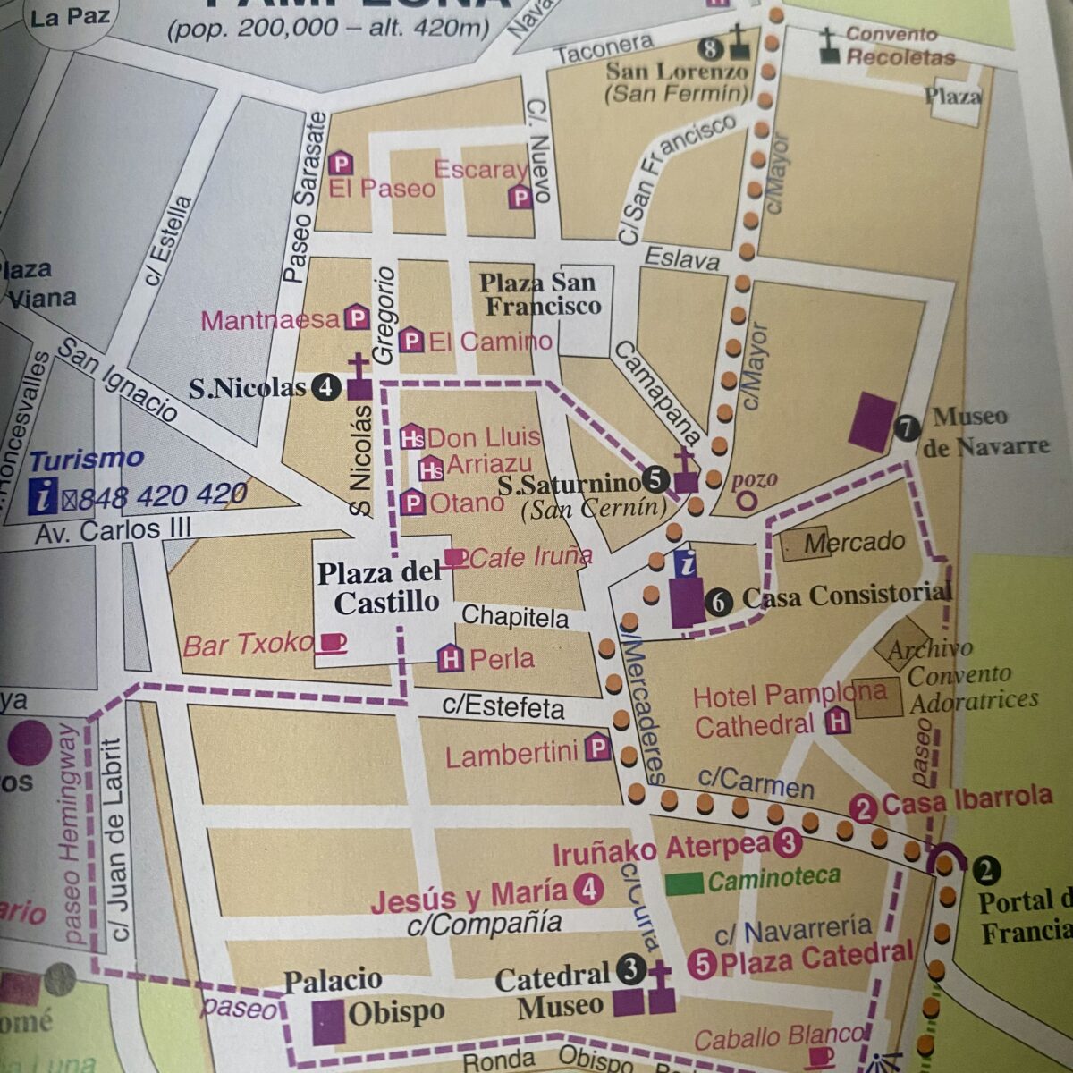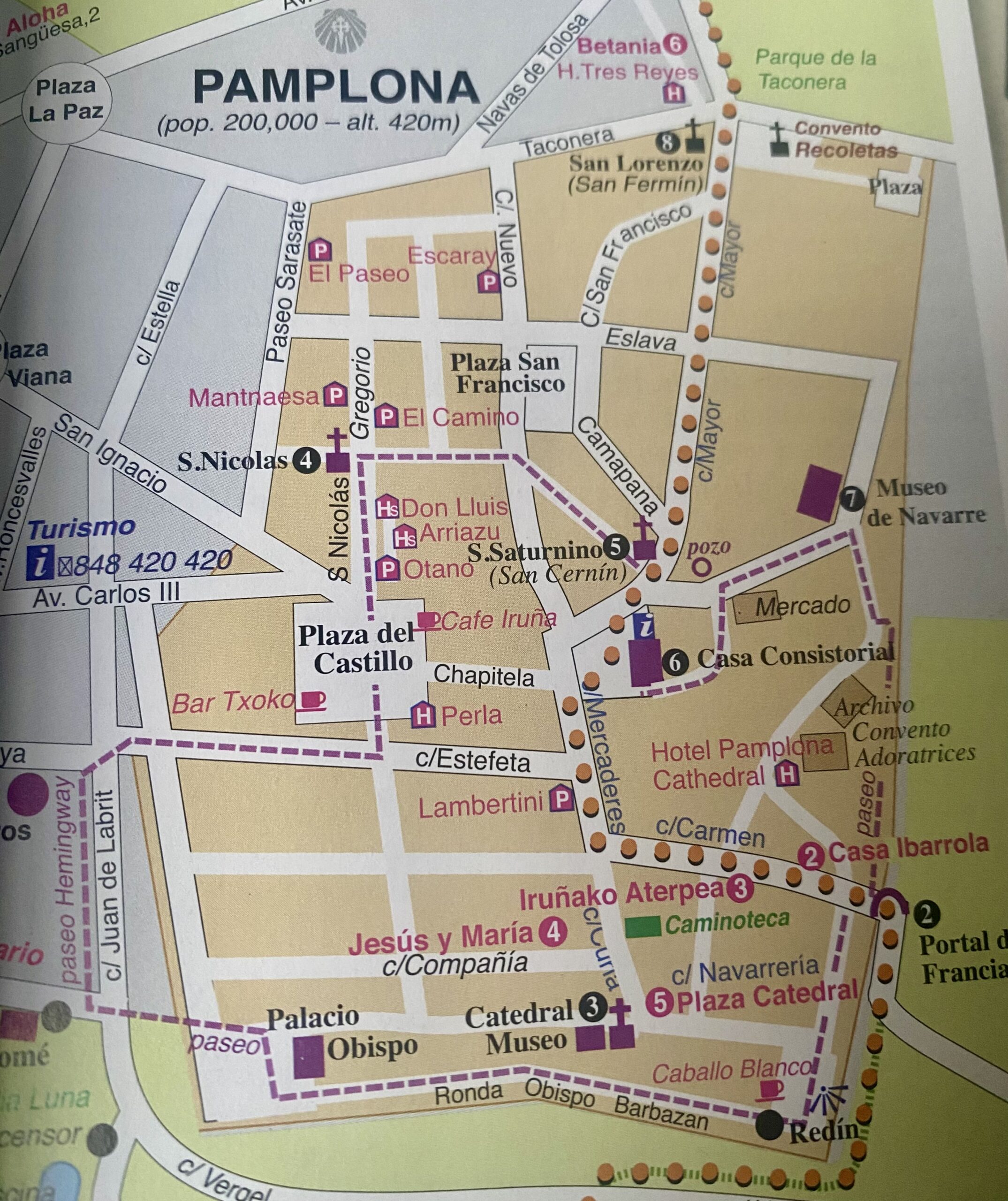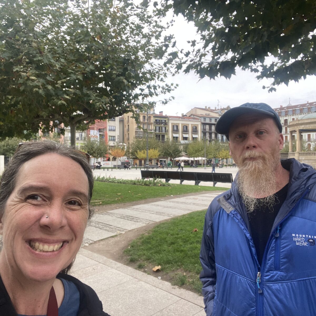 Today was supposed to be a shorter day, but trying to get to the center of Pamplona was a bit hectic. This is the largest city we have been in so far on the Camino (200,000 people), so we had to walk through suburbs and industrial areas. Not the most pleasant, and we became anxious. We probably tacked on an extra hour of walking just trying to navigate the city and find our hostel.
