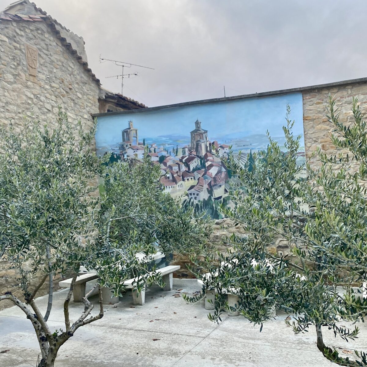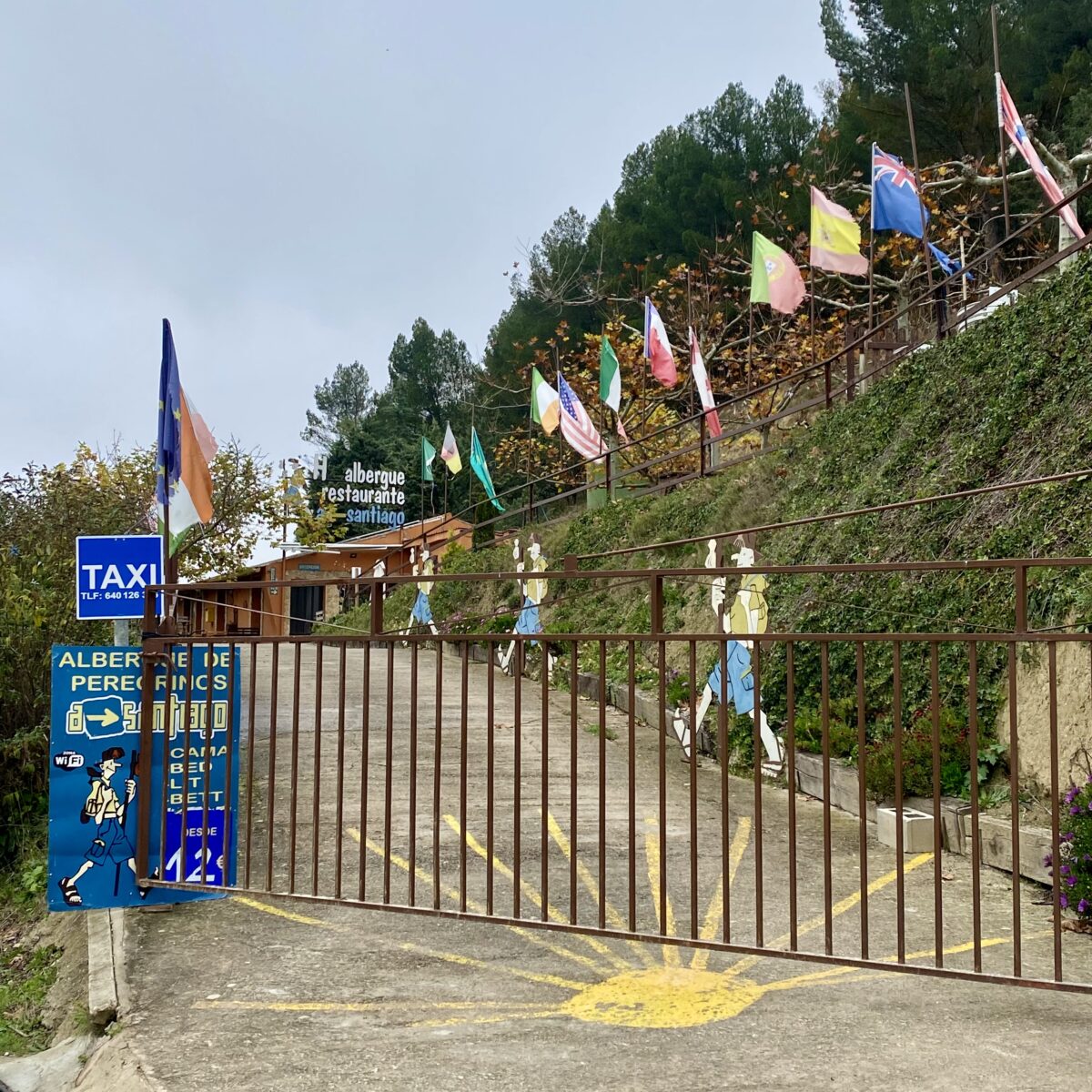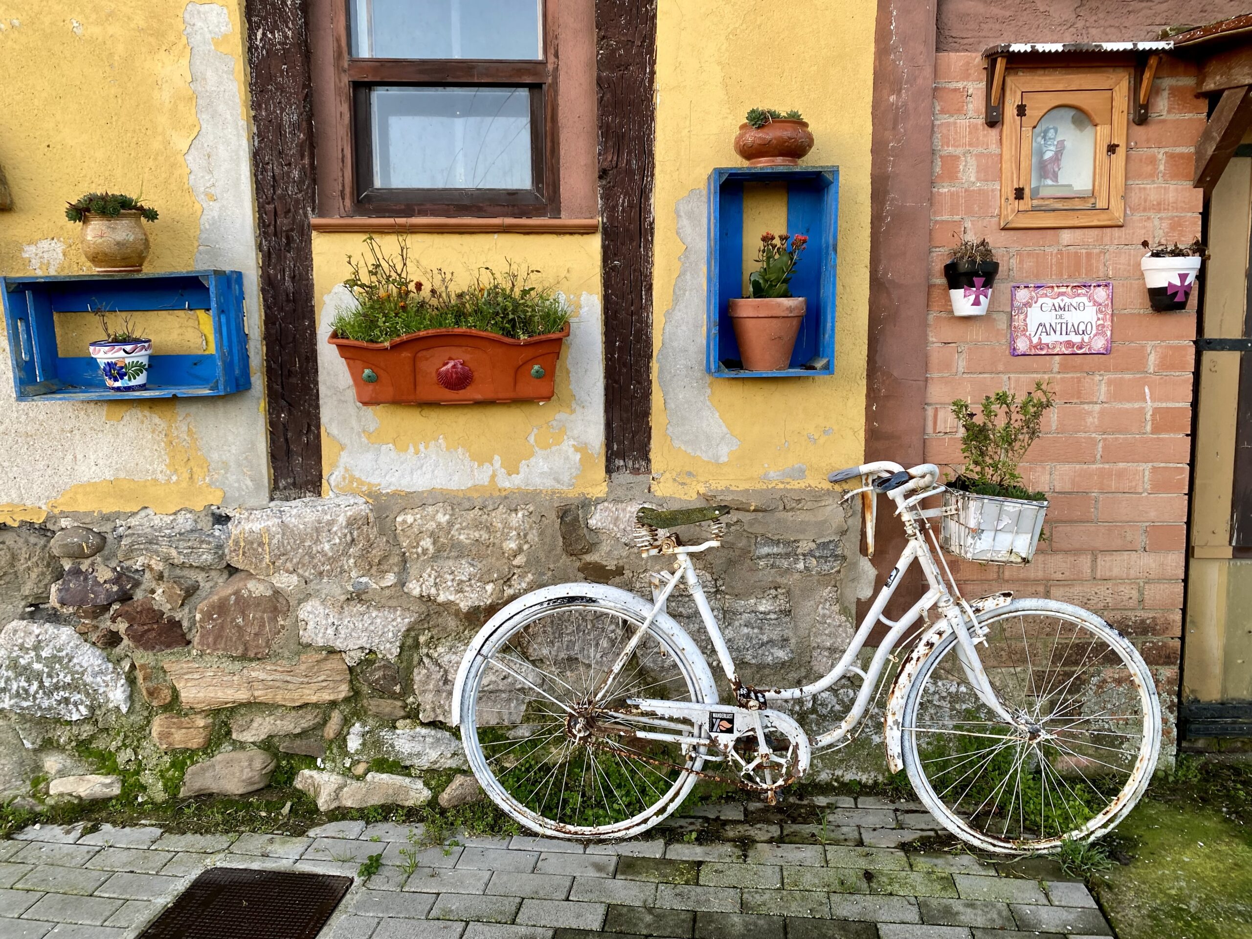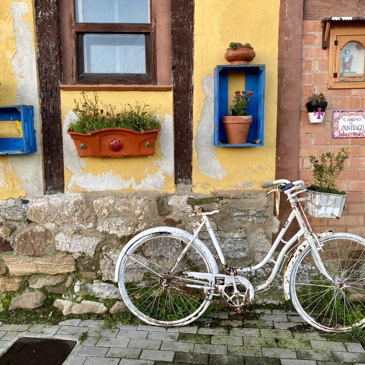 This time of year is so quiet. We are seeing maybe 10-15 other pilgrims per day, and the villages feel like ghost towns, although I’ve been told that’s not so. Still you can see the infrastructure for when the Camino is busy. Sometimes I imagine, as we are walking, what it must be like during the busy time. Large groups of pilgrims walking together and chatting away. Their hiking poles (or sticks) going tap, tap, tap as they walk through the villages. Young people up late at night drinking and partying, then dragging themselves out early the next morning to walk. So much noise and activity. Nothing like now.