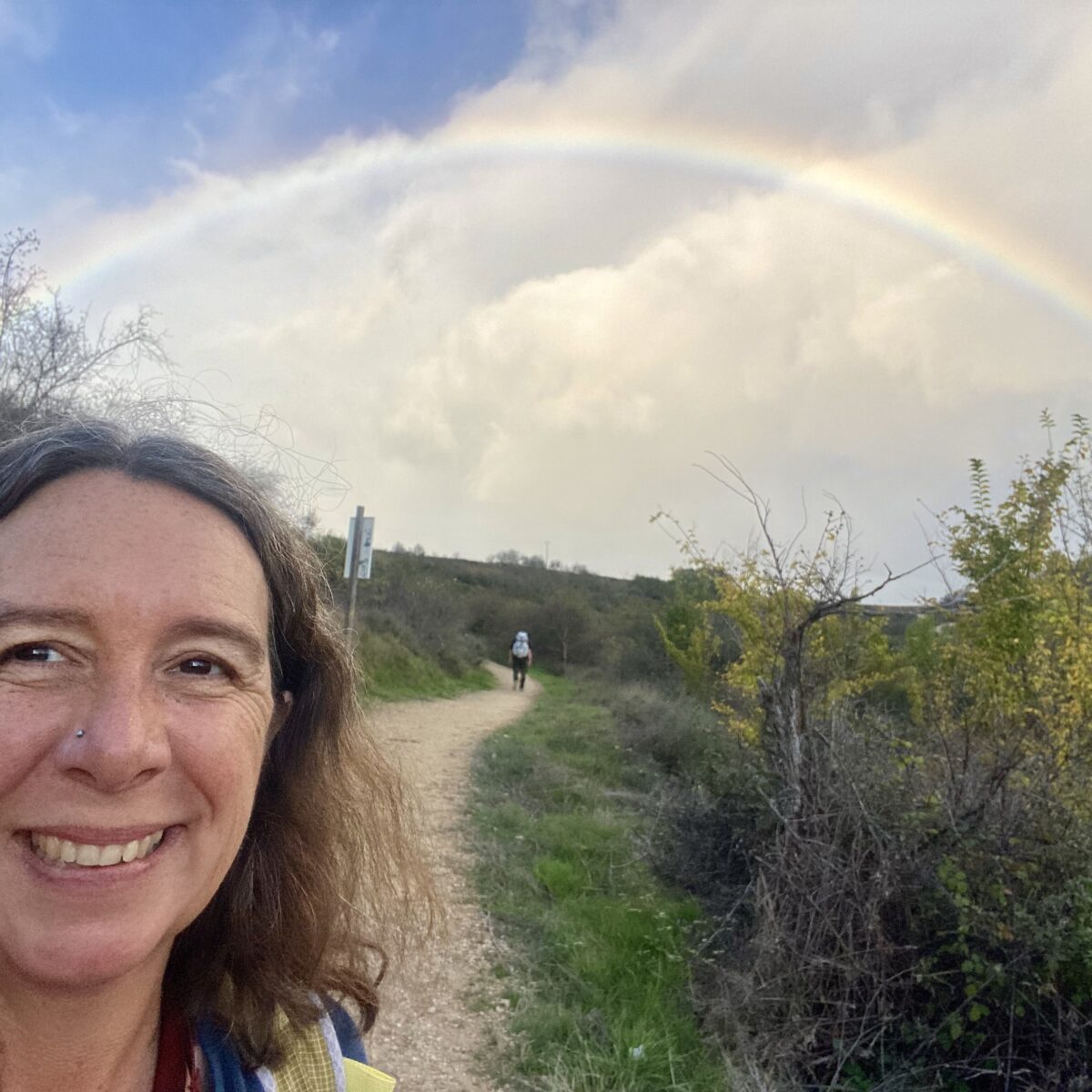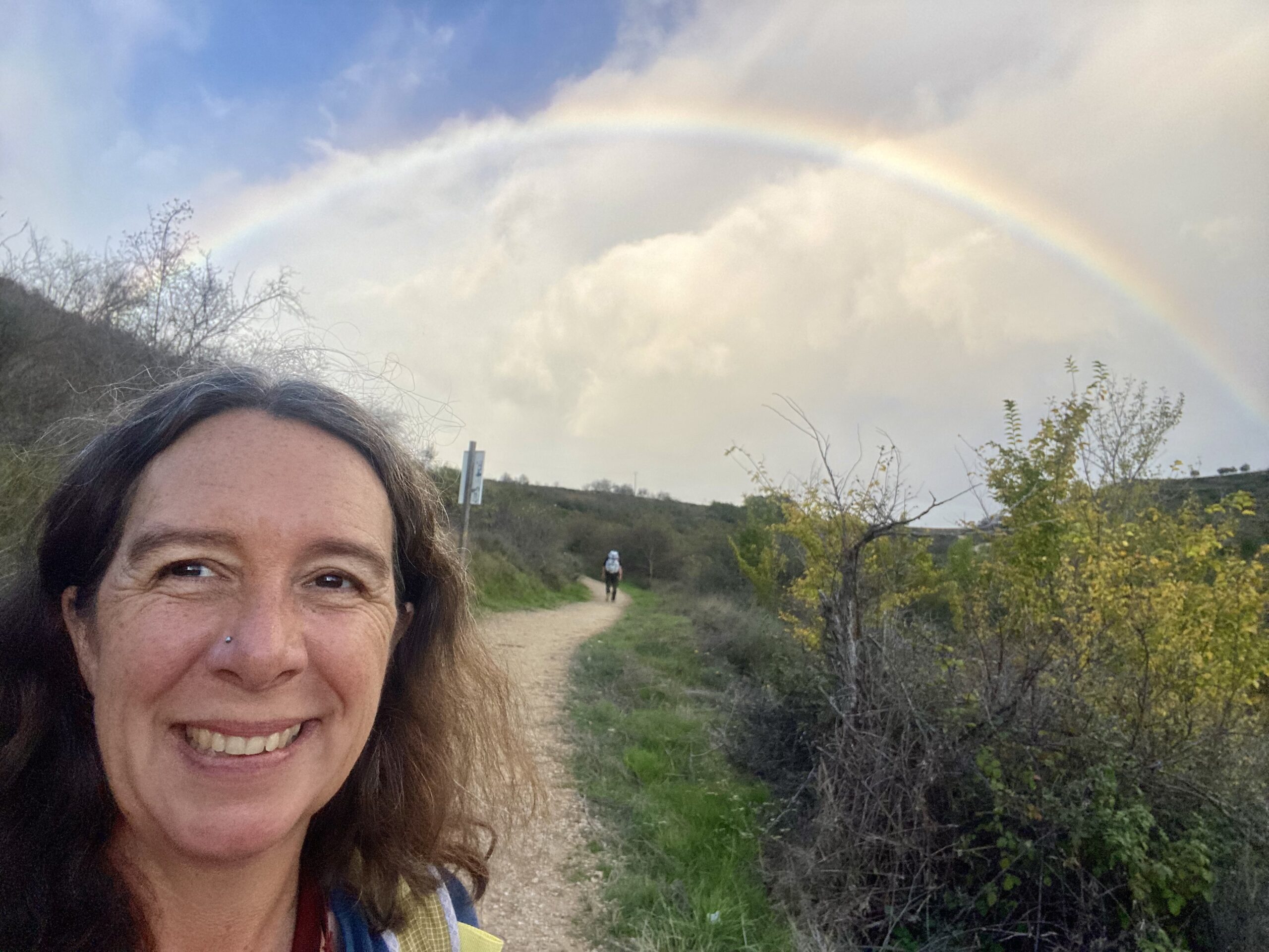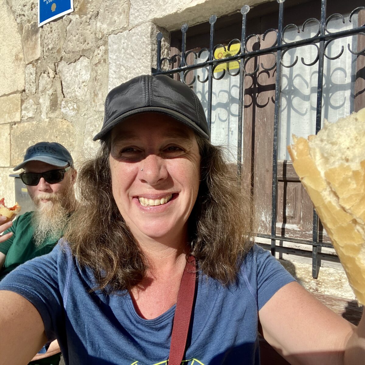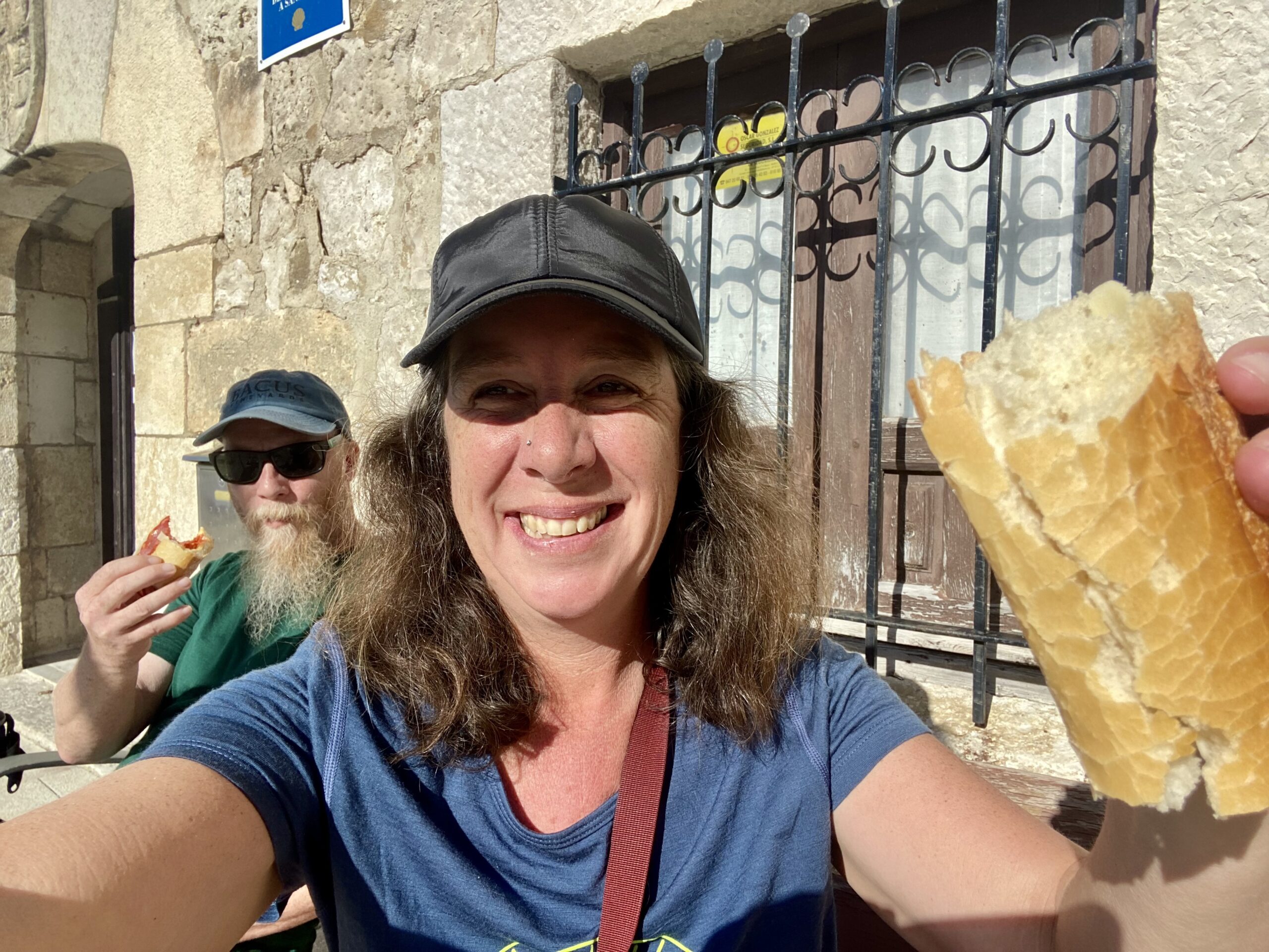 I really appreciate doing the walk this time of year. There are just enough people to form a Camino family, but not so many that we can’t walk and contemplate in peace. One or two days we have not seen another pilgrim for hours. Yes, many of the shops and albergues are closed, but we have not had trouble finding a bed. It just takes a little pre-planning the day before, and there are apps saying which places are open. We also always stock up on food in our backpacks: a baguette, cheese, and some chorizo (for Aron), fruit and snacks. We have been fine.