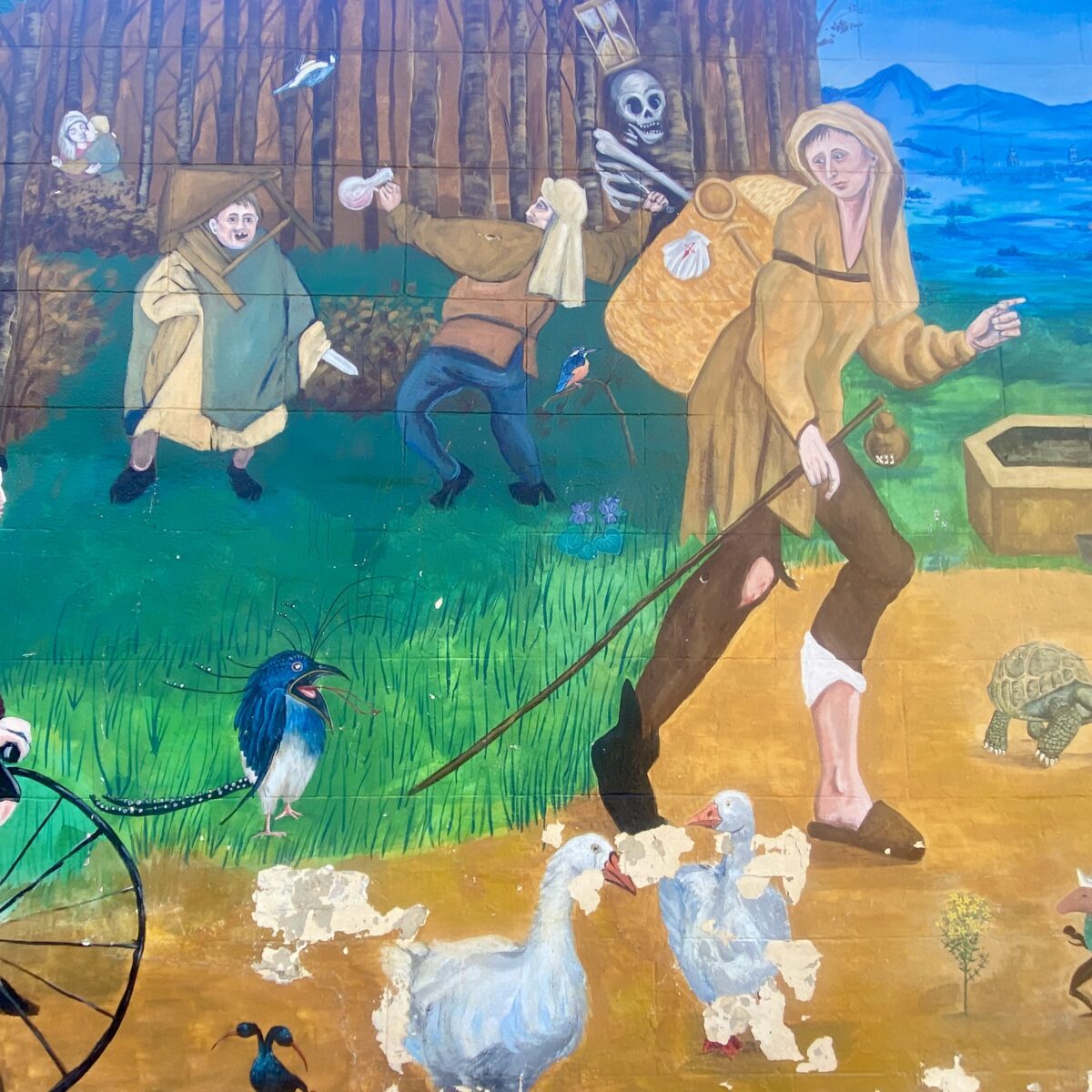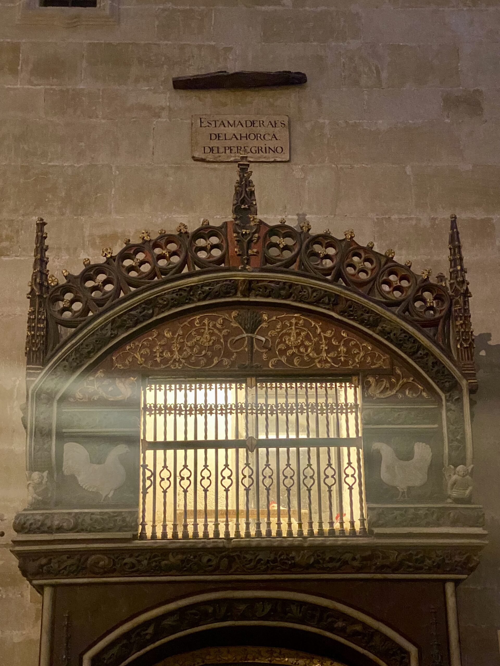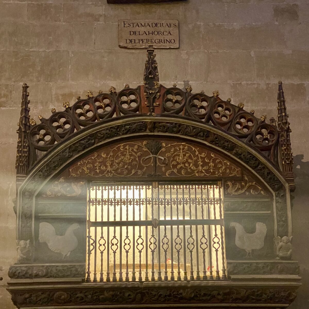 We kept walking until we reached Santo Domingo de la Calzada. Most of our Camino friends planned to stay here this night, but we were going 7km farther. It was a lovely little town with lots of restaurants. Santo Domingo (the person) helped to build the Camino and was a protector of pilgrims. In imagery, he is always carrying a sickle and often followed by two chickens. Both are based on legends of the Saint. We vsited the cathedral which actually has live chickens living inside one of the galleries.