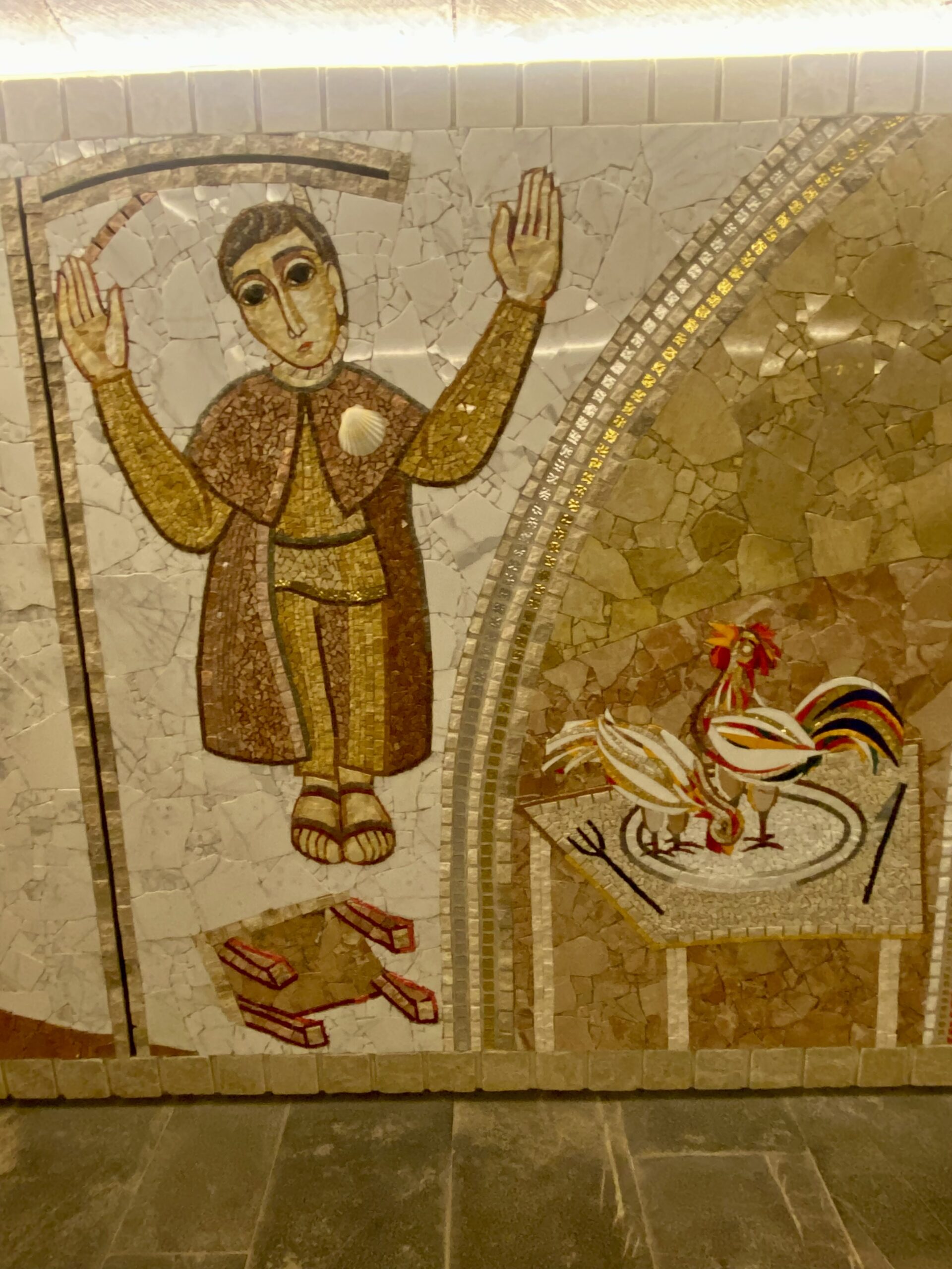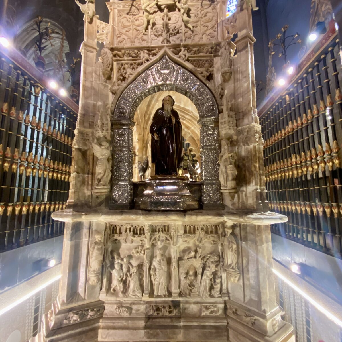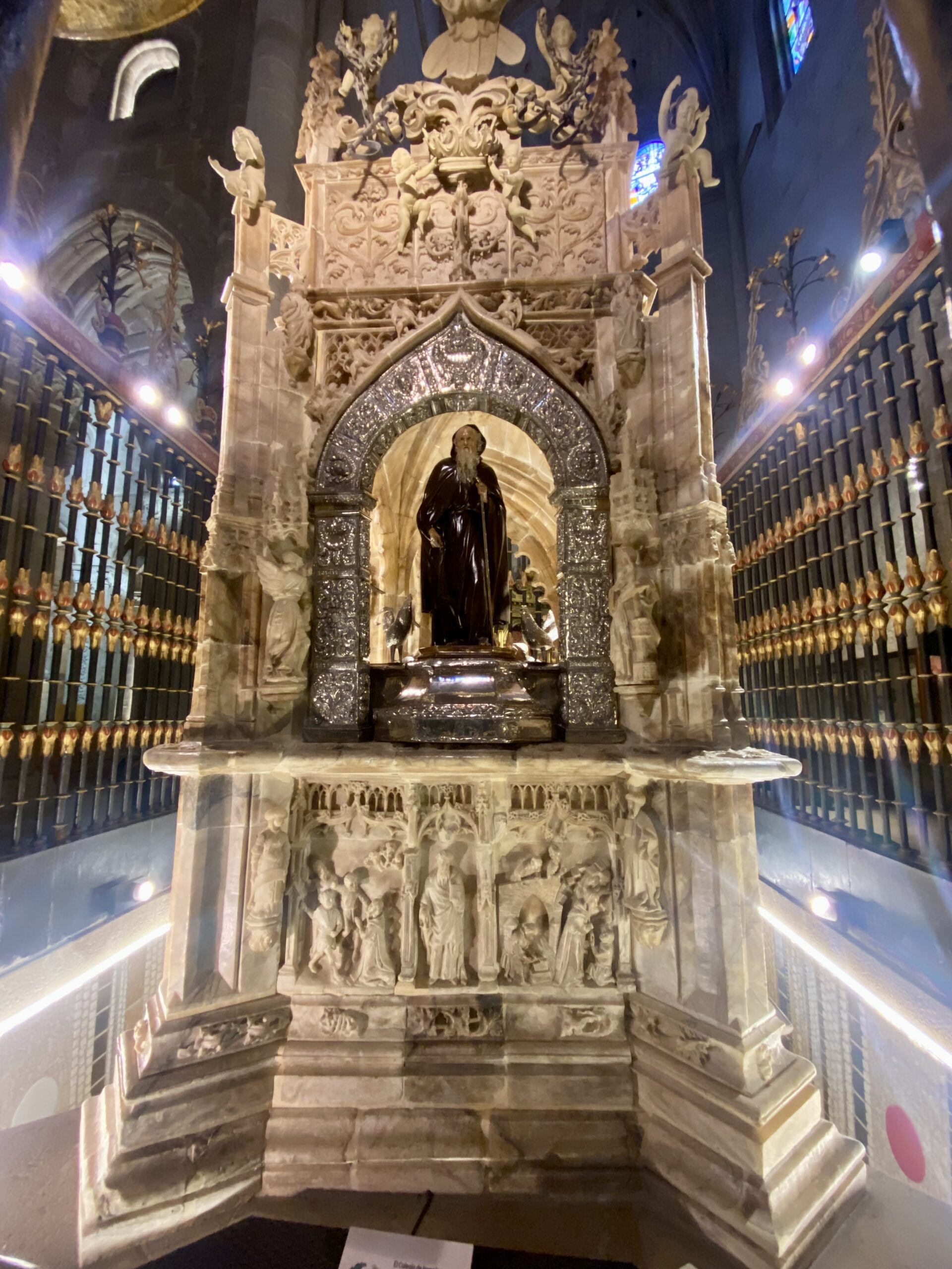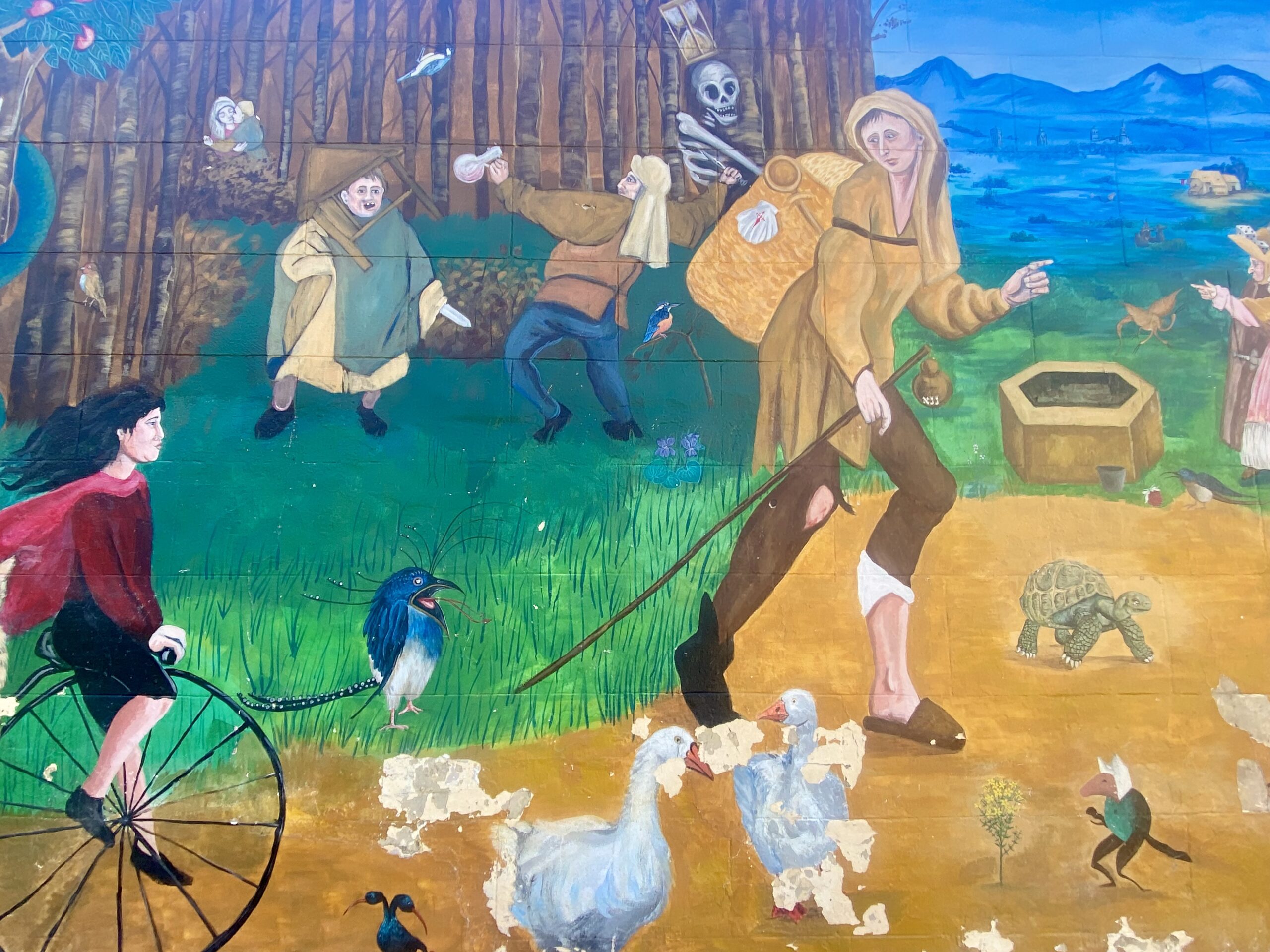 We kept walking until we reached Santo Domingo de la Calzada. Most of our Camino friends planned to stay here this night, but we were going 7km farther. It was a lovely little town with lots of restaurants. Santo Domingo (the person) helped to build the Camino and was a protector of pilgrims. In imagery, he is always carrying a sickle and often followed by two chickens. Both are based on legends of the Saint. We vsited the cathedral which actually has live chickens living inside one of the galleries.