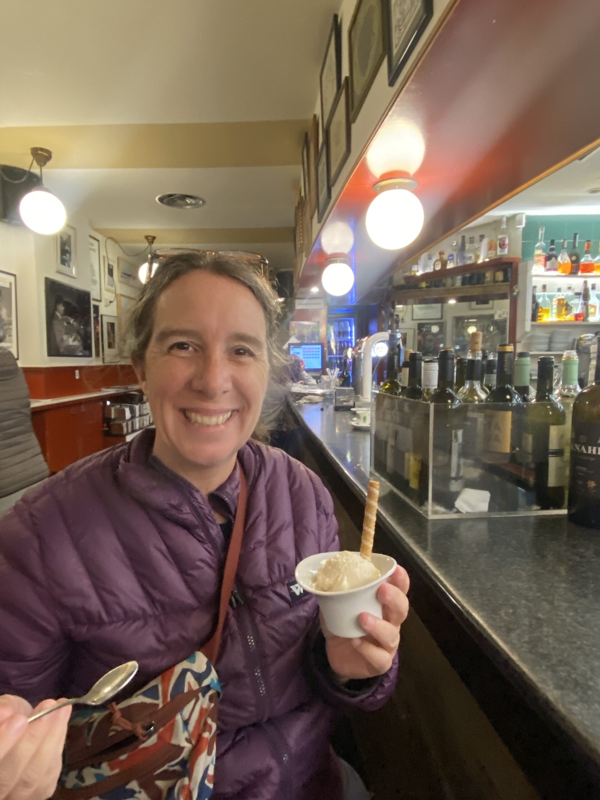 Logroño is a lovely little city. We slept in, had the breakfast buffet at the hotel, and did our laundry. Later, we checked out the Museo de Rioja and went wine tasting at Arizcuren Bodega with Tatiana and Felipe (Portuguese couple living in England). We got even more rest and then we went searching for artisanal ice cream, which Logroño is known for. Yet, every ice cream shop was closed. We happened to run into Carlos and Tamara, locals who walked with us from Roncesvalles, but they told us the ice cream places all close as soon as it gets cold. Tamara recommended one last possibility, and fortunately it was open. I tried Leche merengada (whipped cinnamon milk), a local specialty. Fue deliciosa!!!