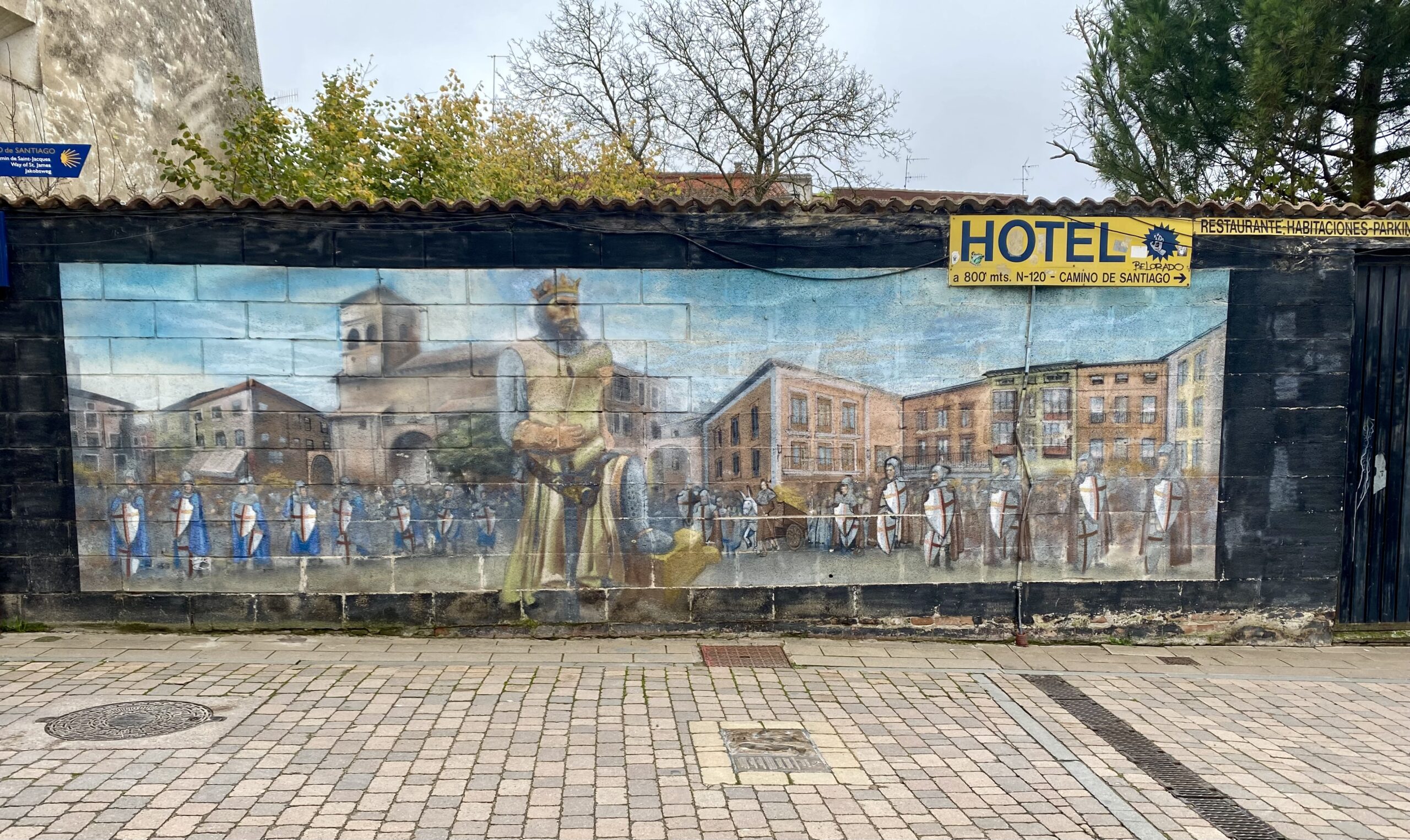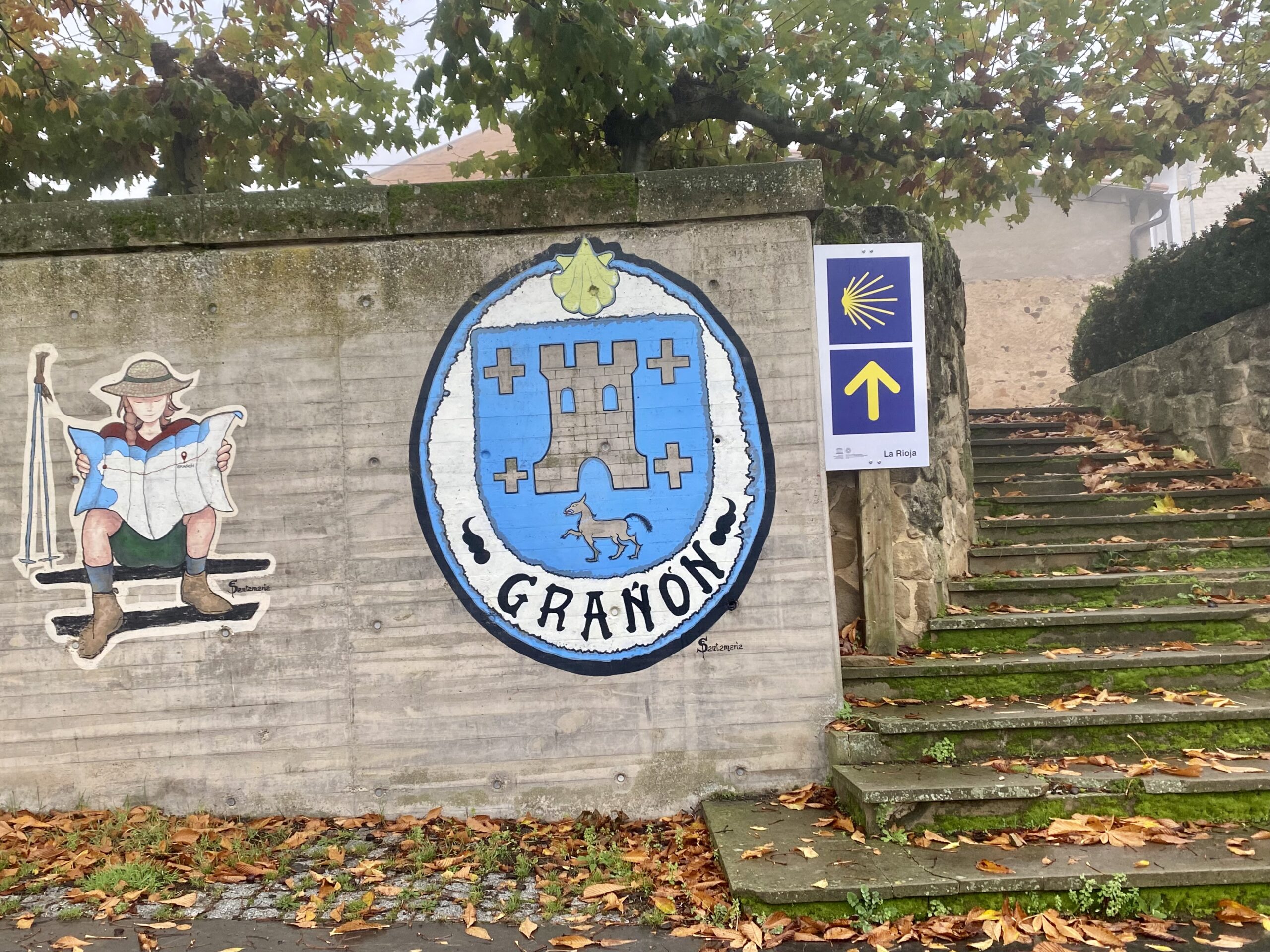 We also passed through Villoria de la Rioja, birthplace of Santo Domingo (who helped develop the Camino, see yesterday). Banners announced Santo Domingo was born 1000 years ago from 2019.