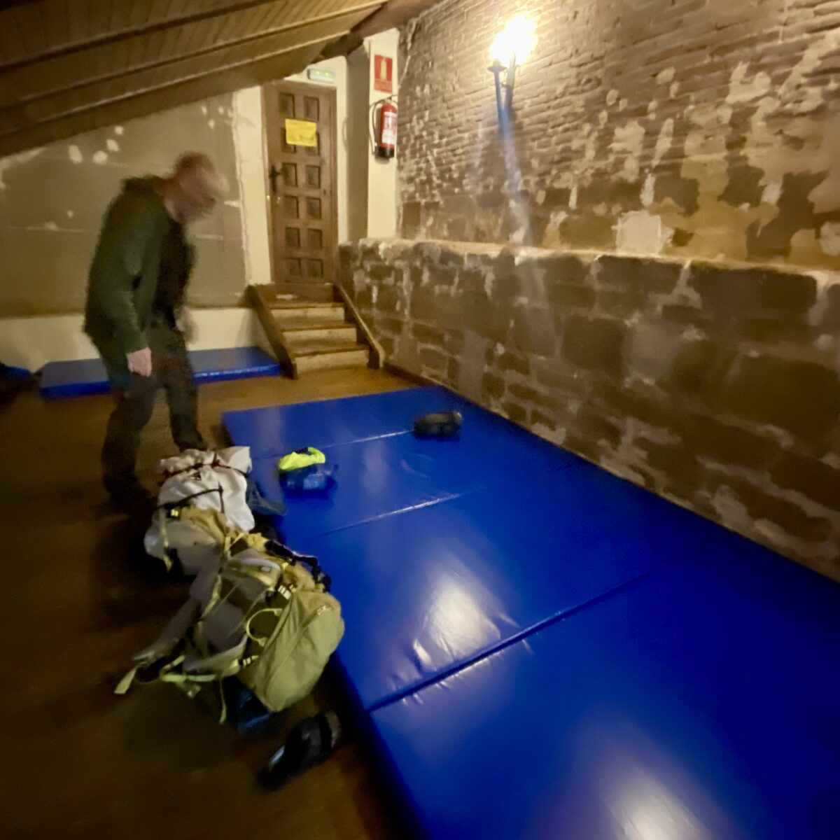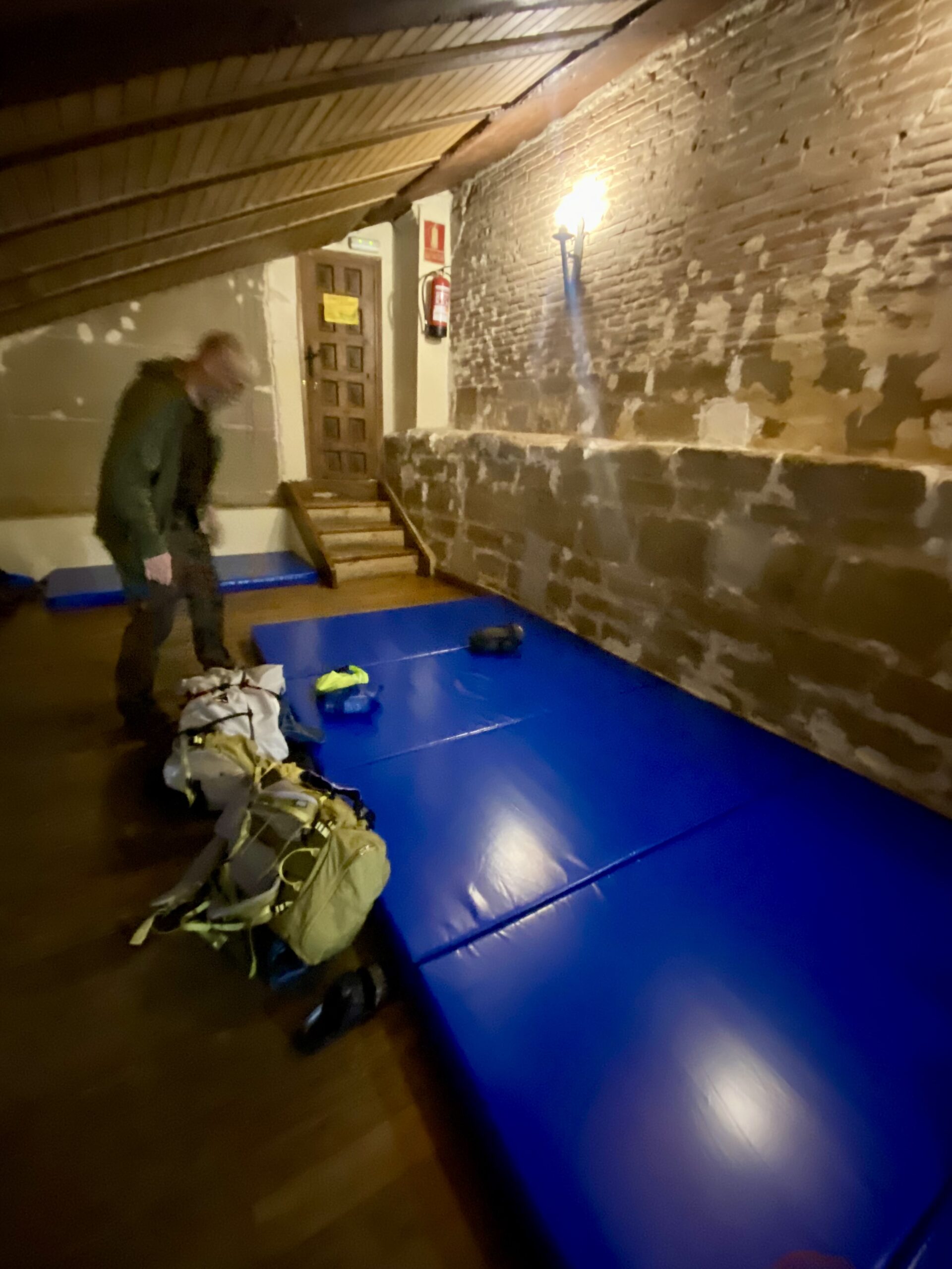 After 7 grueling kilometers, we reached Grañon. The first person we saw was Terri, a volunteer from Vancouver Island who greeted us and gave us instructions on how to find the albergue. We made our way up dark spiraling steps to the back part of the church. We were pleasantly surprised to find a warm and inviting place, with super friendly volunteers and hot tea. Our bed is just a mat on the floor but it’s comfortable.