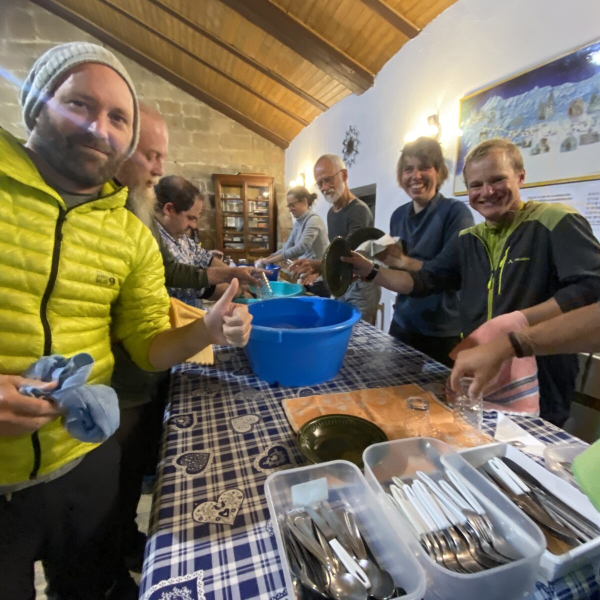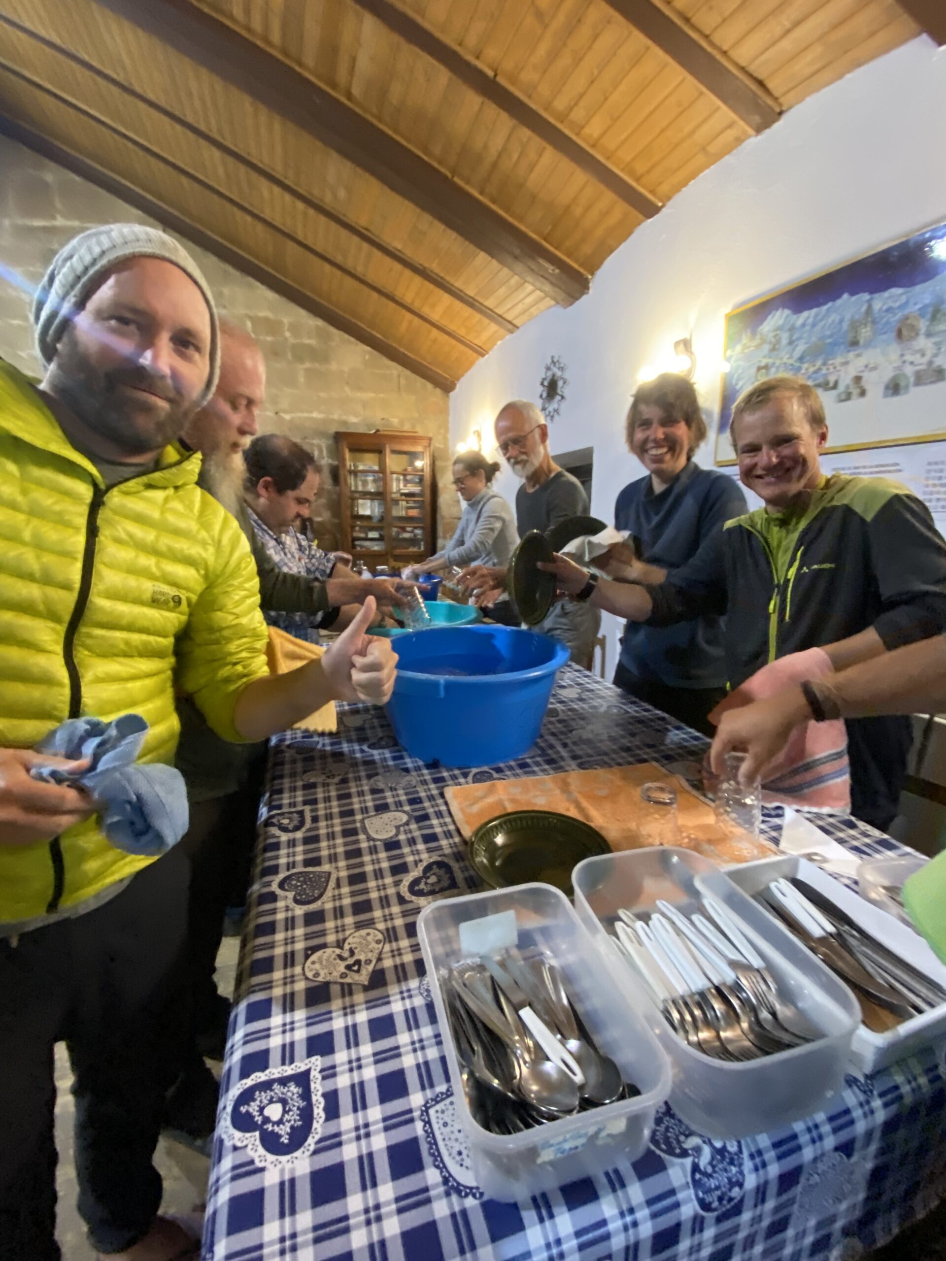 The owner is very kind and he also provided us dinner for 11 people. The cost was just €20 per person for a bed and dinner ($21.31). What a bargain! In addition he did our laundry. Amazing.