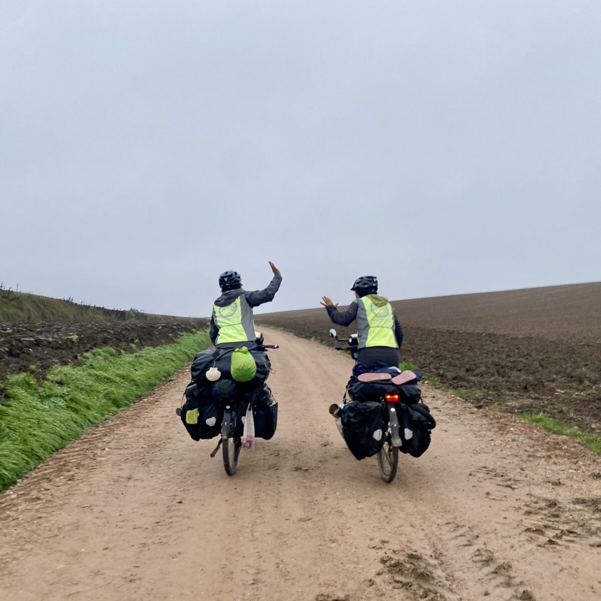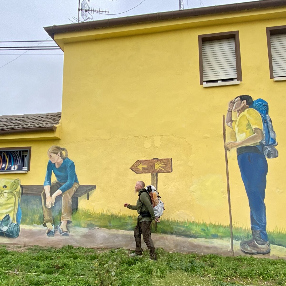 Today was better than yesterday but still tough. At least we could see off into the distance. Still the sun never came out. One positive thing was there were more villages. I like villages because they break up the walk and sometimes there might even be a bar or cafe open. We like these because we can stop, get a snack, and use the toilet. Very important! Luckily, I have only had to go outdoors once. There are many stretches without even a single tree, so absolutely no privacy.
