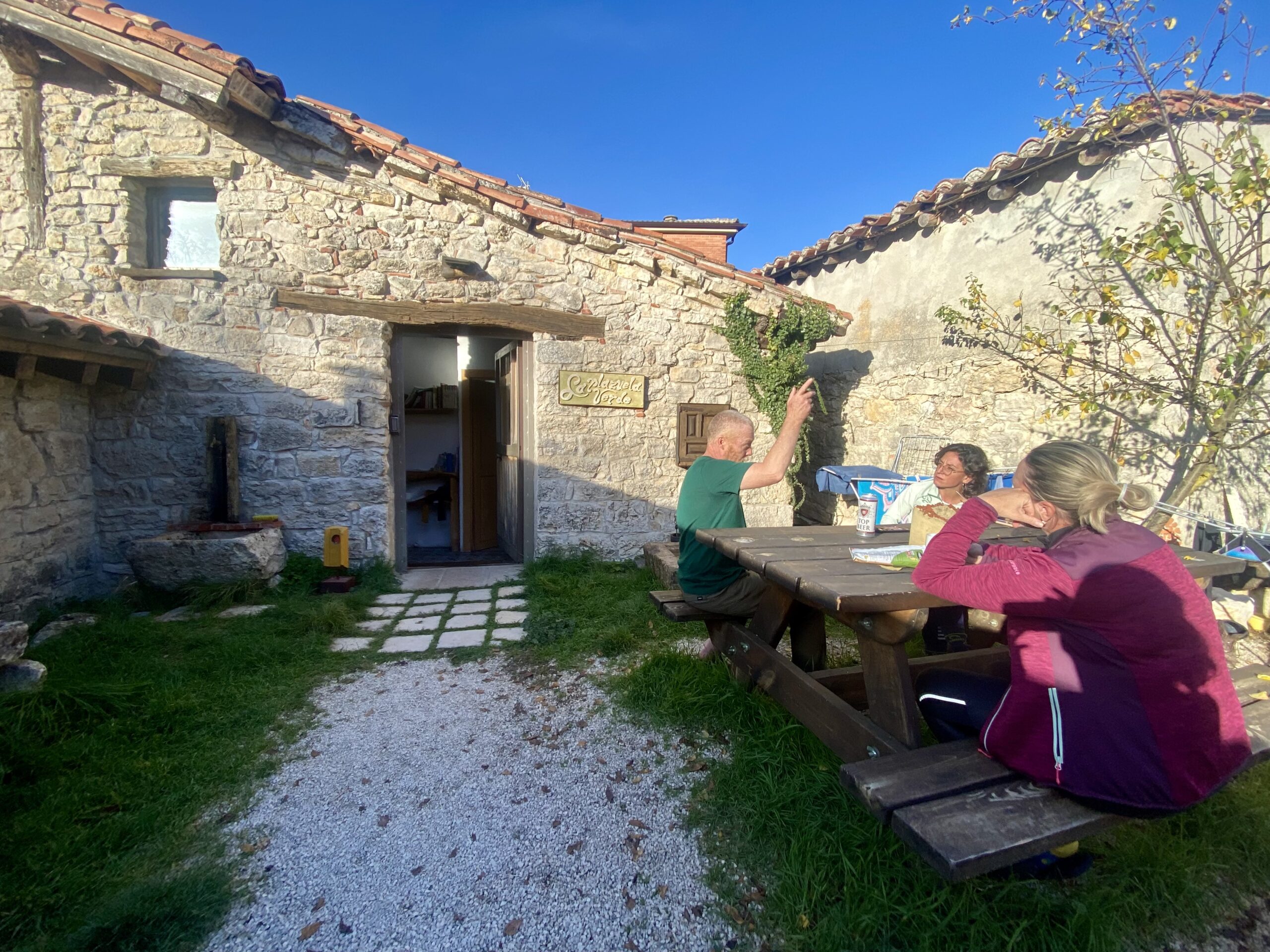 Wow, what a day! Longest day yet. We decided to join our Camino friends in a cute little hostel called Albergue Karma in the town of Sansol. It’s a 200-year old house run by a man who walked the Camino himself and then decided to open an albergue and is a dedicated healer. People stay here who are suffering from ailments on the Camino.