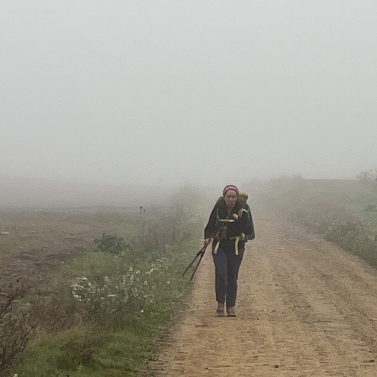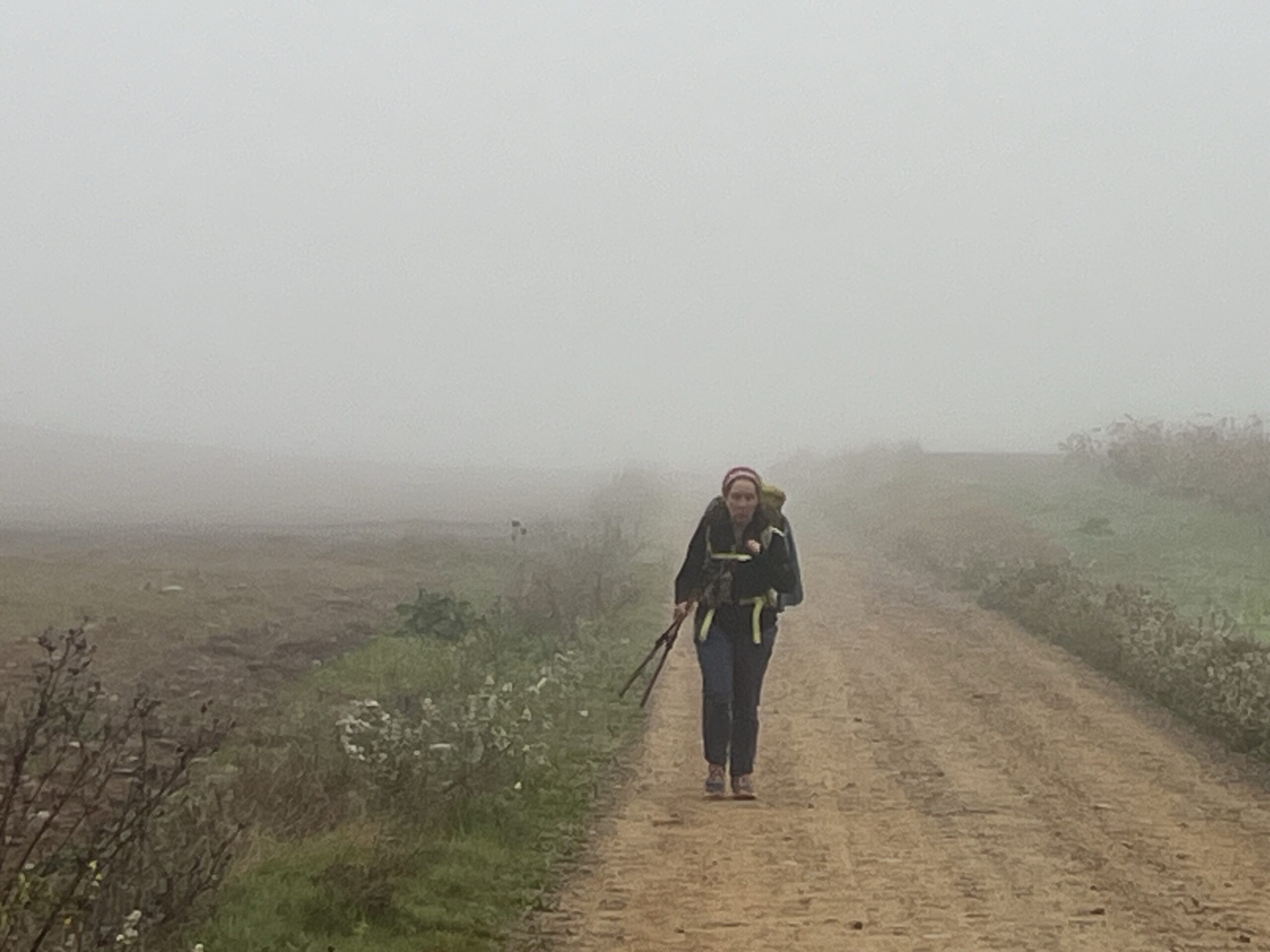 The country road went on and on and on through the fog. Few pilgrims could be seen, and when we did see one, they quickly disappeared into the grayness.
