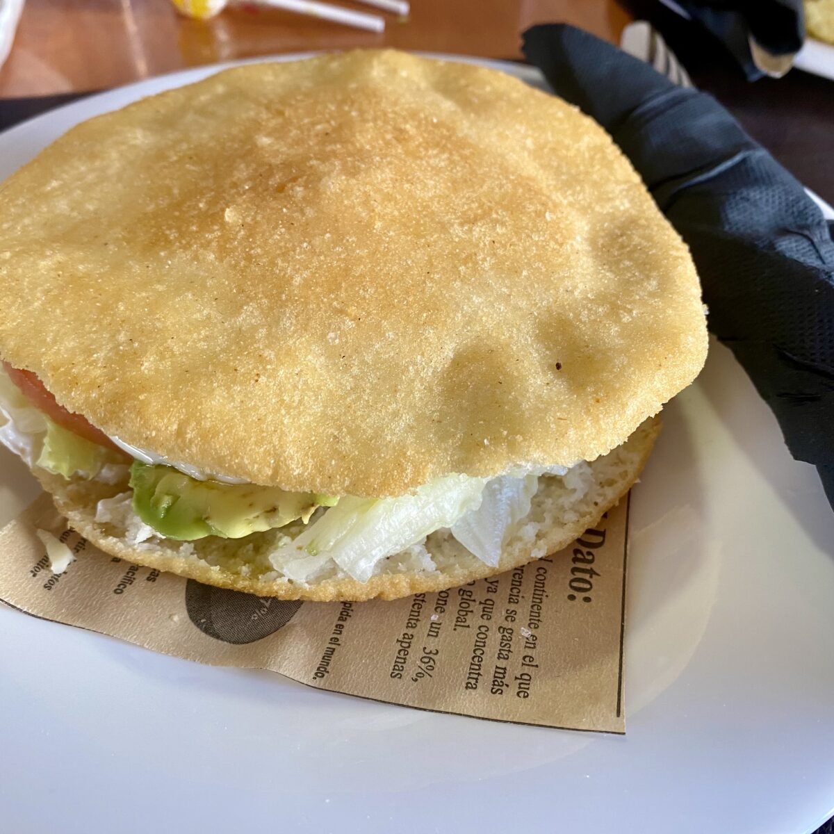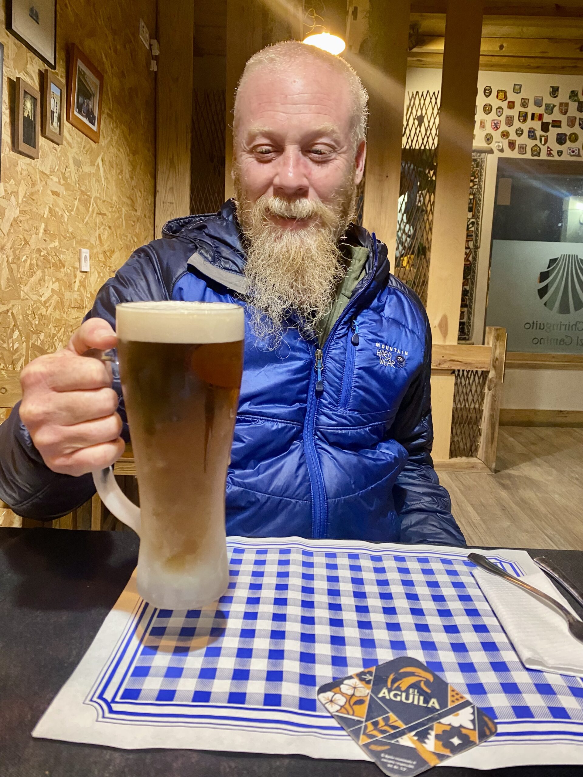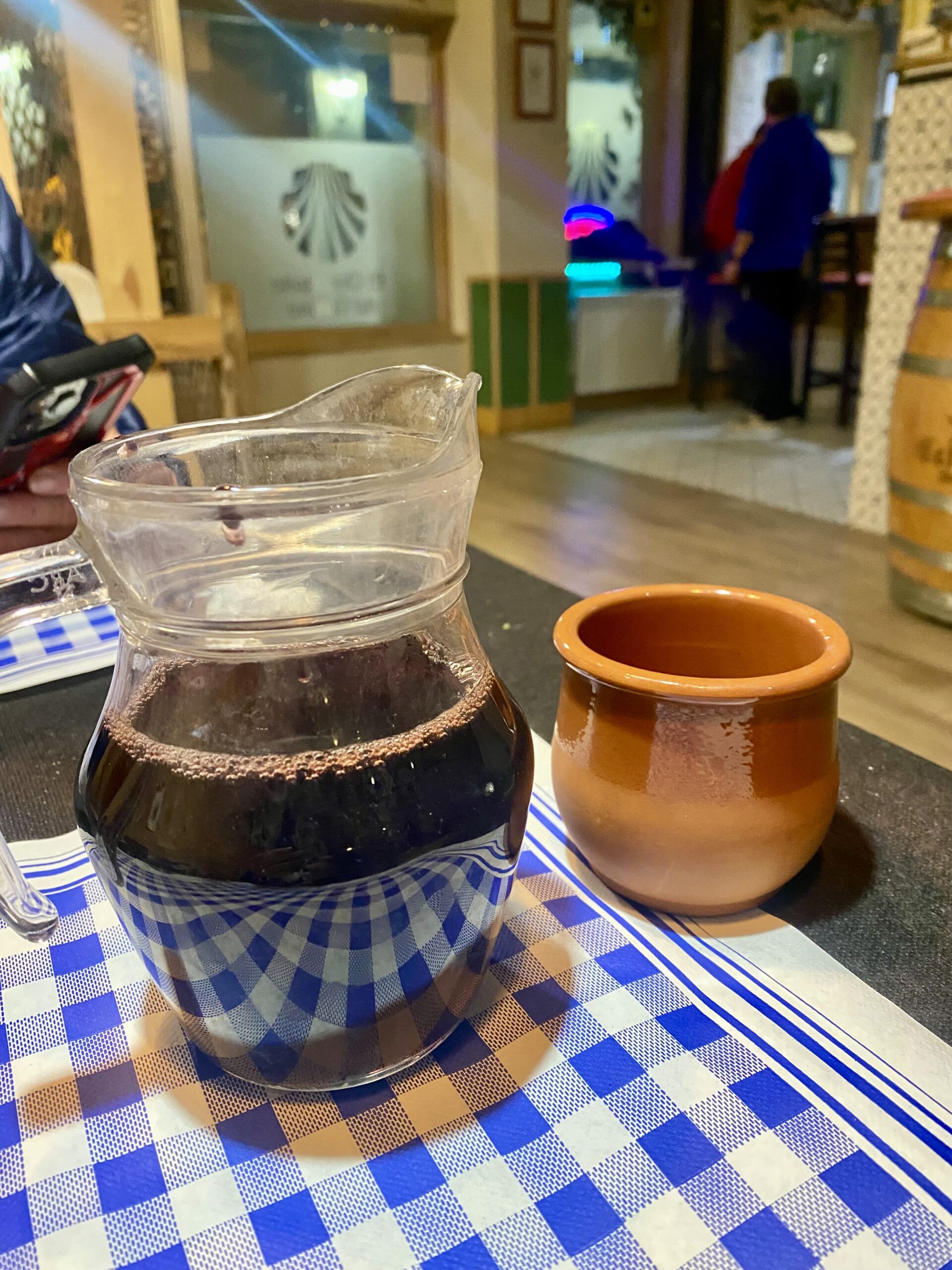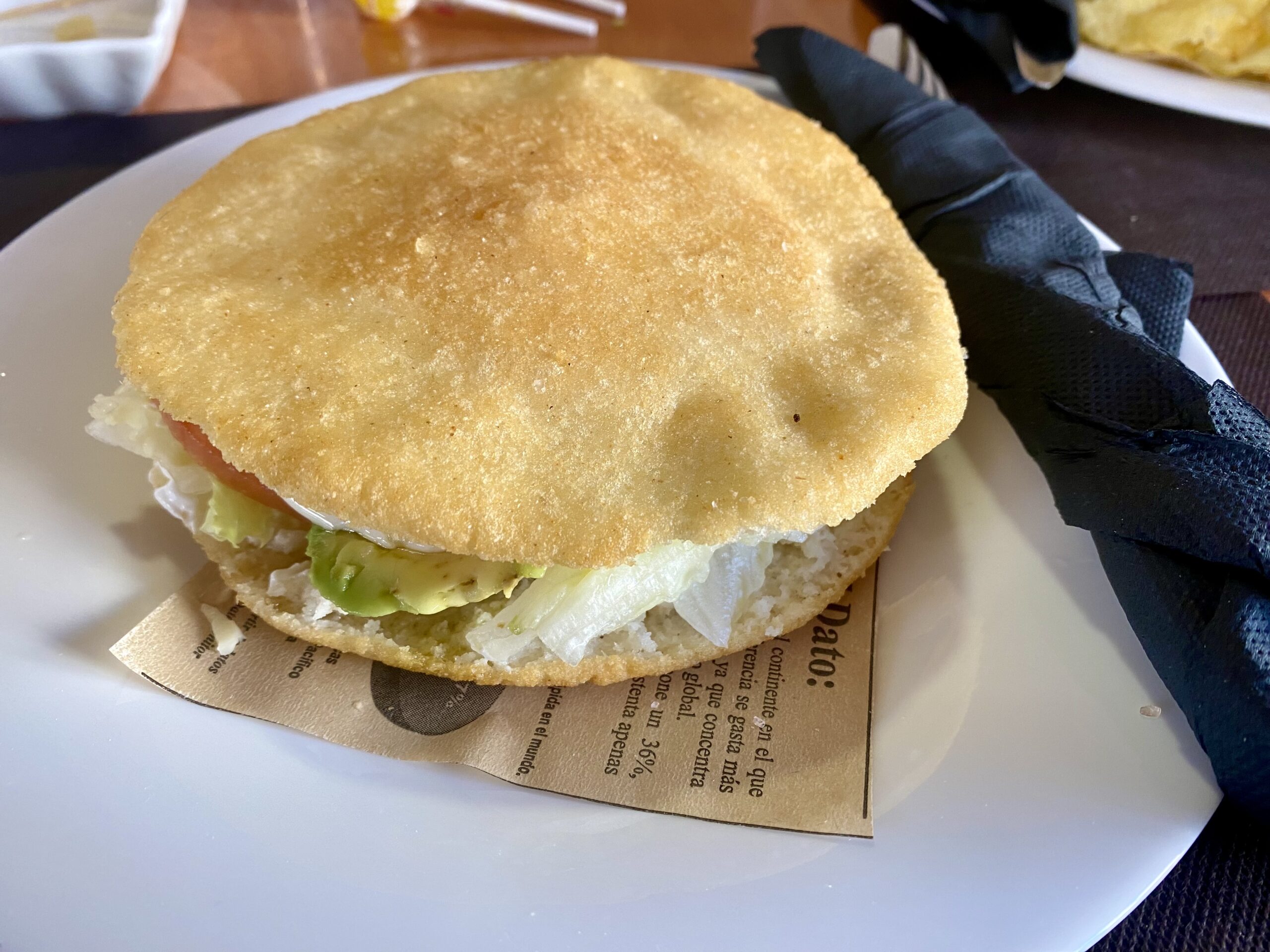 As we neared the edge of town, we decided to try one last bar, Taberna el Peregrino. The sign outside said no hot food until 1:30 but we decided to ask just in case. The host welcomed us in and made suggestions on what we should order. Once again, I felt gratitude for this man who decided to help us when we needed it the most. The arepa he made me was delicious. Aron had a burger. He even brought us candy. It was perfect.