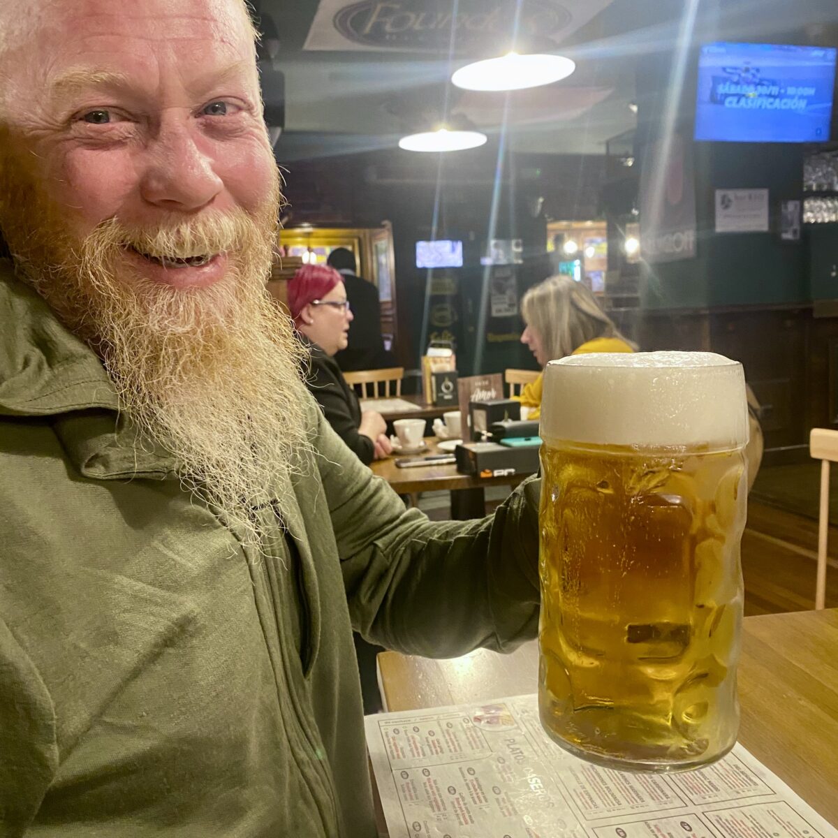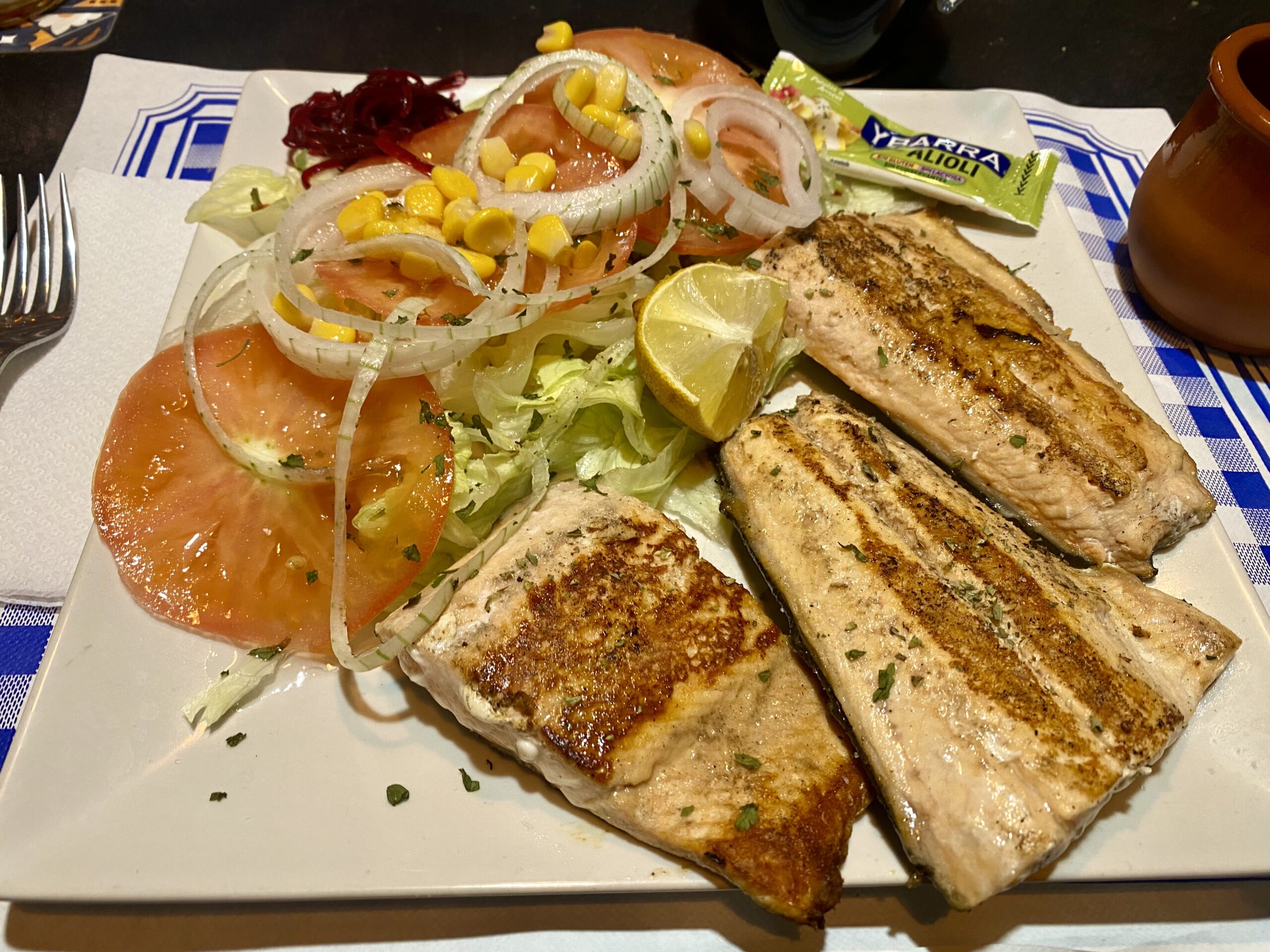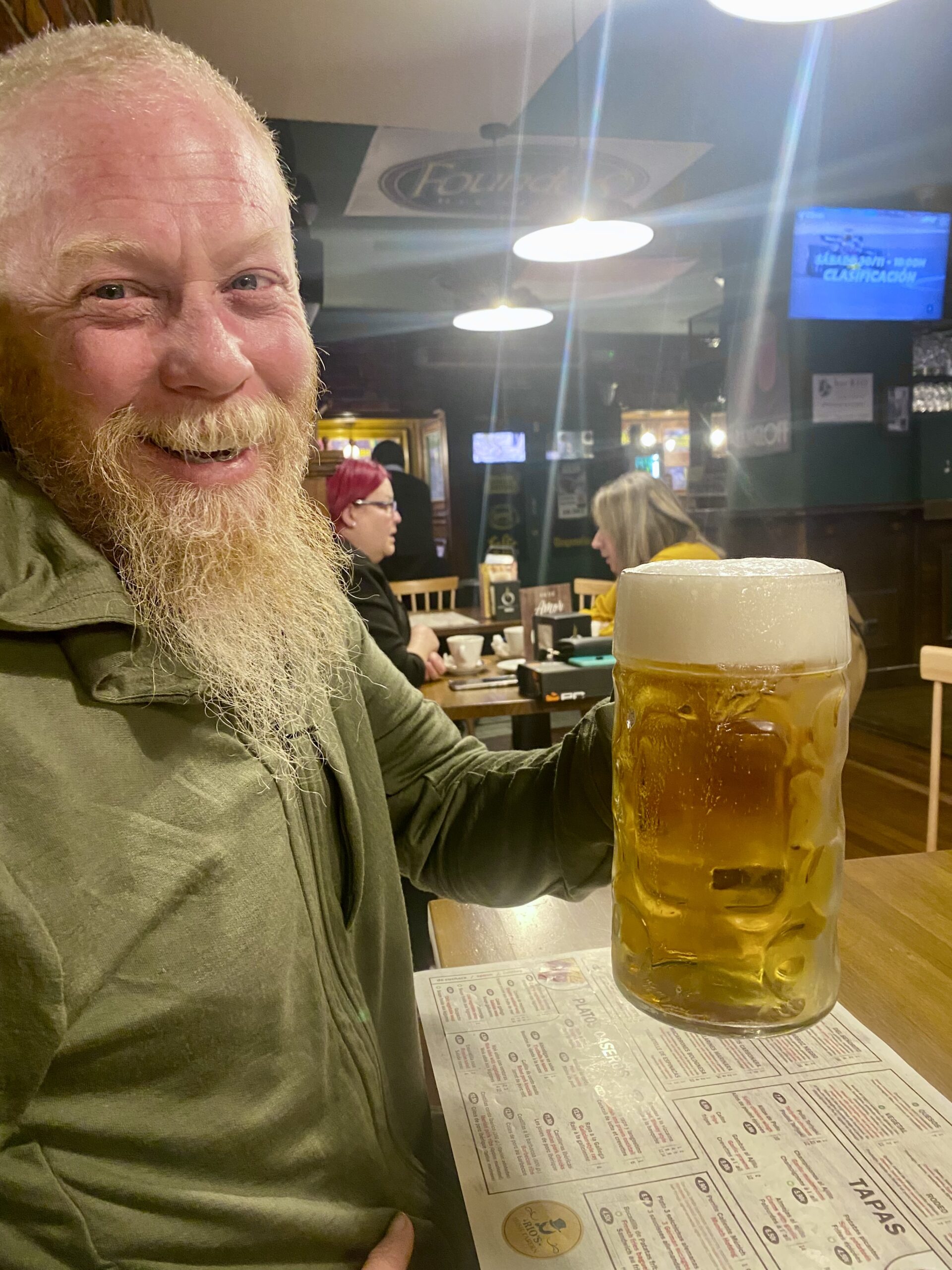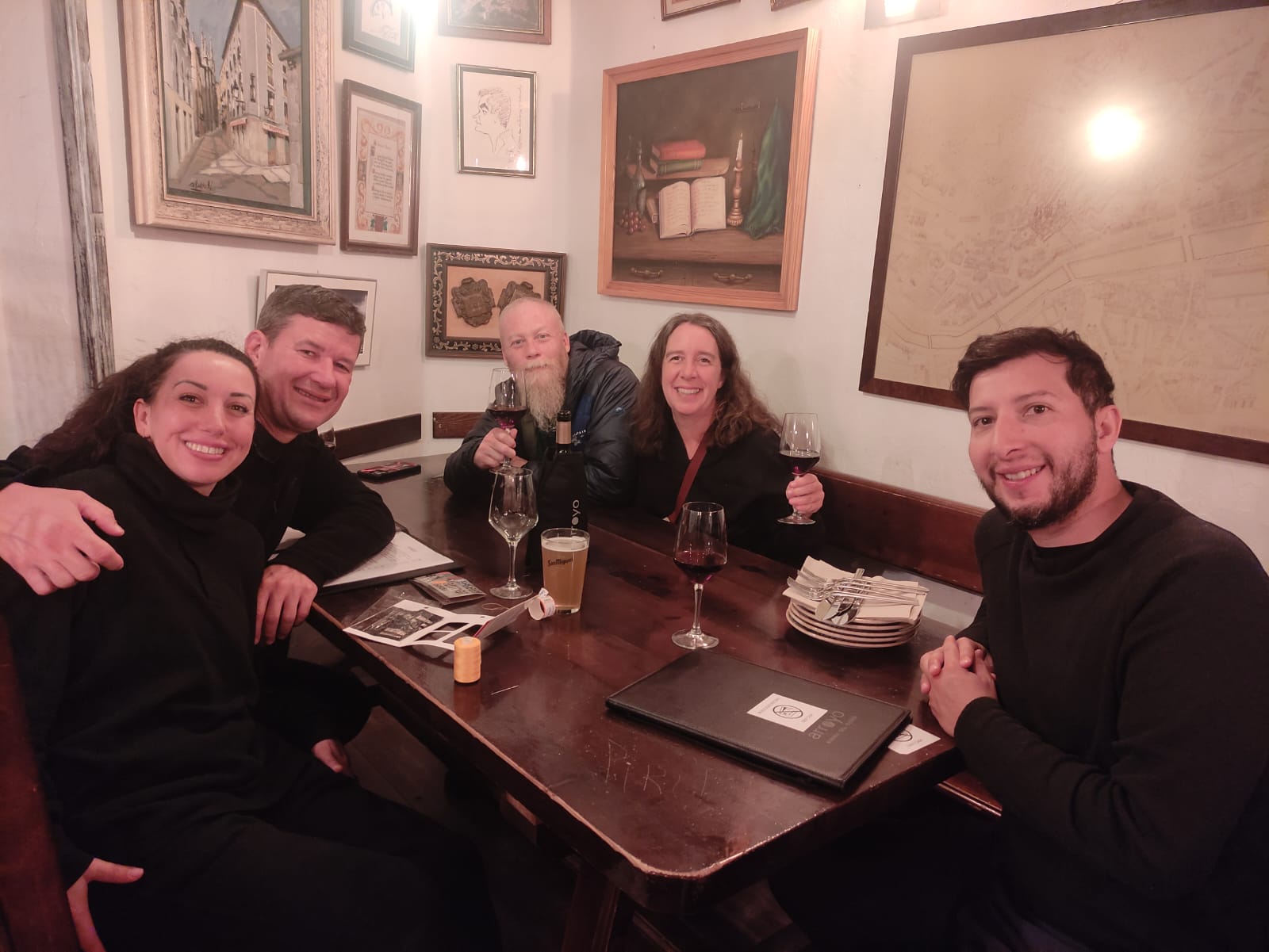 As we neared the edge of town, we decided to try one last bar, Taberna el Peregrino. The sign outside said no hot food until 1:30 but we decided to ask just in case. The host welcomed us in and made suggestions on what we should order. Once again, I felt gratitude for this man who decided to help us when we needed it the most. The arepa he made me was delicious. Aron had a burger. He even brought us candy. It was perfect.