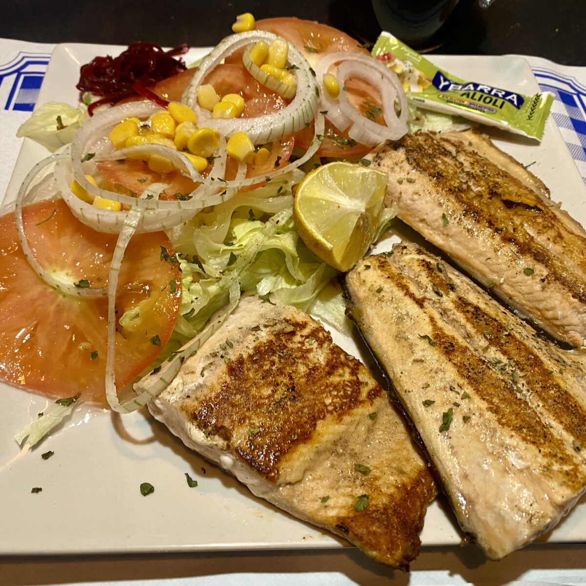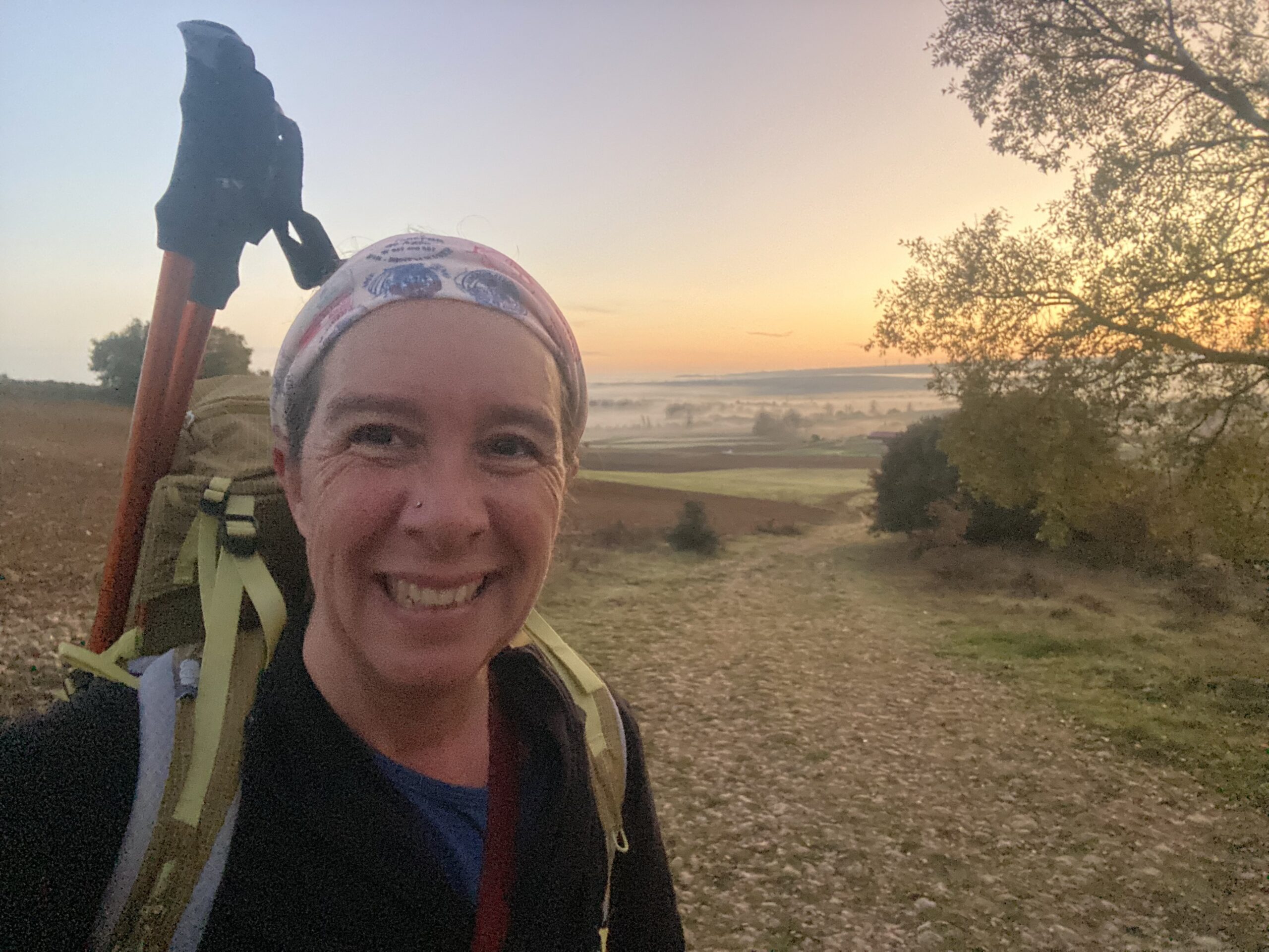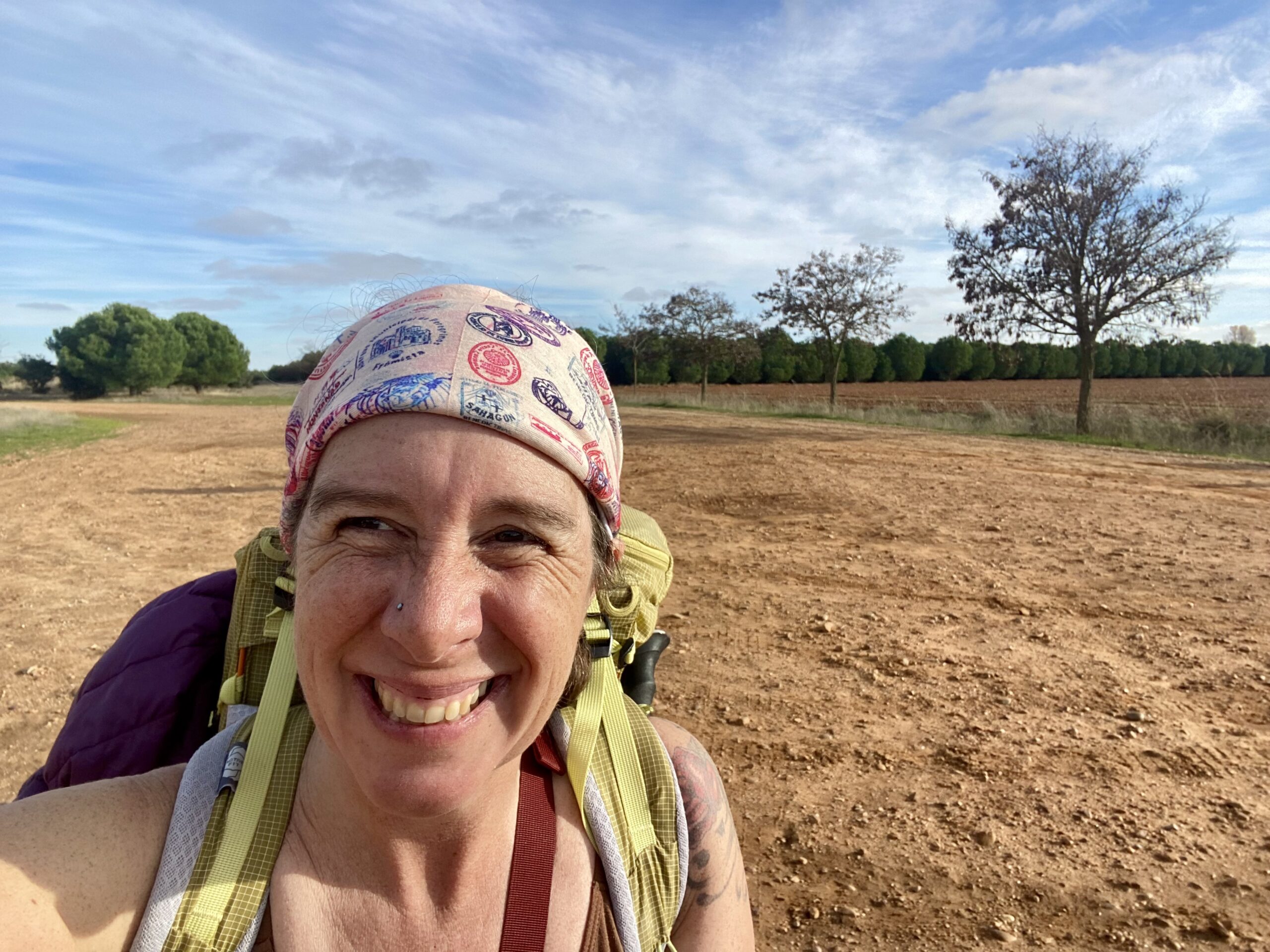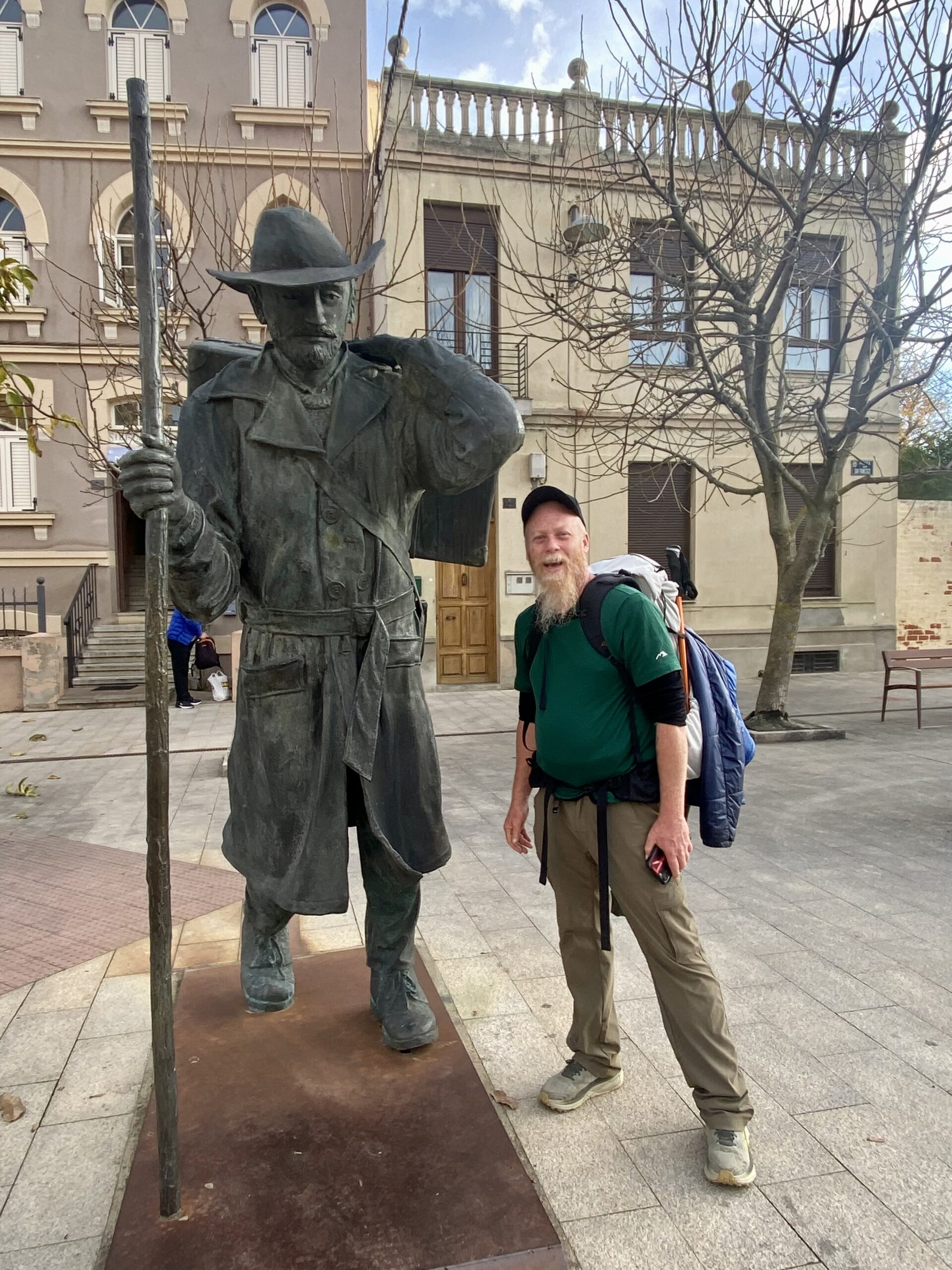 Dinner was salmon, flan, and vino tinto. We are going to bed early, so we can get up and do our longest day yet: 35km. Forecast is sunny, not windy and 50F. We got this.