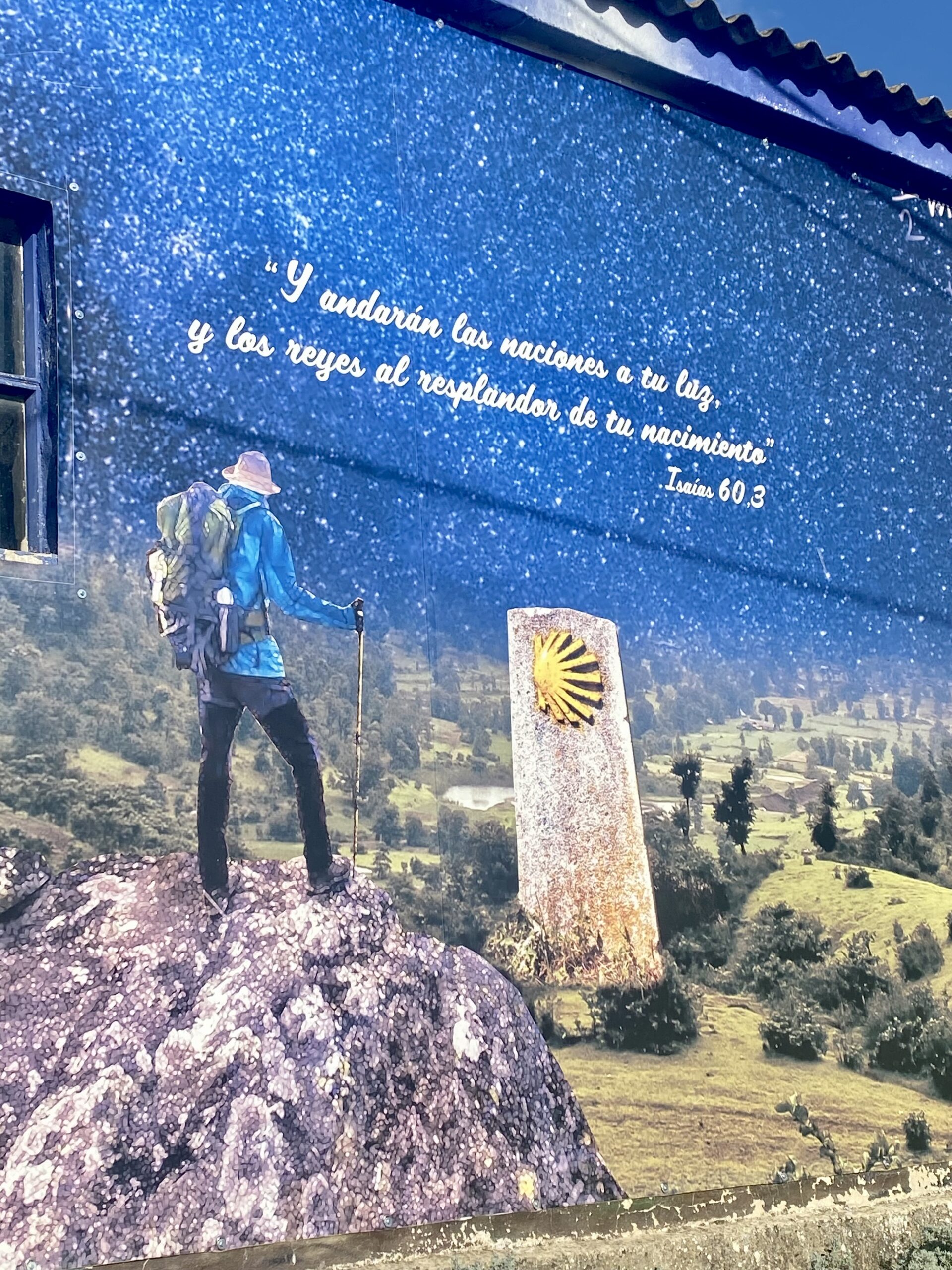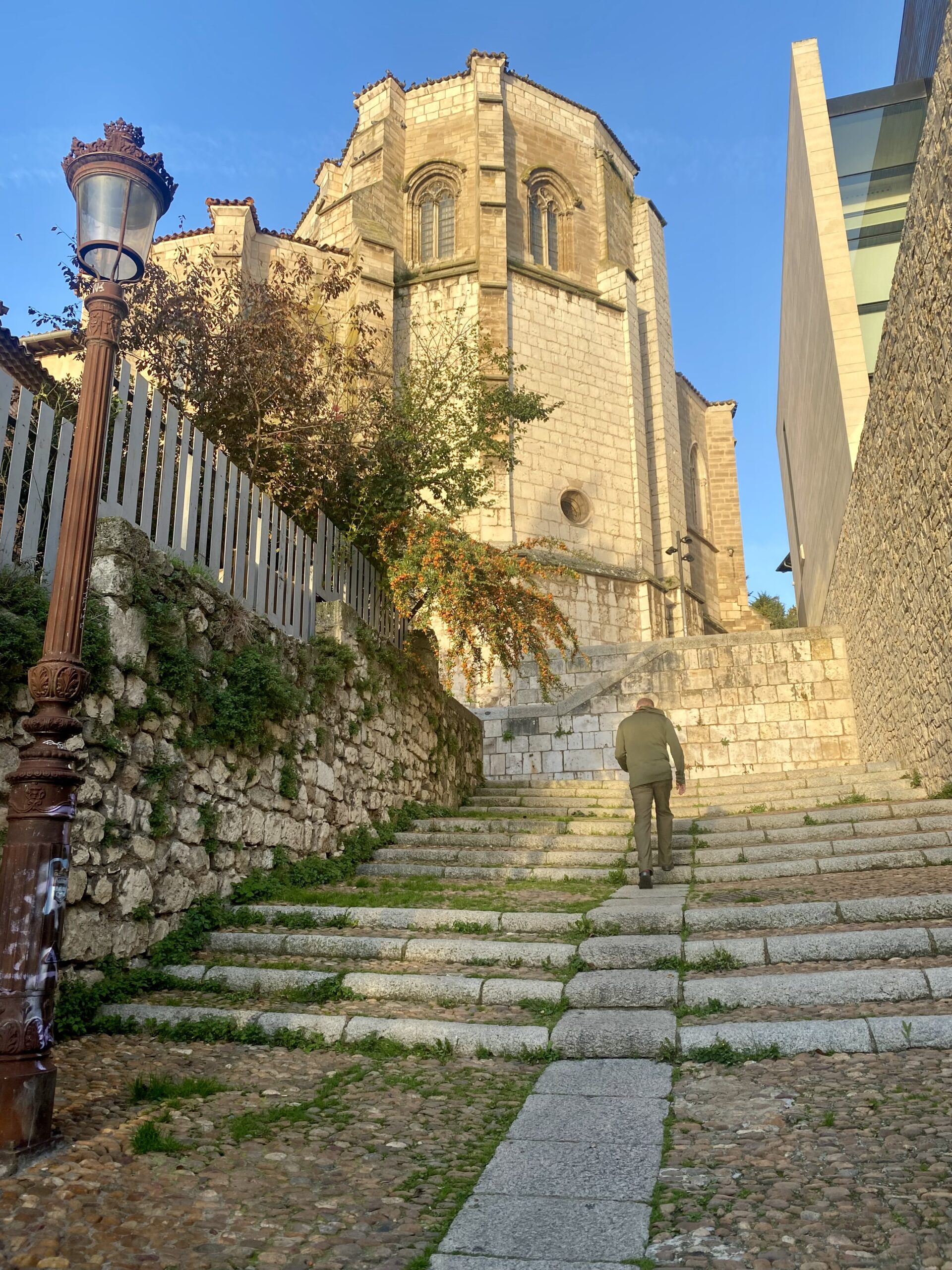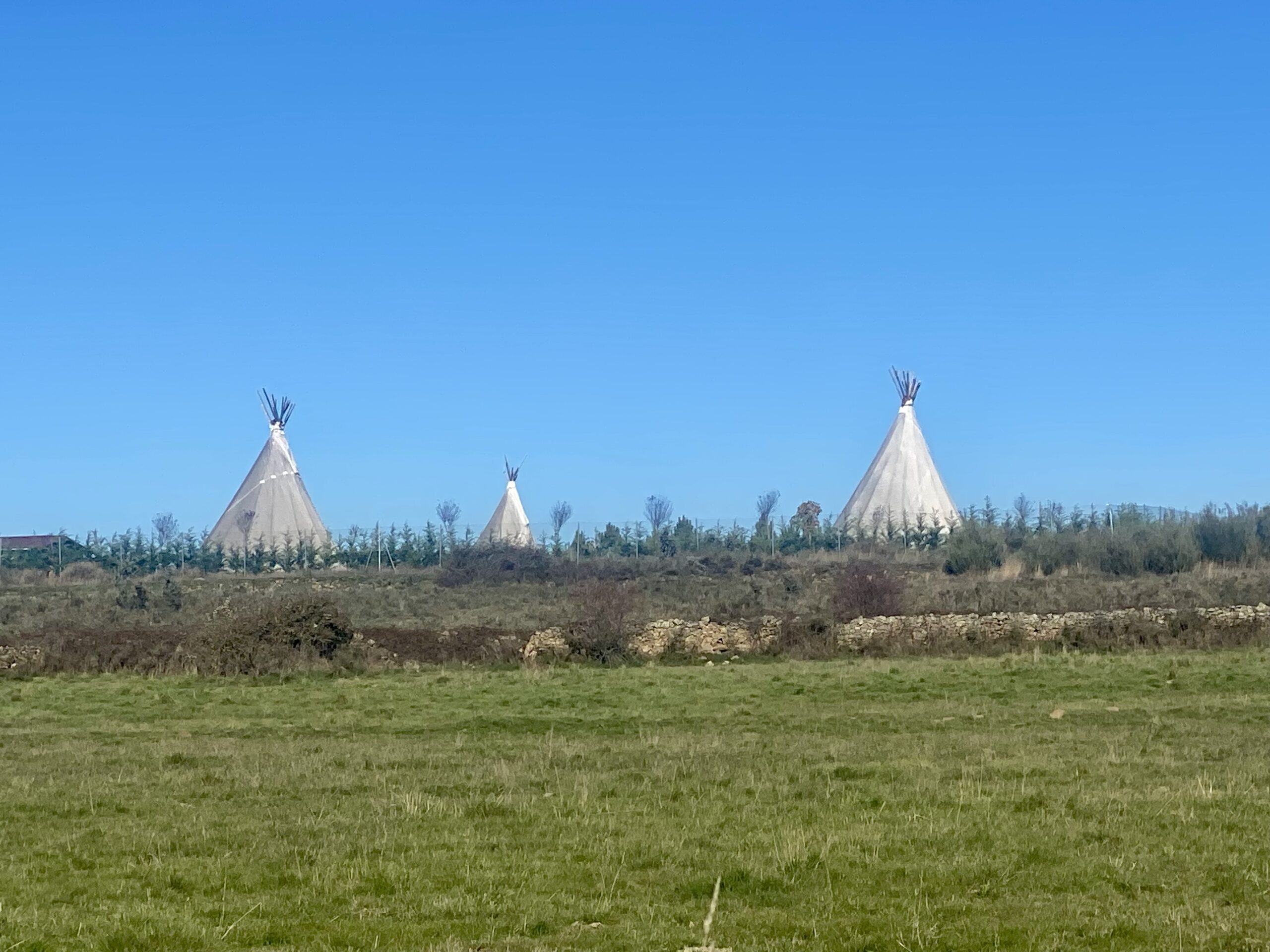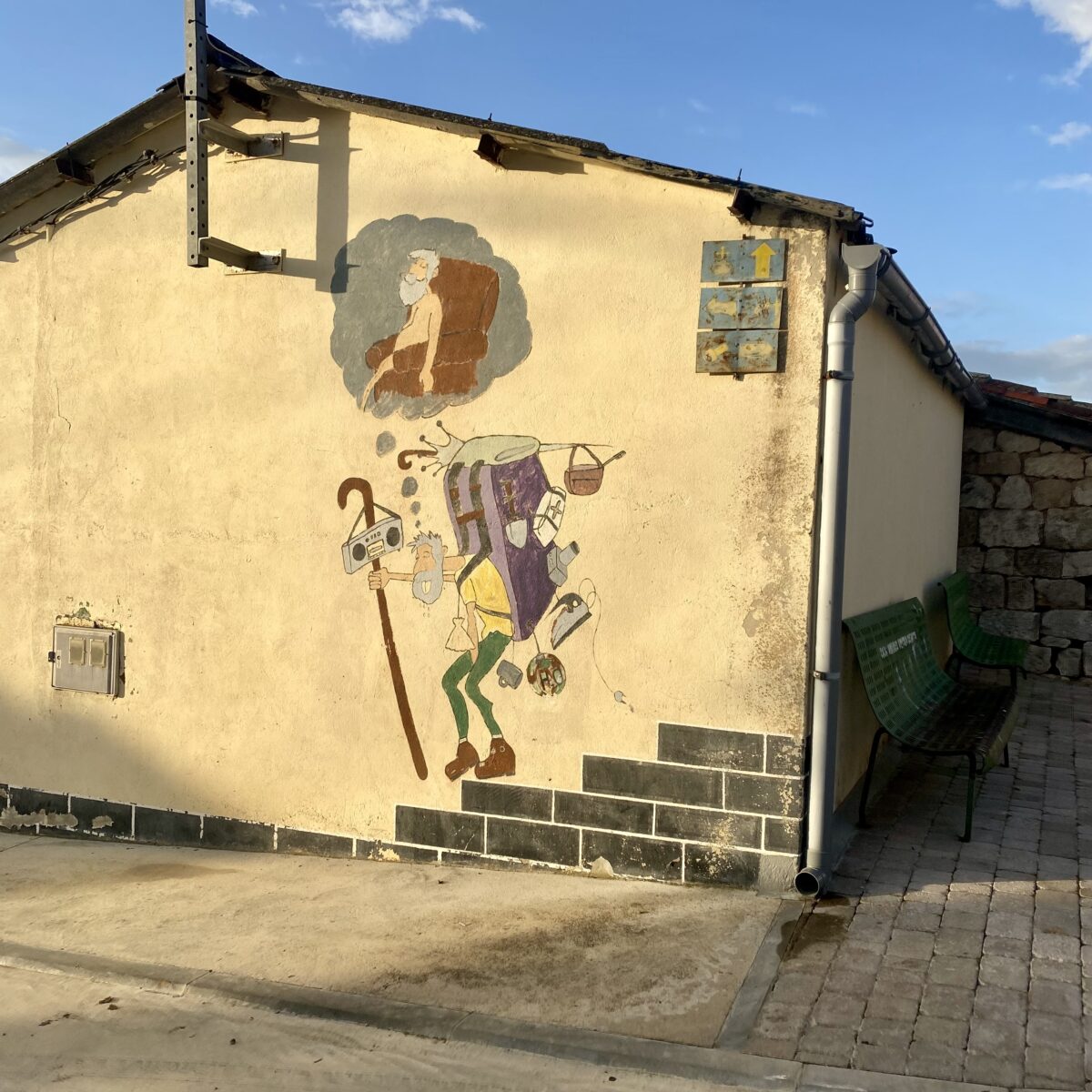 Another miraculously beautiful day in November. Today we climbed. Climbed past village churches, stone houses, wayside chapels, cats sitting in the sun meowing, an old pilgrim, a cluster of teepees, and a shuttered “cowboy bar.”
