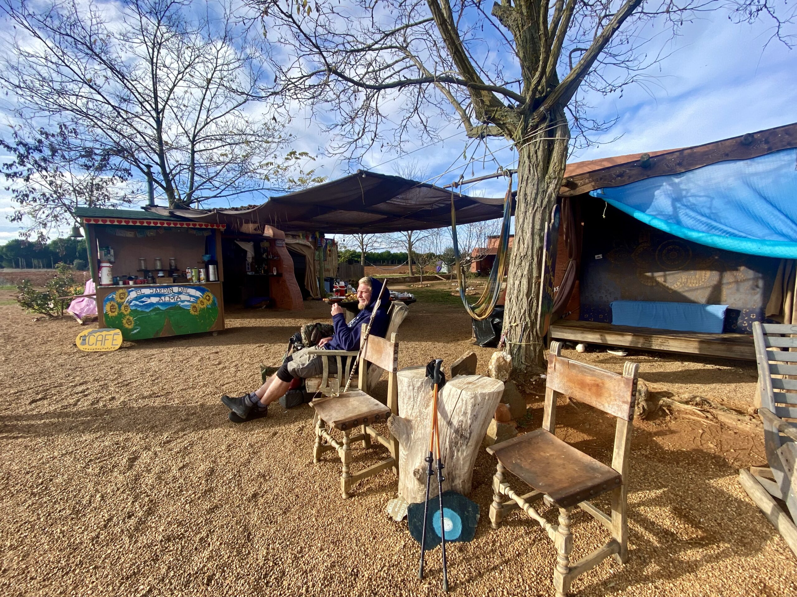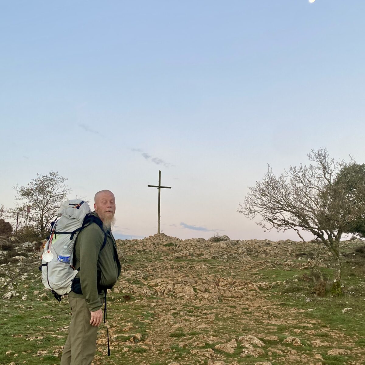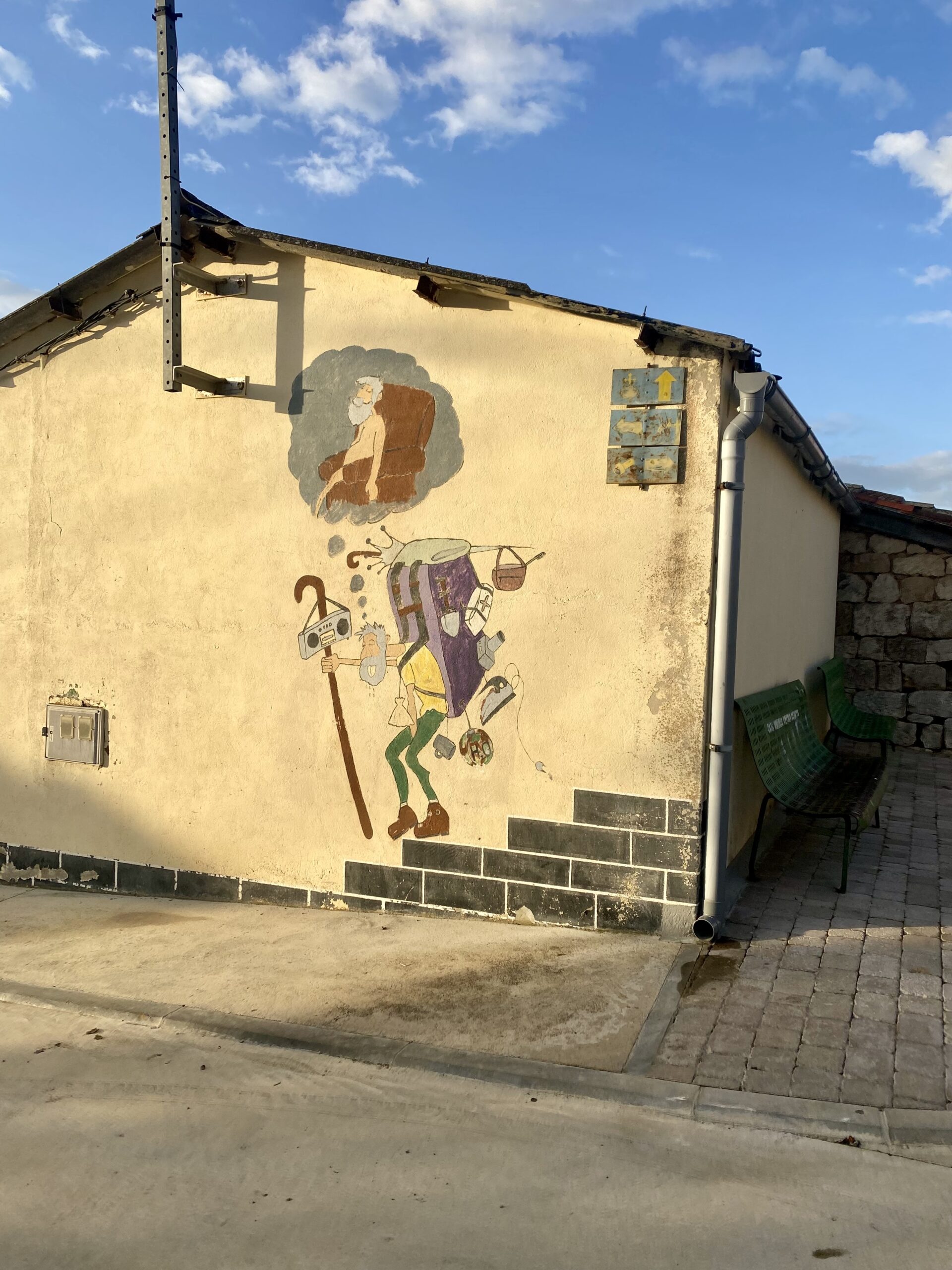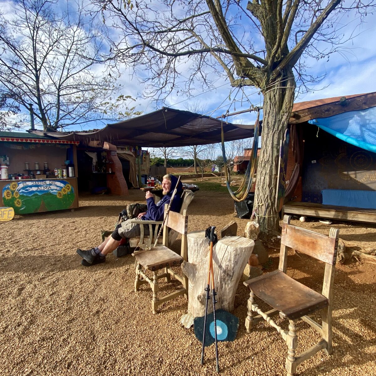 Another miraculously beautiful day in November. Today we climbed. Climbed past village churches, stone houses, wayside chapels, cats sitting in the sun meowing, an old pilgrim, a cluster of teepees, and a shuttered “cowboy bar.”