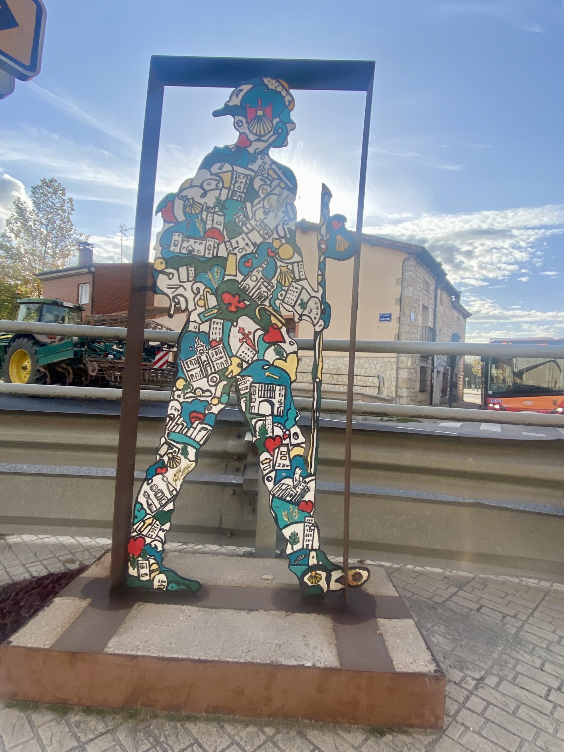 Today was the first day we thought about taking the bus. Not only were we still exhausted, but this was the least pleasant part of the walk. The Camino goes right along the busy highway as it leaves the city. There was so much exhaust, too much traffic, and nothing enjoyable to look at. We contemplated if it would be cheating if we just took a bus through the industrial parts of Leon. Many people do this, we reasoned. But in the end, we just kept walking. It has now been 3 weeks since we have been inside a motor vehicle. Three weeks since we have traveled by something other than our feet.