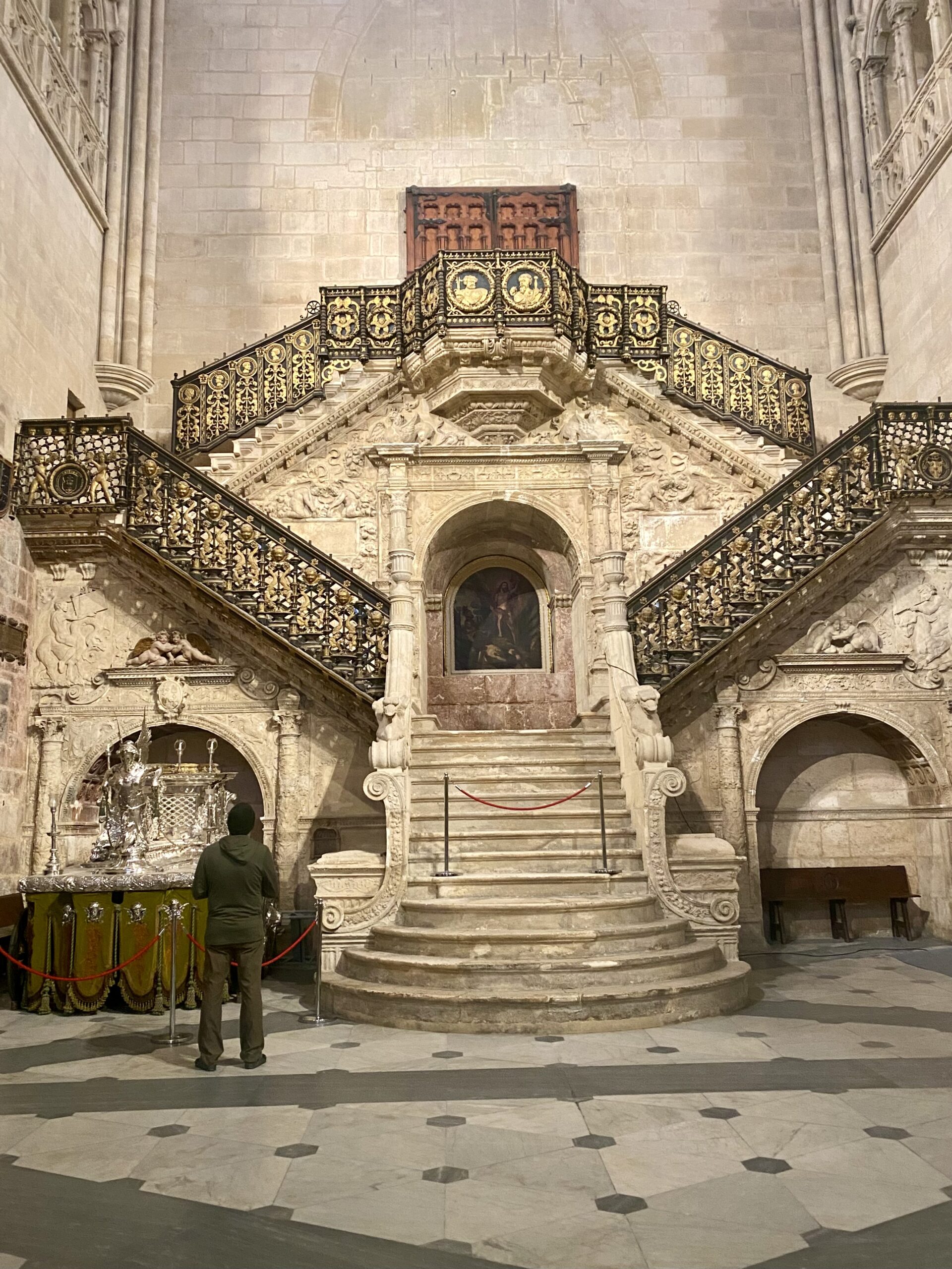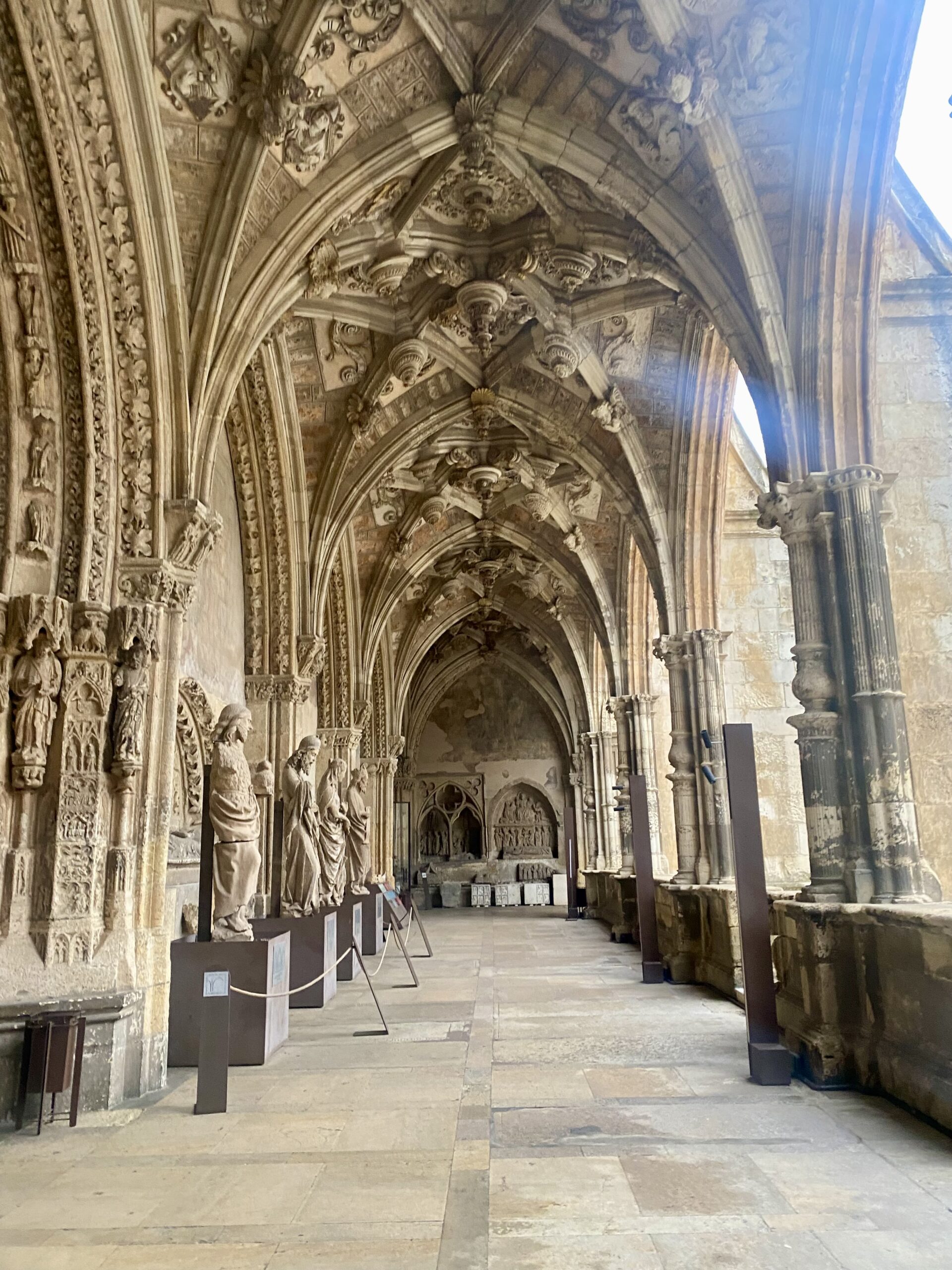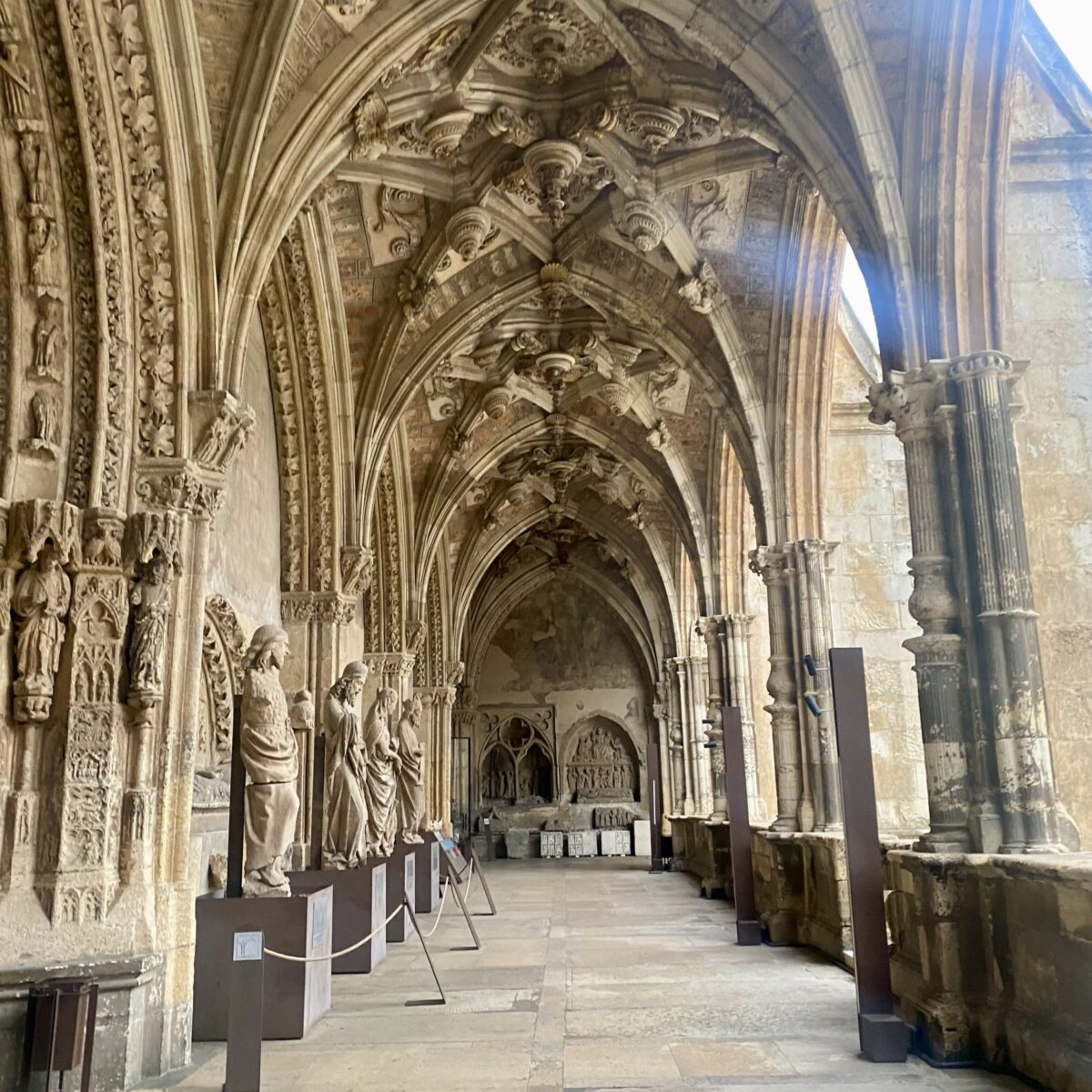Burgos is a lively town of 155,000 citizens. It feels strange to be here after all the rural villages. Suddenly we are surrounded by people and amenities. We took a variant into the city, known as the river route, and it was quite pleasant. Tree-lined paths through parks full of folks out enjoying the sunshine. Our hotel is right near the Cathedral, which truly is a gem with magnificent gothic towers, and a plethora of religious art and artifacts within.