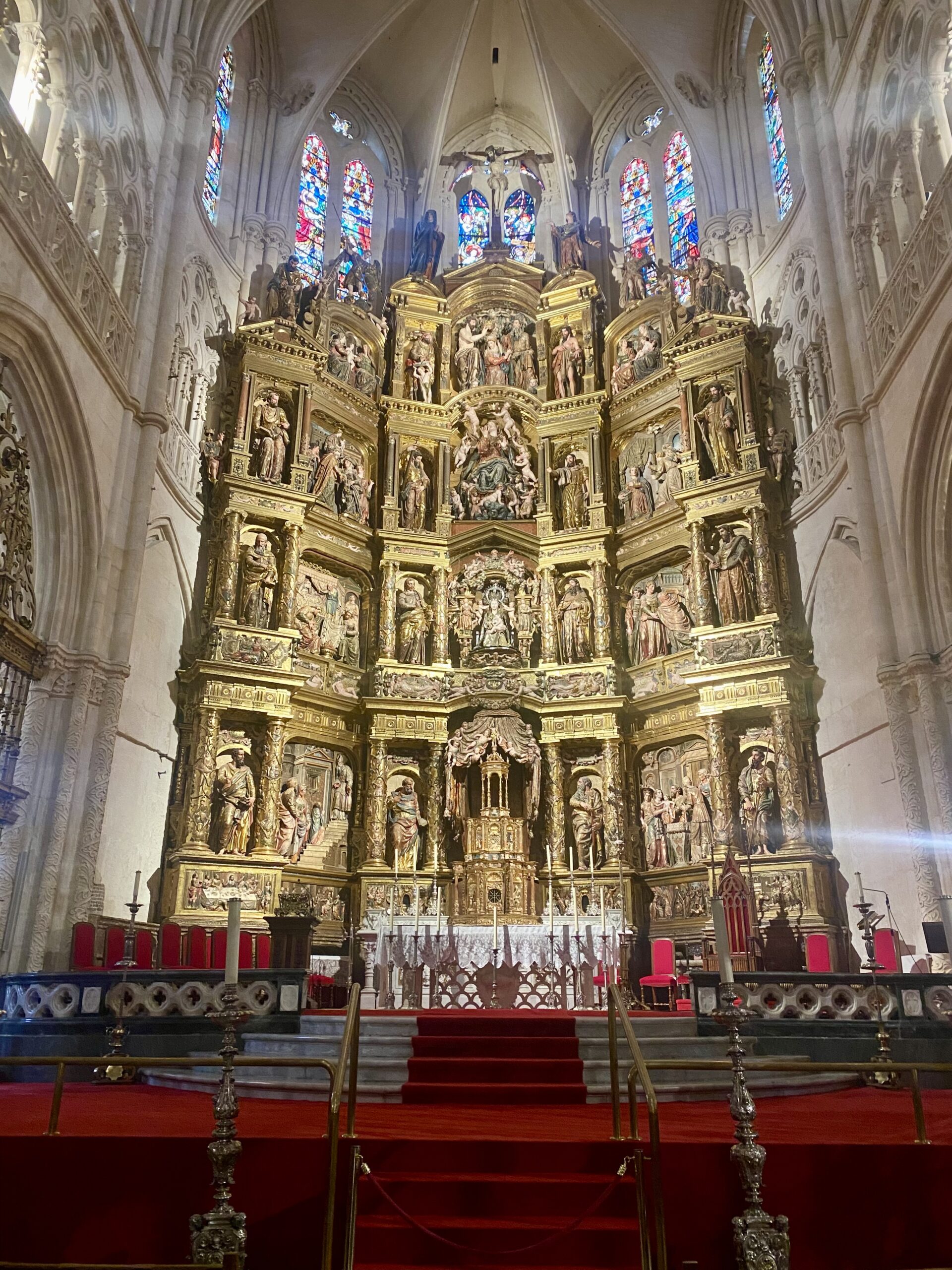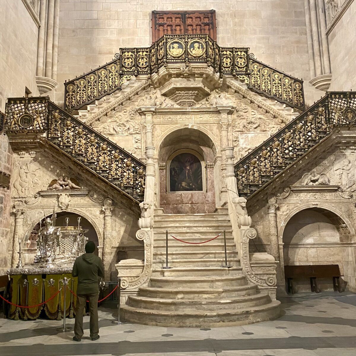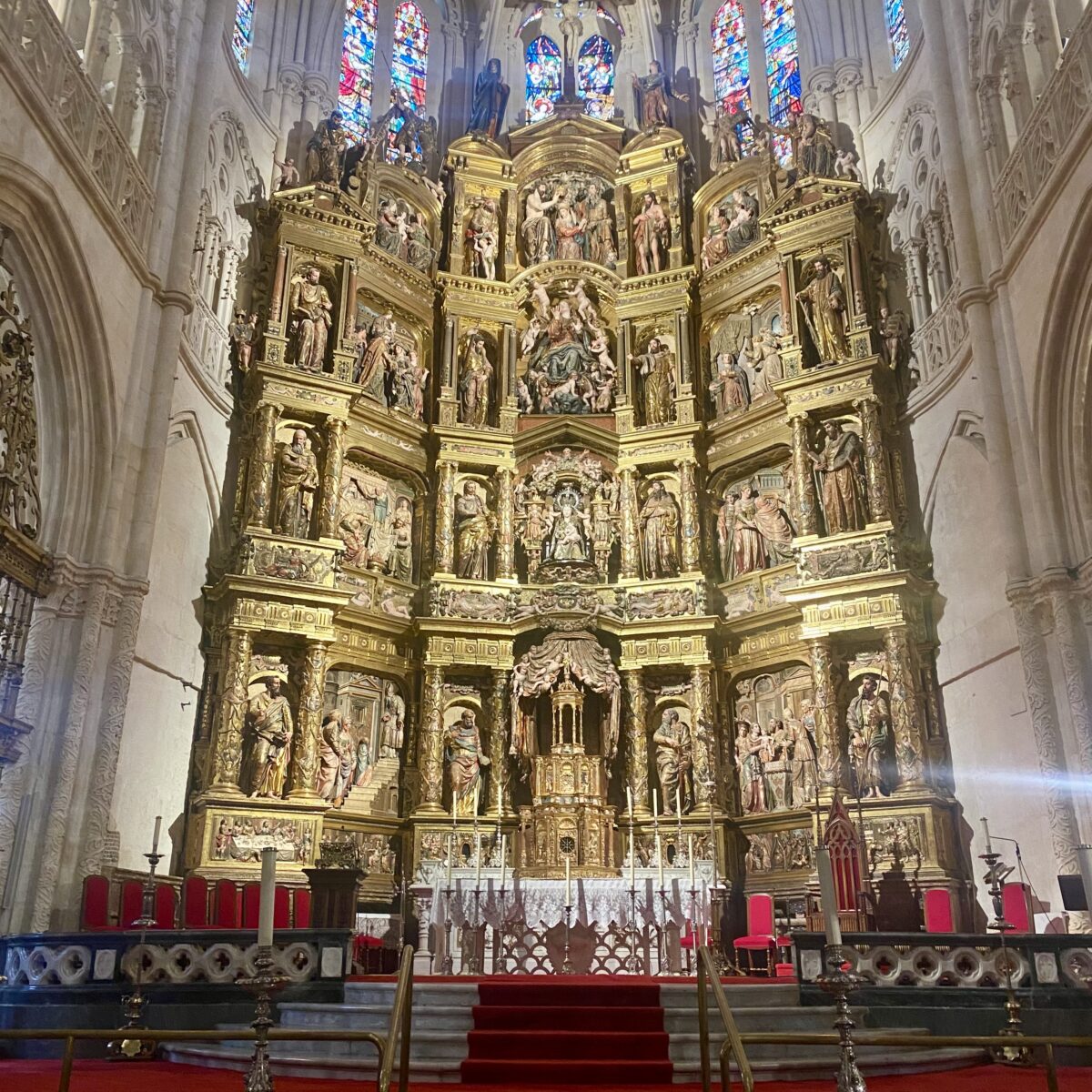 Burgos is a lively town of 155,000 citizens. It feels strange to be here after all the rural villages. Suddenly we are surrounded by people and amenities. We took a variant into the city, known as the river route, and it was quite pleasant. Tree-lined paths through parks full of folks out enjoying the sunshine. Our hotel is right near the Cathedral, which truly is a gem with magnificent gothic towers, and a plethora of religious art and artifacts within.