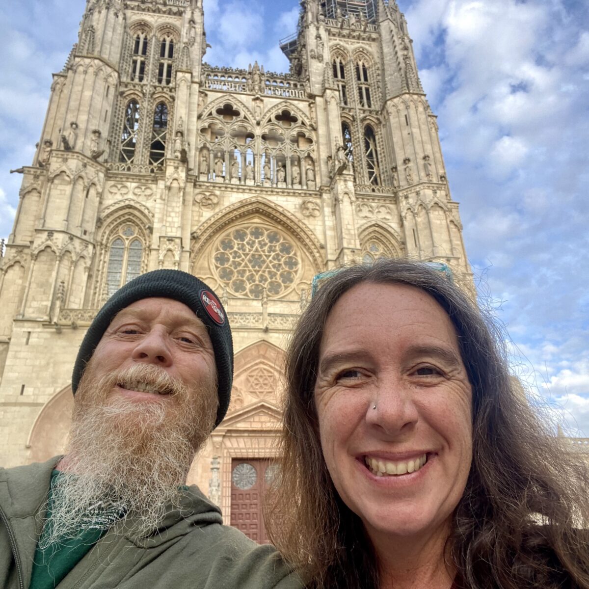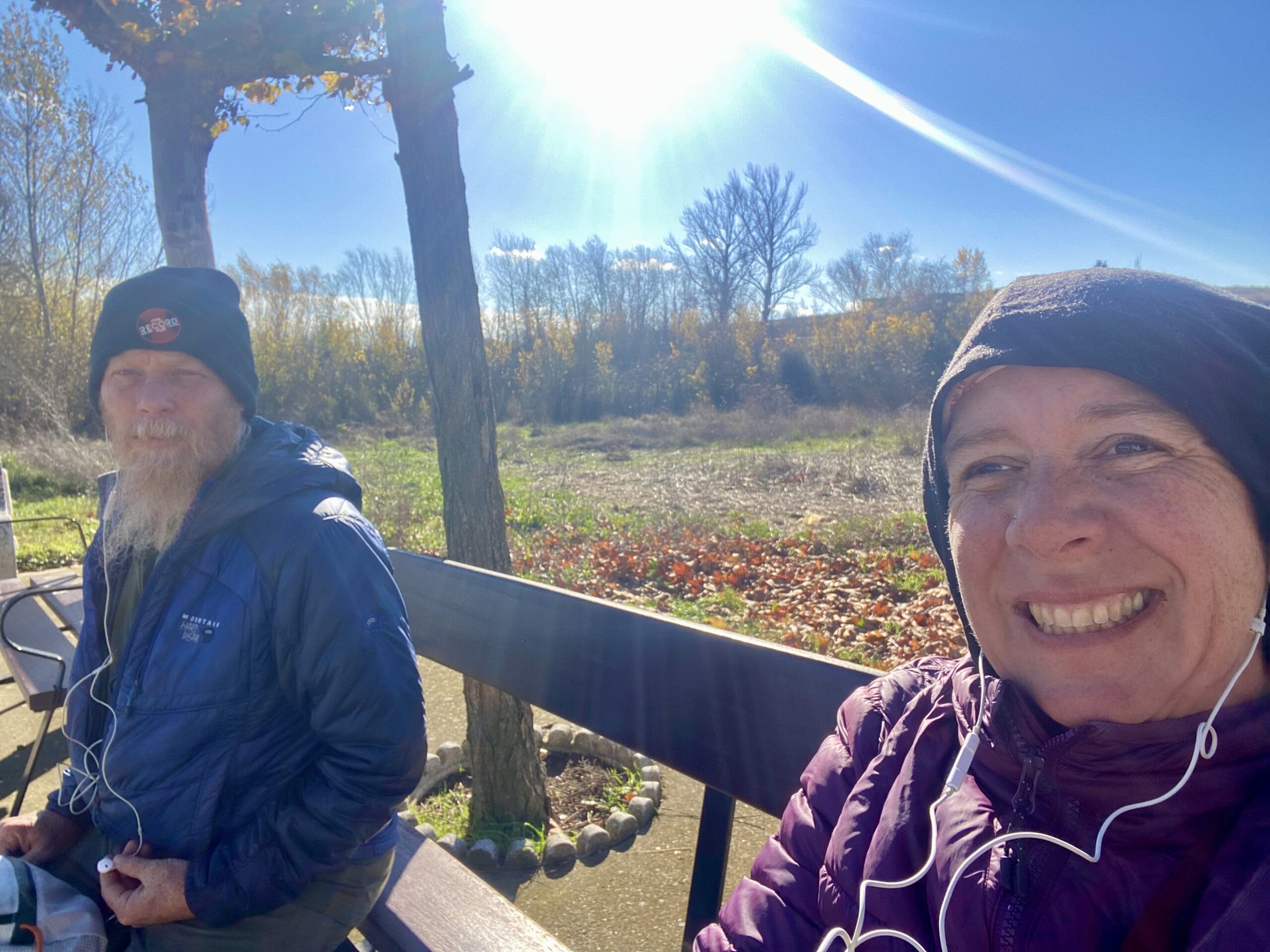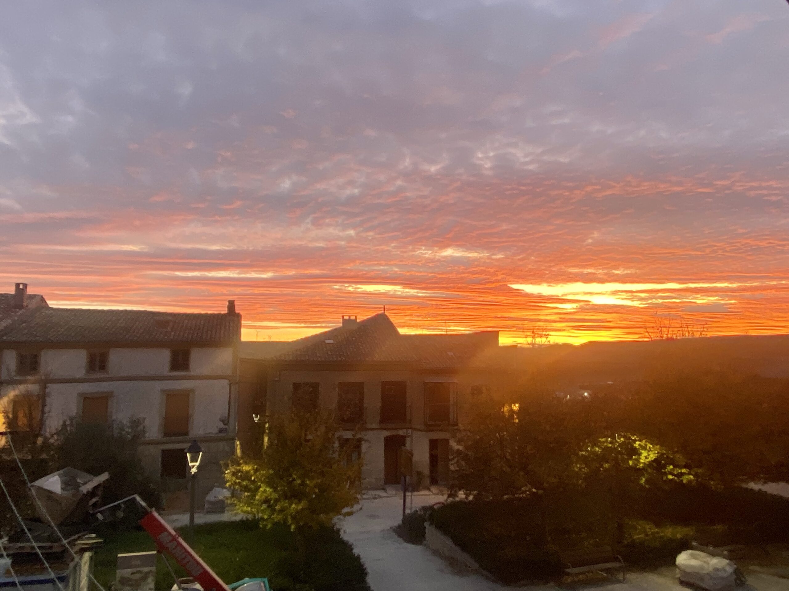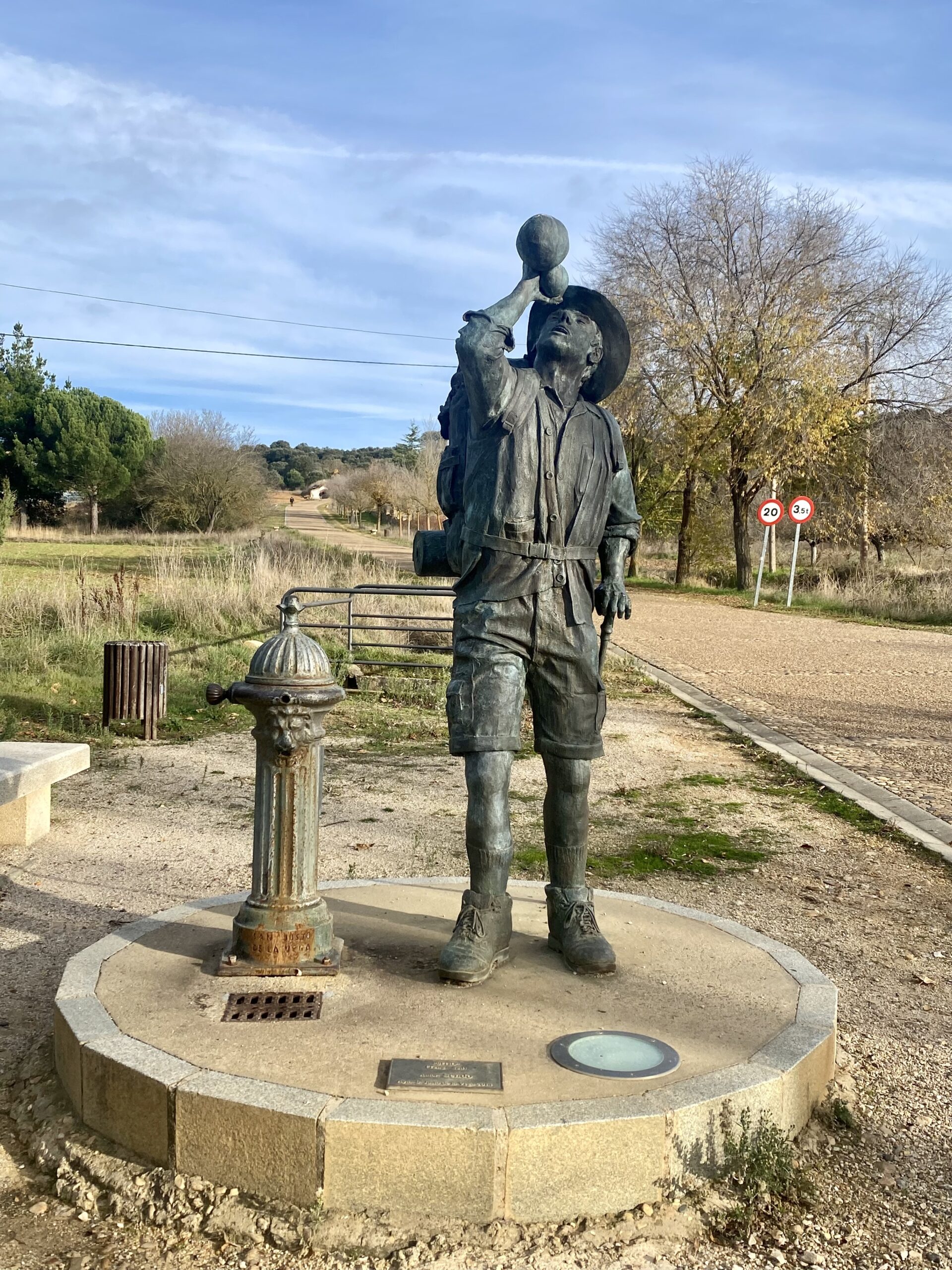 The landscape is amazing but it doesn’t offer much of a wind break. It’s interesting to wander through these small towns because everything is built up for the Camino and since this is the off-season everything is closed. We took our breaks wherever we could out of the wind. Behind a cathedral, in a small park, on the backside of a wall. We saw very few people. I keep thinking how peaceful it is. We only have to interact with people if we want to. A group of guys from Leon, France were celebrating Beaujolais Nuevo, or wine harvest. We offered to share some of our inferior Spanish wine with them, lol.