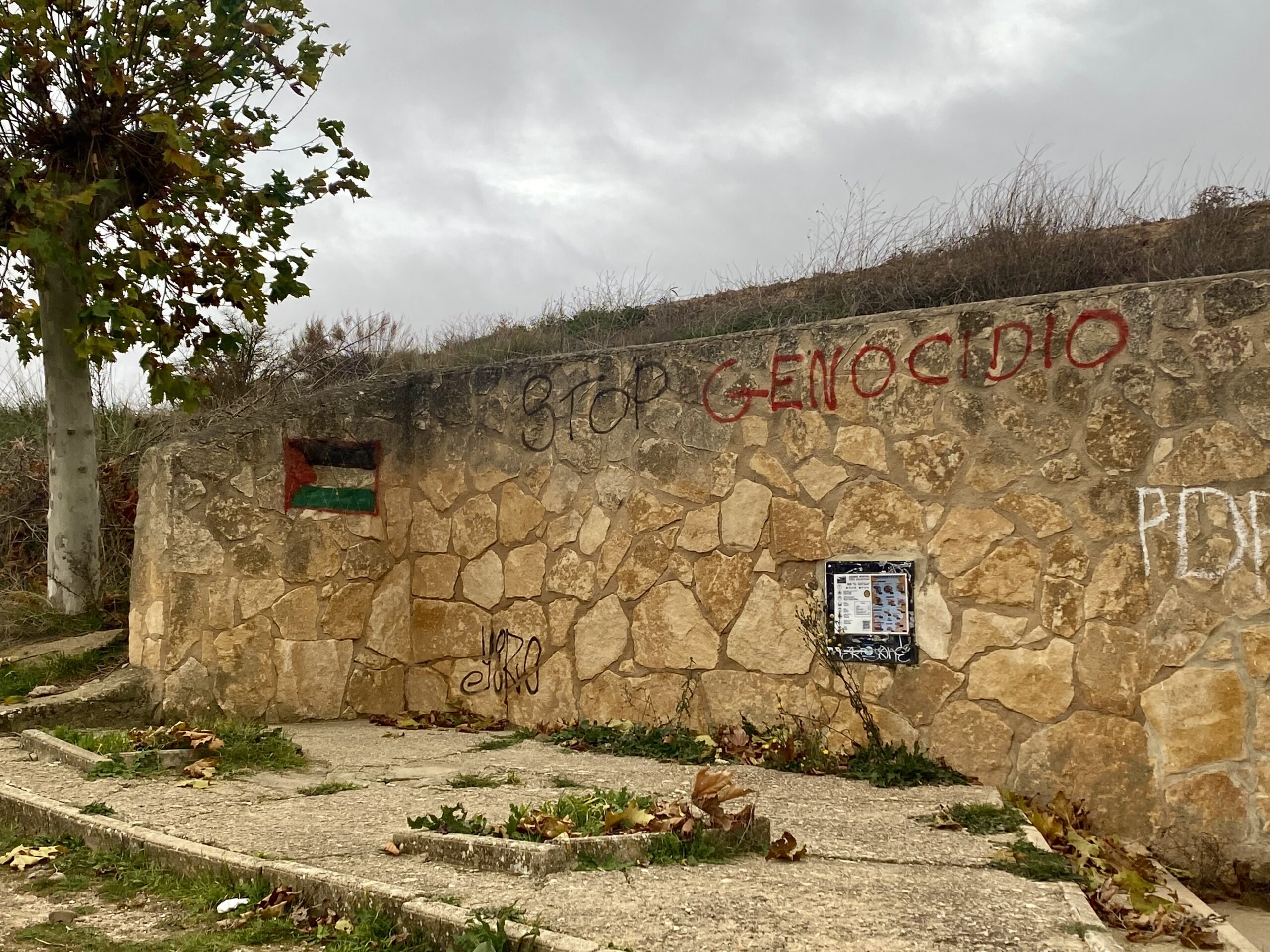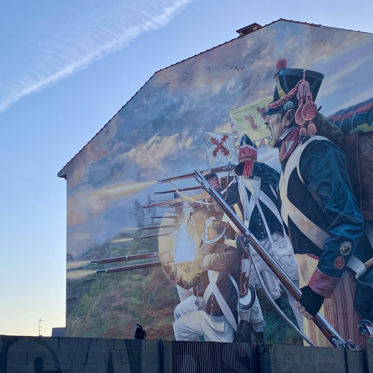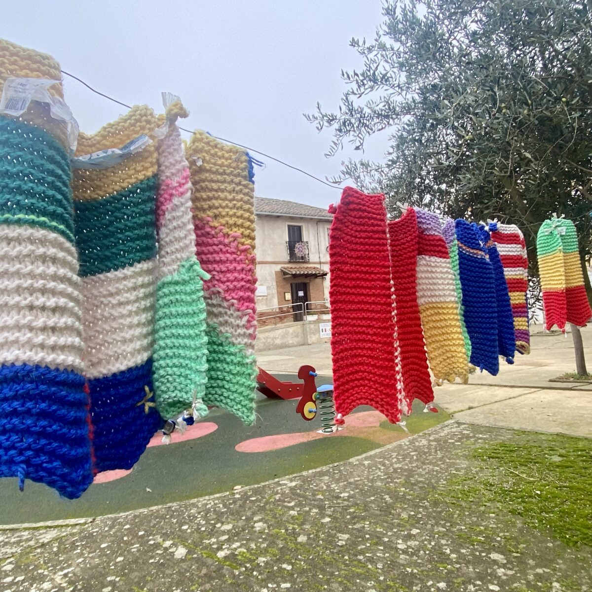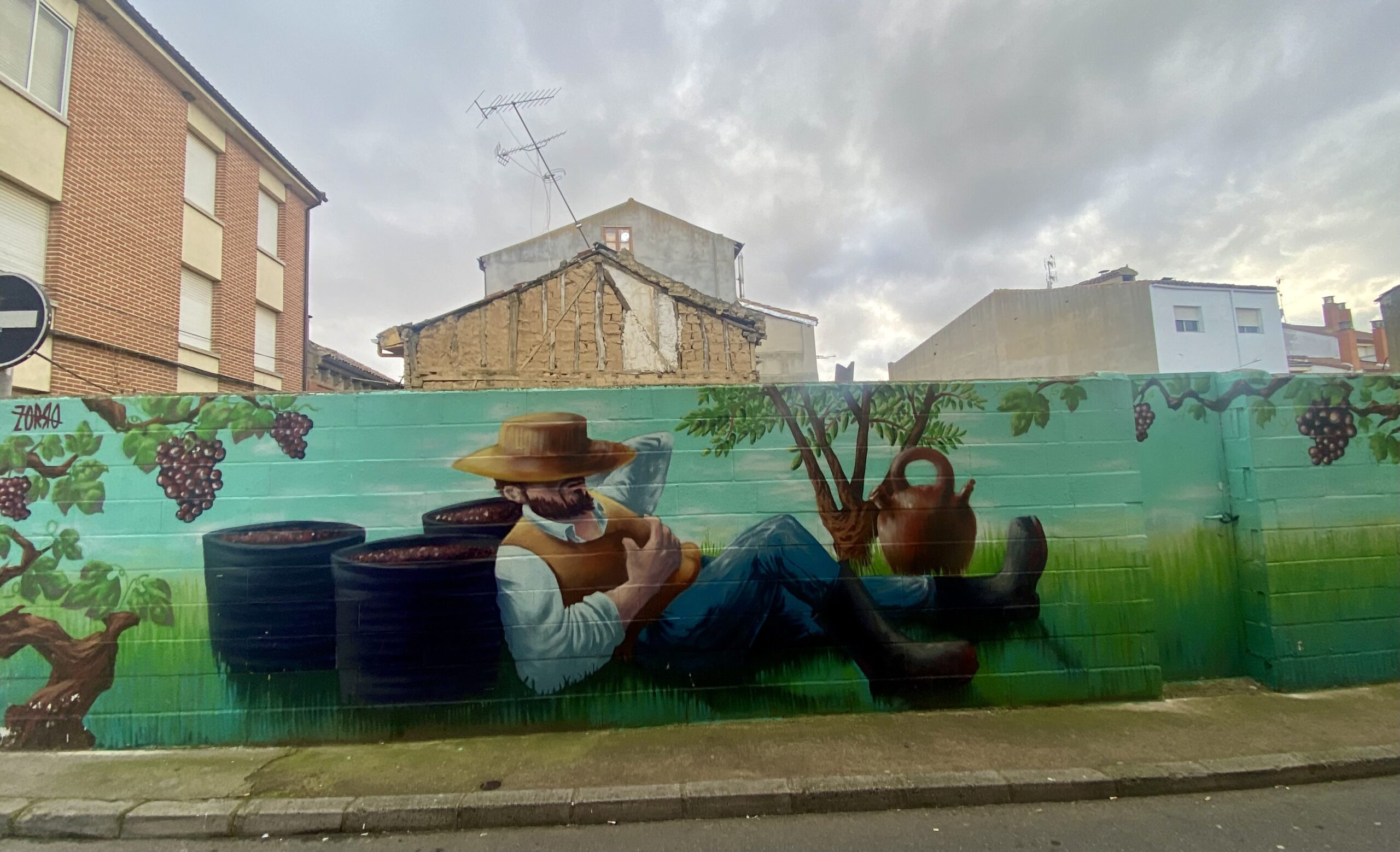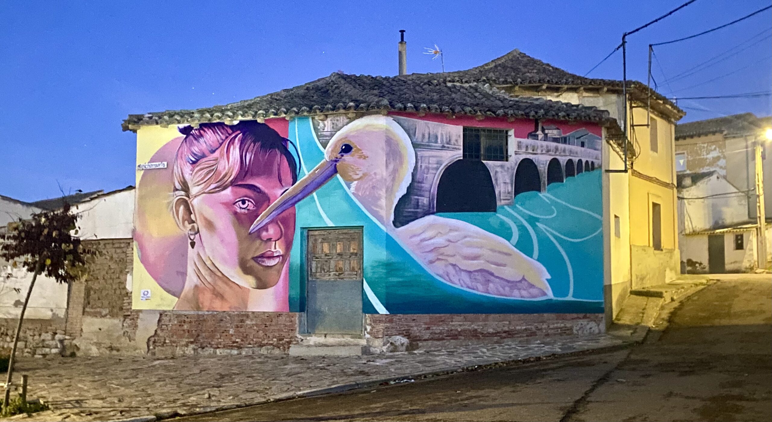Afterwards we celebrated with a delicious seafood lunch in the Plaza Mayor (only €27 for pasta with clams & shrimp, squid rice pilaf, bread, dessert and all beverages for 2 people). We wandered the streets of Sahagun admiring the old churches and the colorful street art. At last we decided it was time to walk our final 5km of the day to the next town, Calzada del Coto. There was a very highly rated donativo albergue there (by donation). We ran into Tatiana and Felipe on our way out of town, who were climbing the hill to get their own halfway certificates.