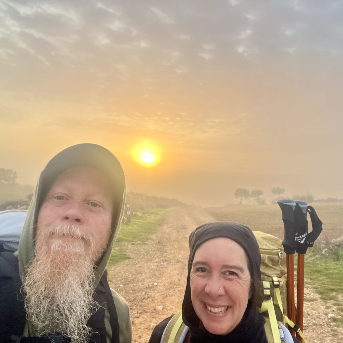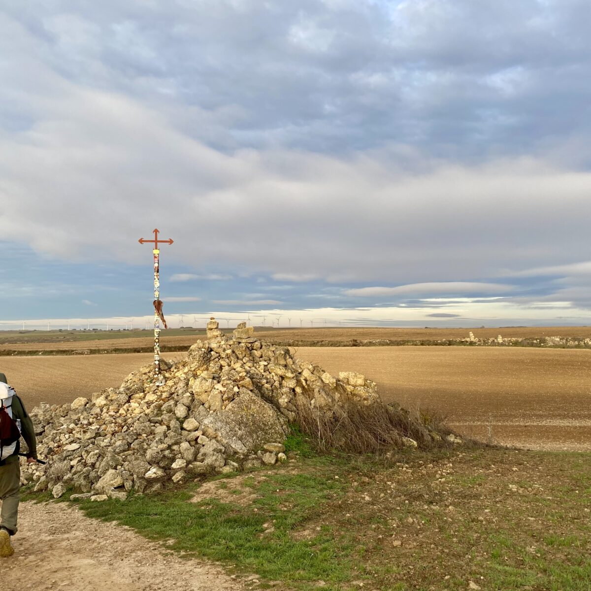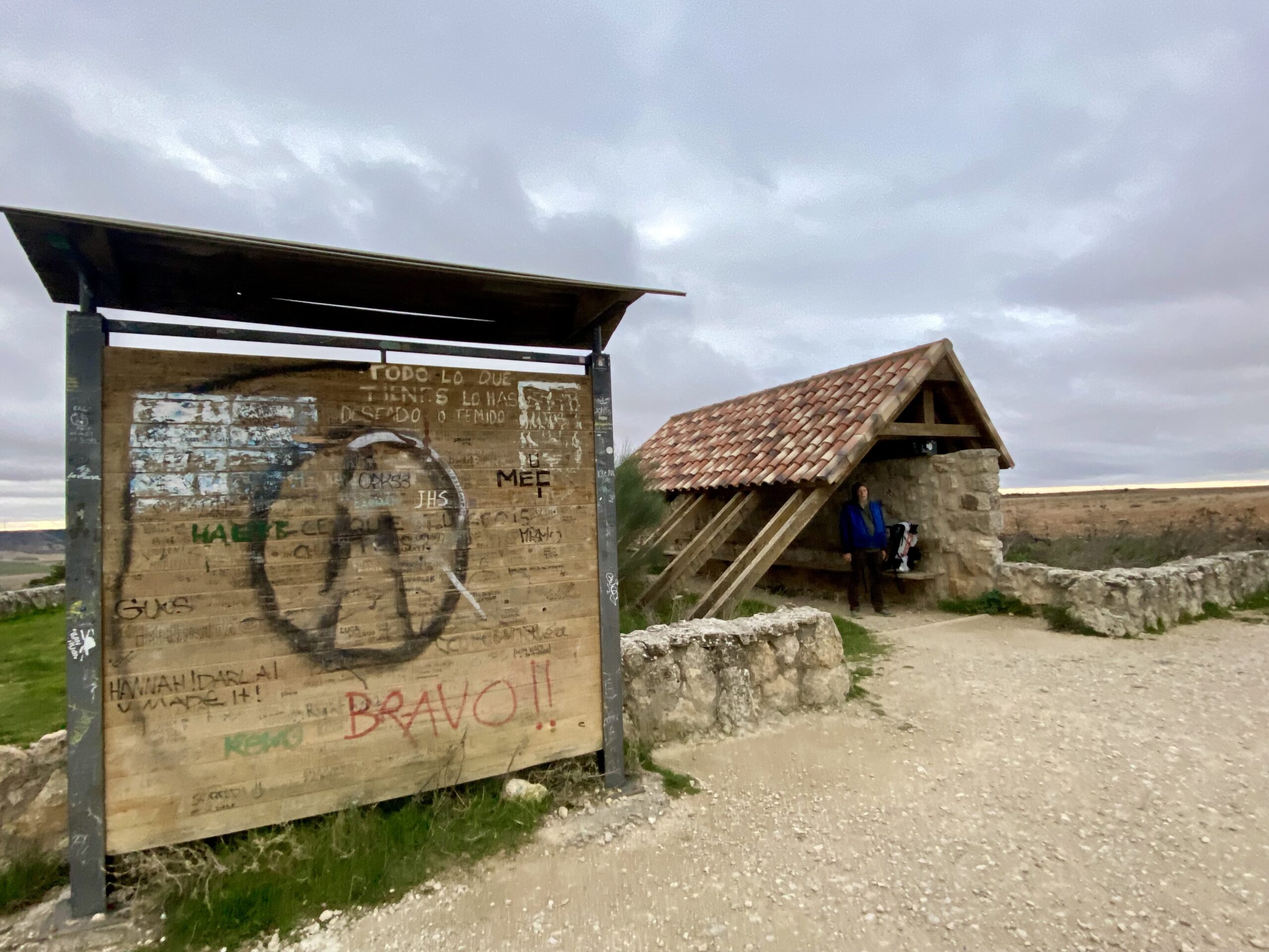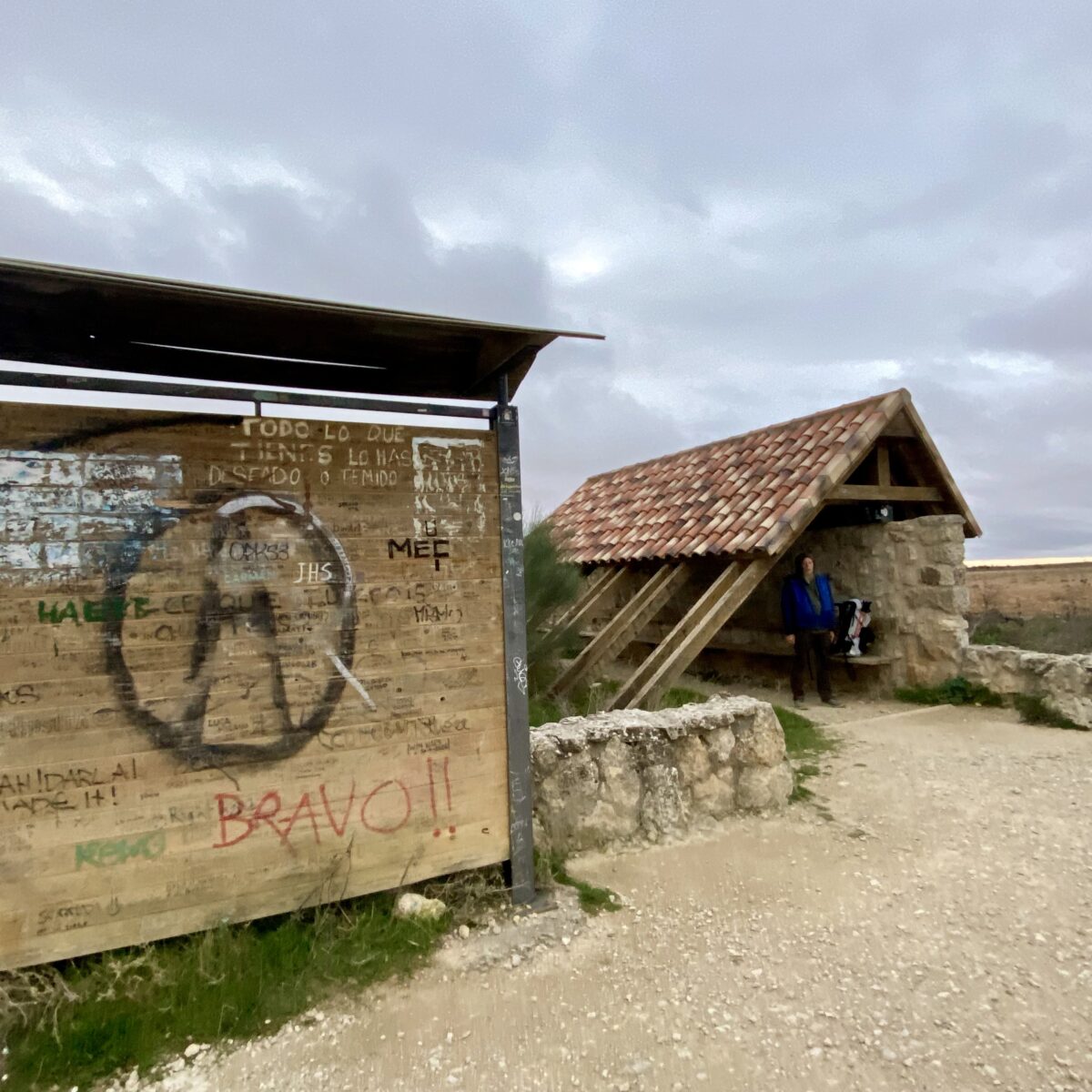 They have a saying on the Camino. “The Camino always provides.” This morning we were still grumpy from our uncomfortable stay at the municipal albergue in Hornillos. Especially since we could not access our food (locked in the fridge!) for breakfast. We had two pieces of fruit and a few muesli bars. The next town was over 10km away. We could only hope something would be open for breakfast in the next town (nothing in Hornillos). Meanwhile we felt like we were having the starving pilgrim experience… okay not quite, but we definitely did not have enough sustenance to walk the Meseta this morning. It was a cold, and windy climb (but beautiful).