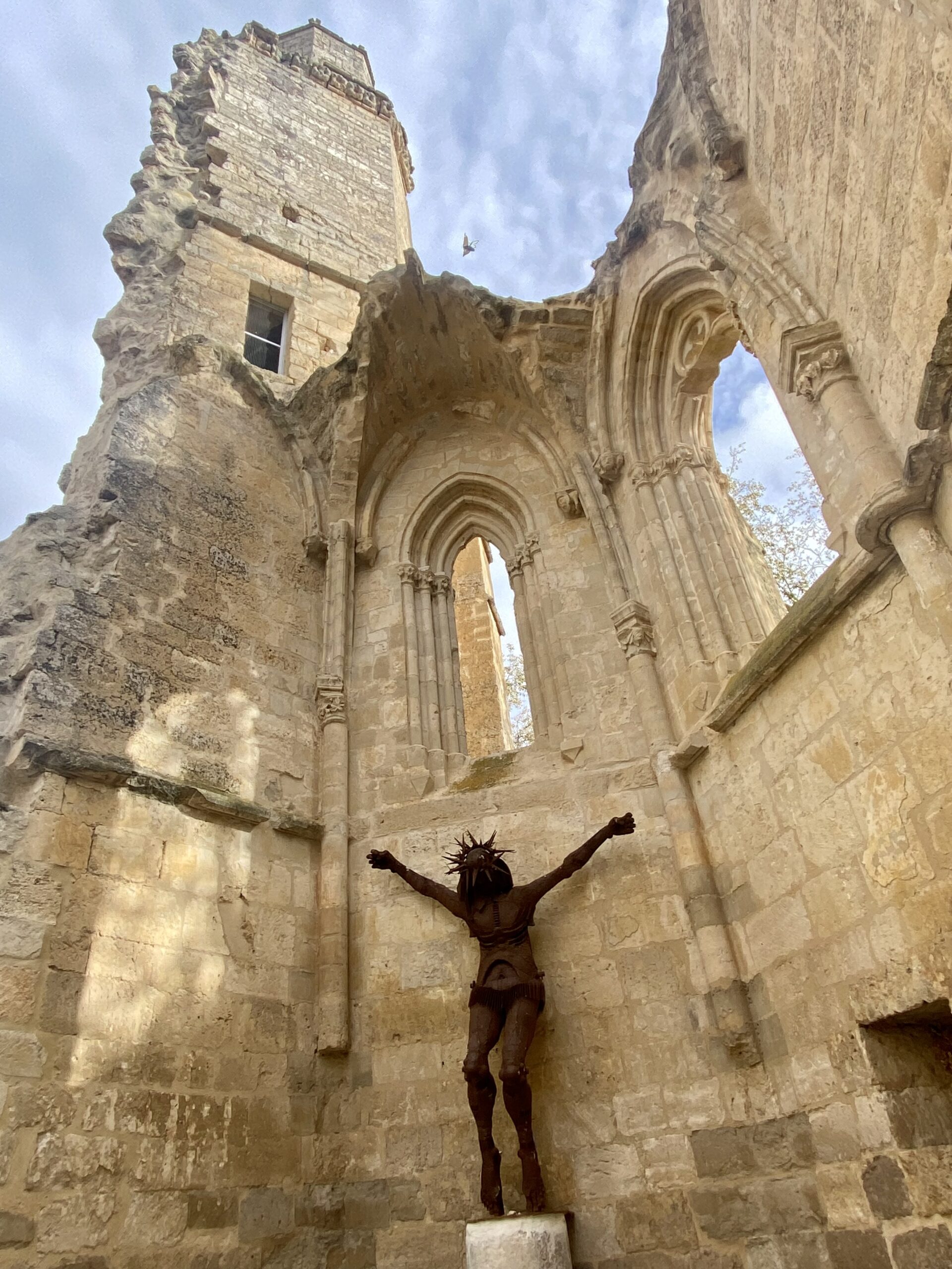 We continued to walk, in better spirits, another 10km to Castrojeriz. Again, only one albergue was open, but it was 1000 times better than Hornillos. Castrojeriz also has a grocery store, a few good restaurants, and the Camino Interpretation Center. The Center featured a light show on the ceiling of the Cathedral, and compared the pilgrim experience of the past (the middle ages) to the pilgrim experience of today.