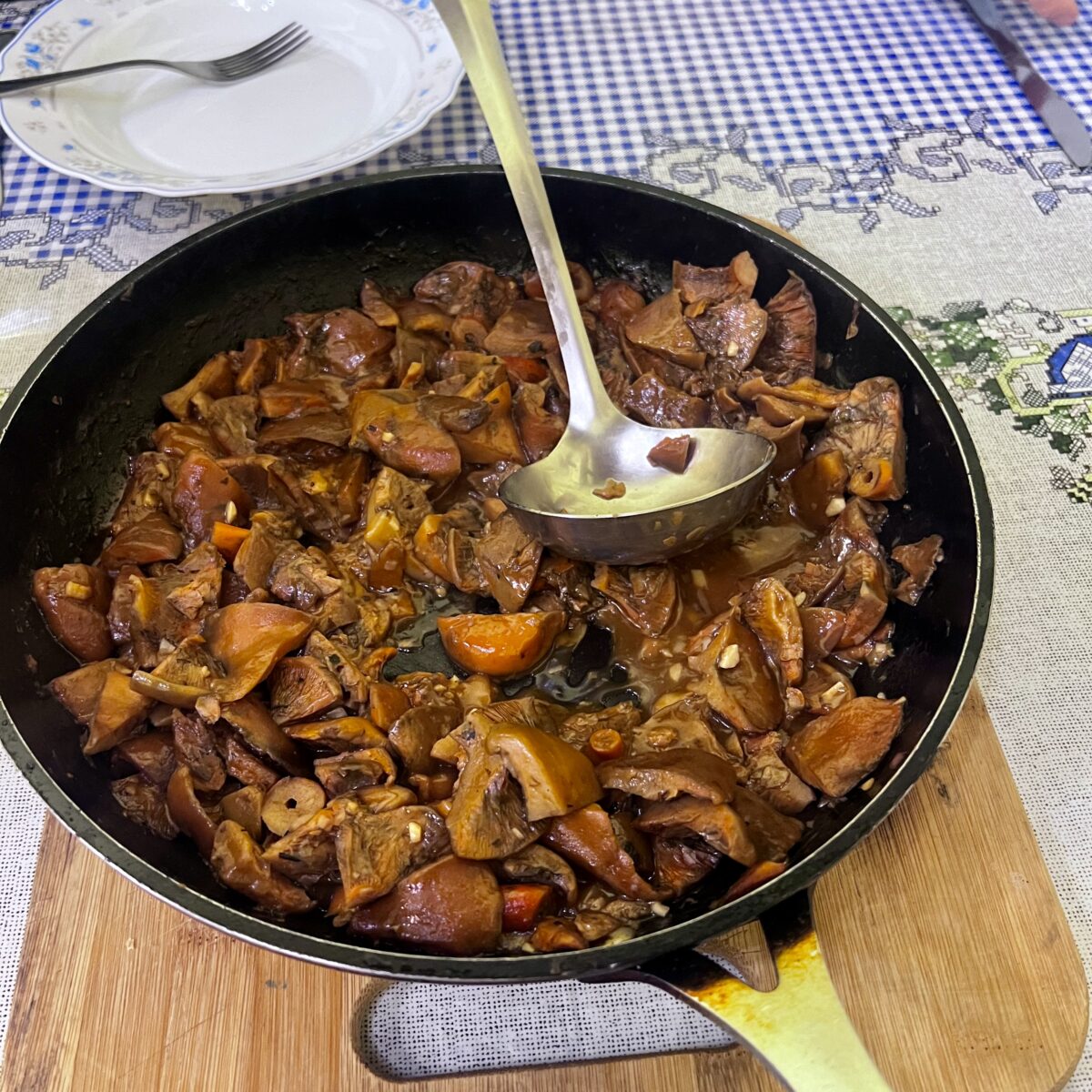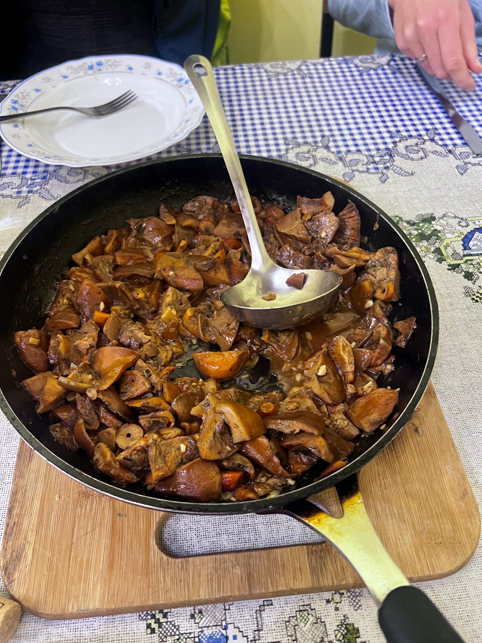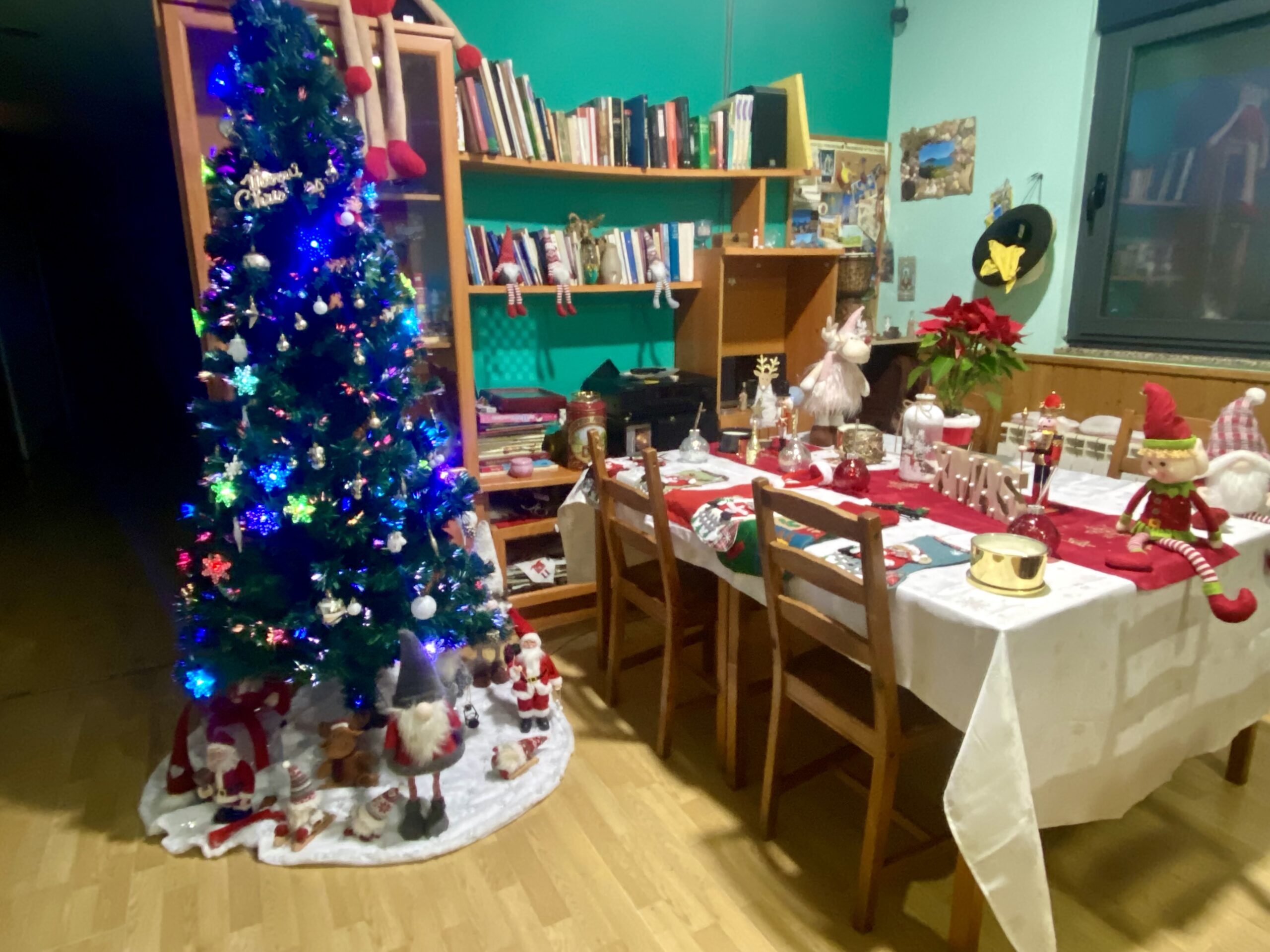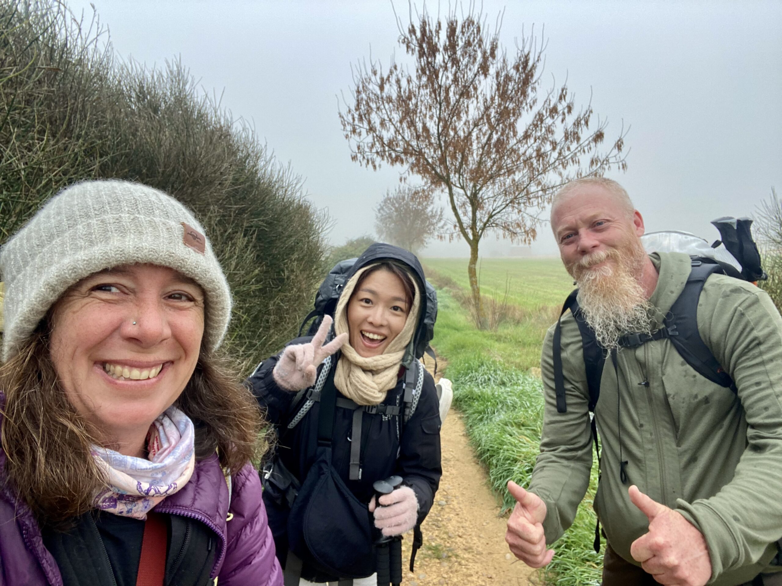 Our albergue in San Martin is perfect. Family run with homemade meals, and our room was nice and warm when we arrived. Our hospitalera has already put up Christmas decorations. Sitting down to a good meal with our Camino friends almost felt like a mini Thanksgiving. Board games afterwards, and our host even had a massage chair, which was heavenly!