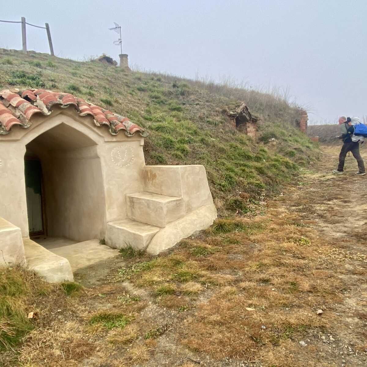 Today was soooo much easier than yesterday. What a difference 7 less miles makes! Weather was gray today but warmish, so good walking weather. The path was still mostly flat and straight but there were lots of village breaks along the way. Our favorite was Moratinos which had what looked like little hobbit houses built into the hillside.